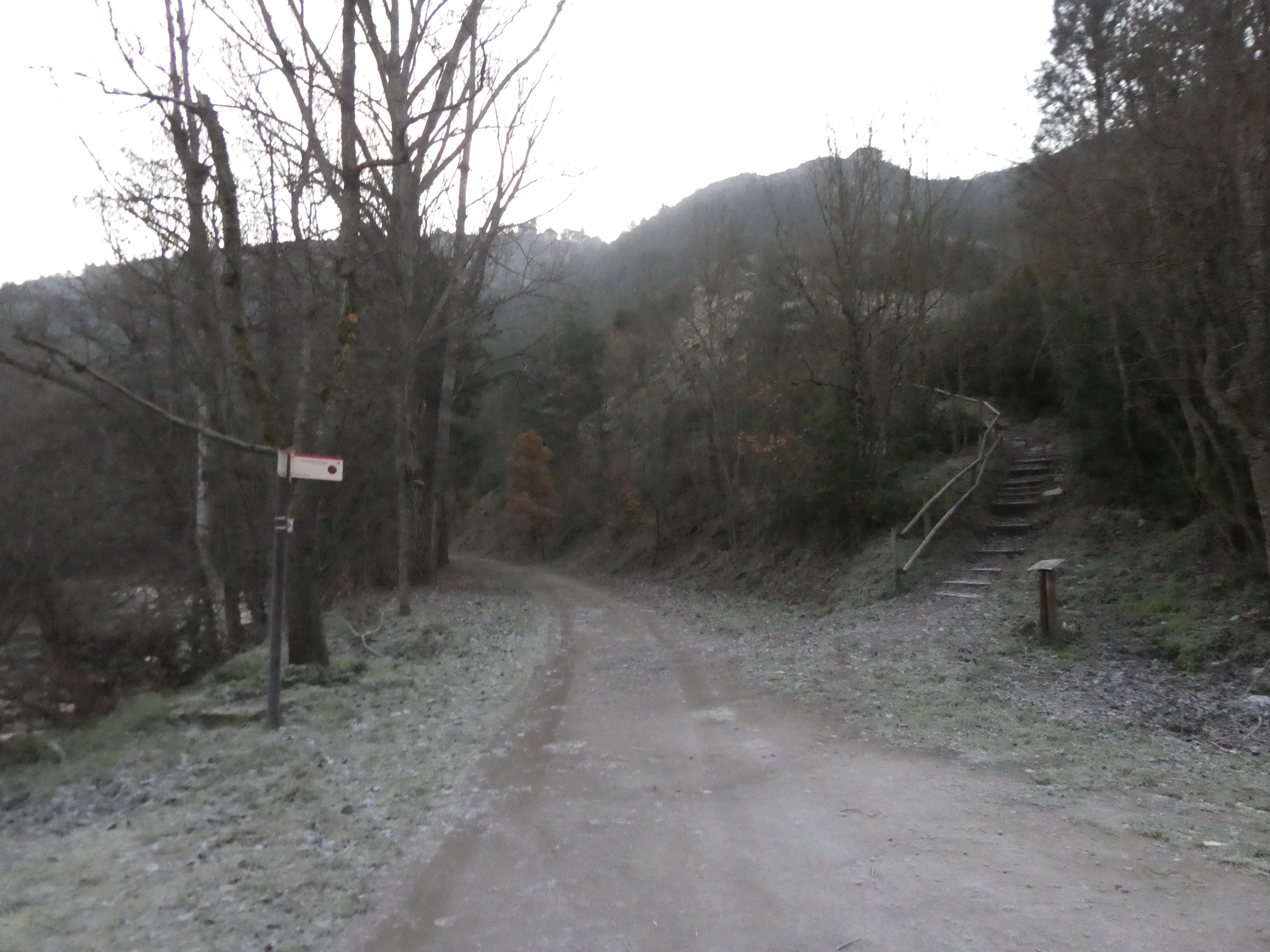 A ce croisement (50 mètres après le précédent), suivre la ruelle partant en quasi demi-tour sur la gauche direction Sant Genís