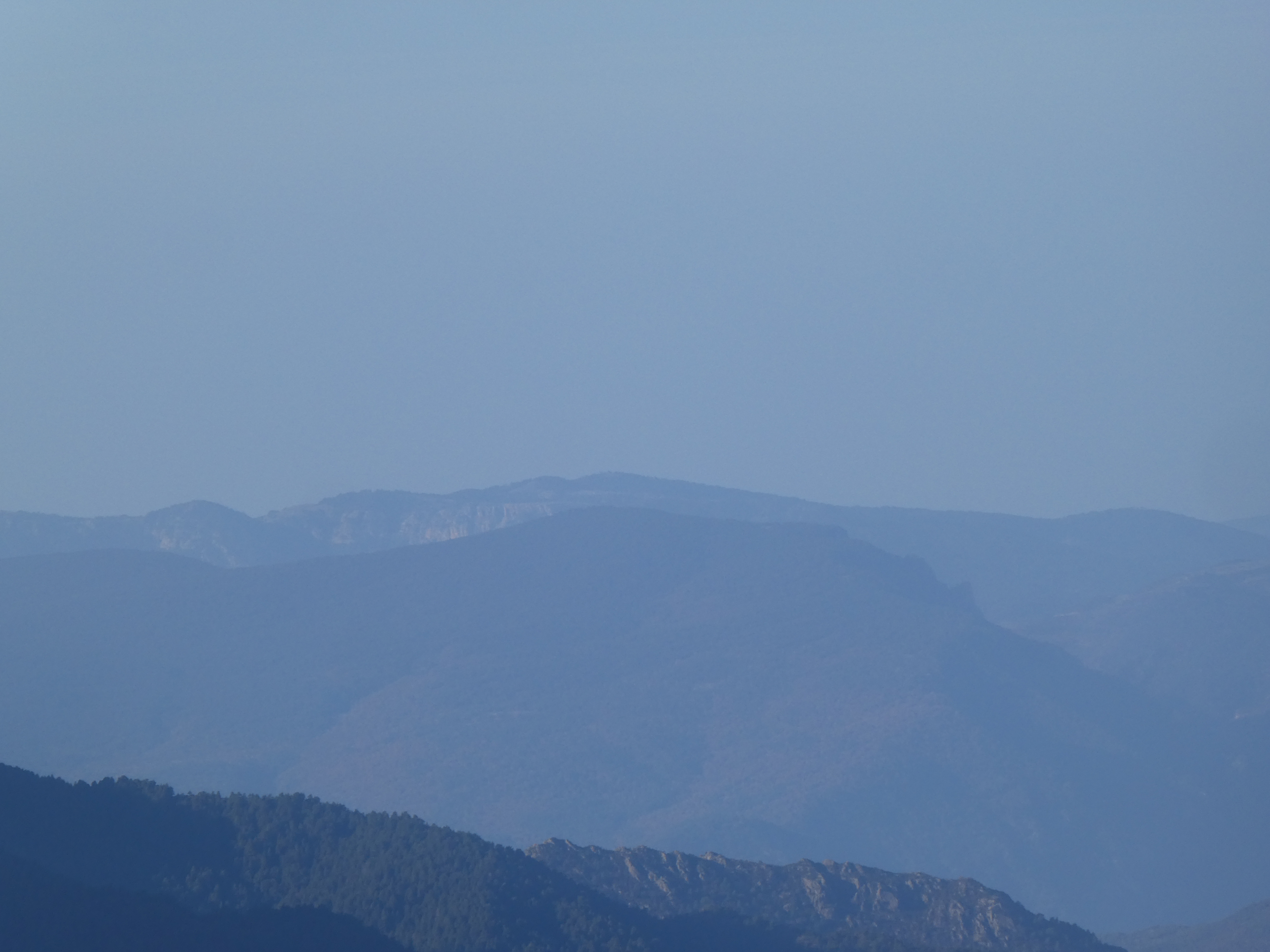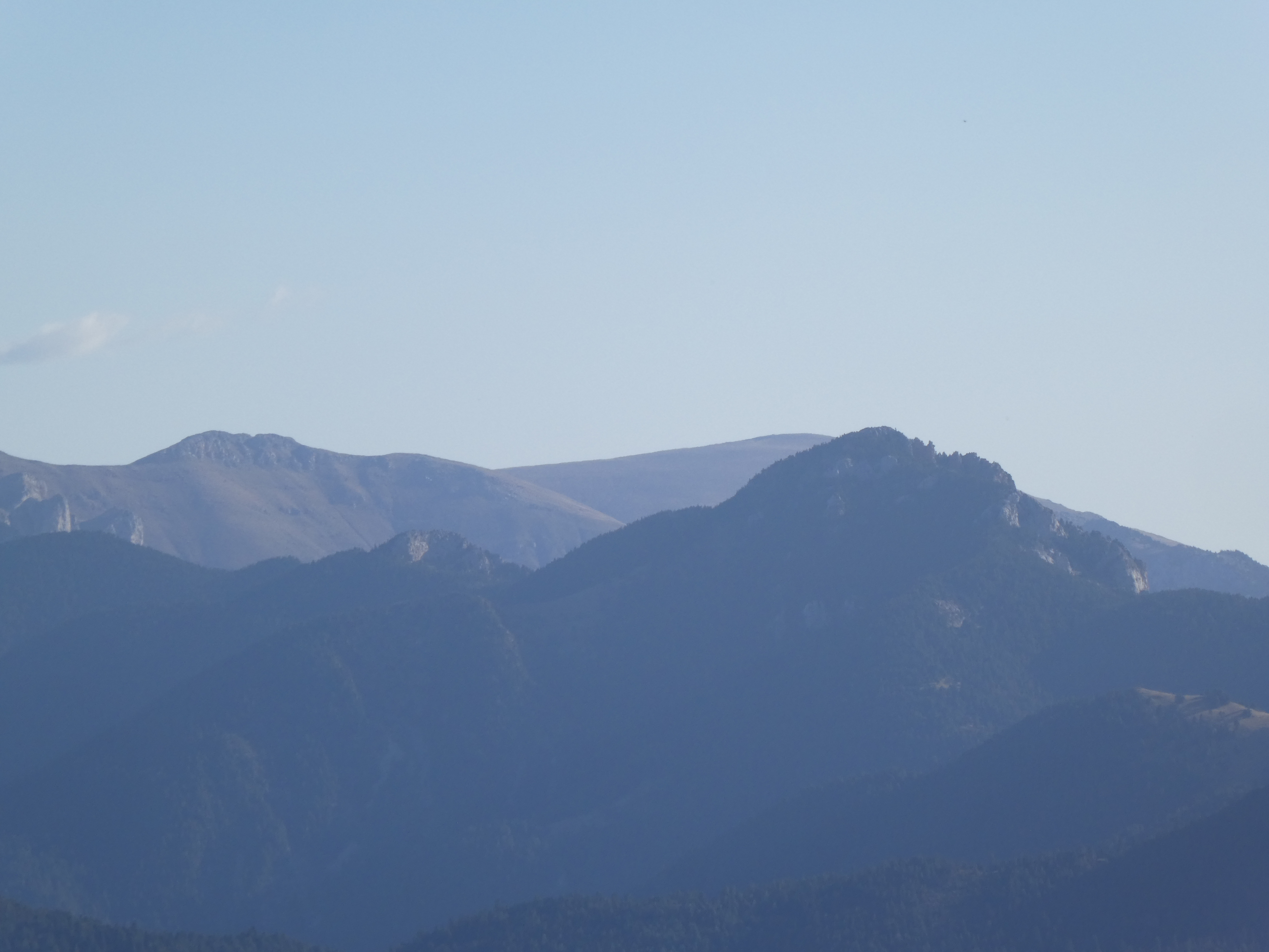 Zoom sur Santa Magdalena de Cambrils (1547 m) à gauche et le Puig de l'Obiol (1544 m) à droite