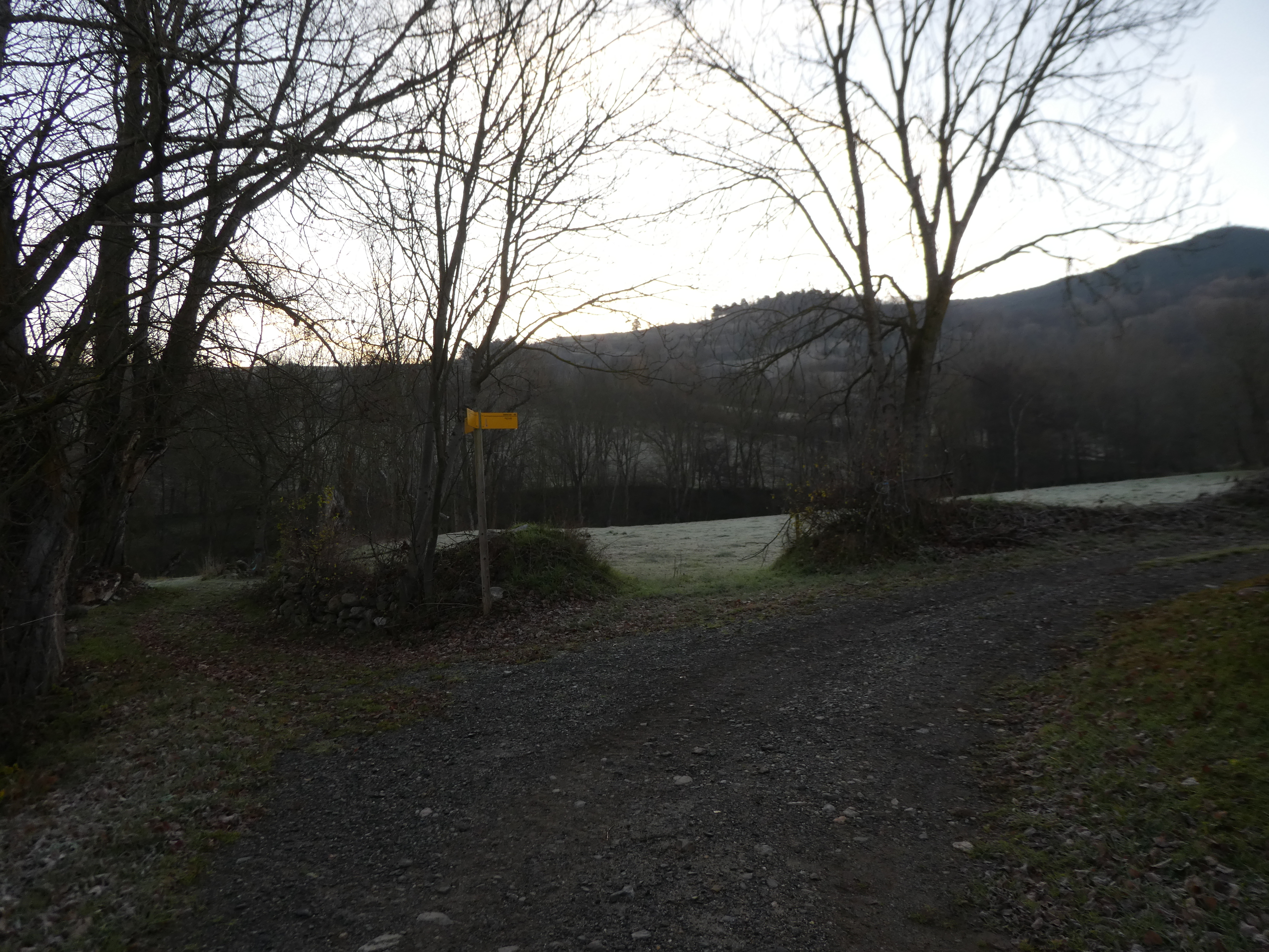 A ce croisement marqué par la présence d'un panneau directionnel (25 mètres après le précédent), suivre le ruelle partant tout droit direction Sant Genís