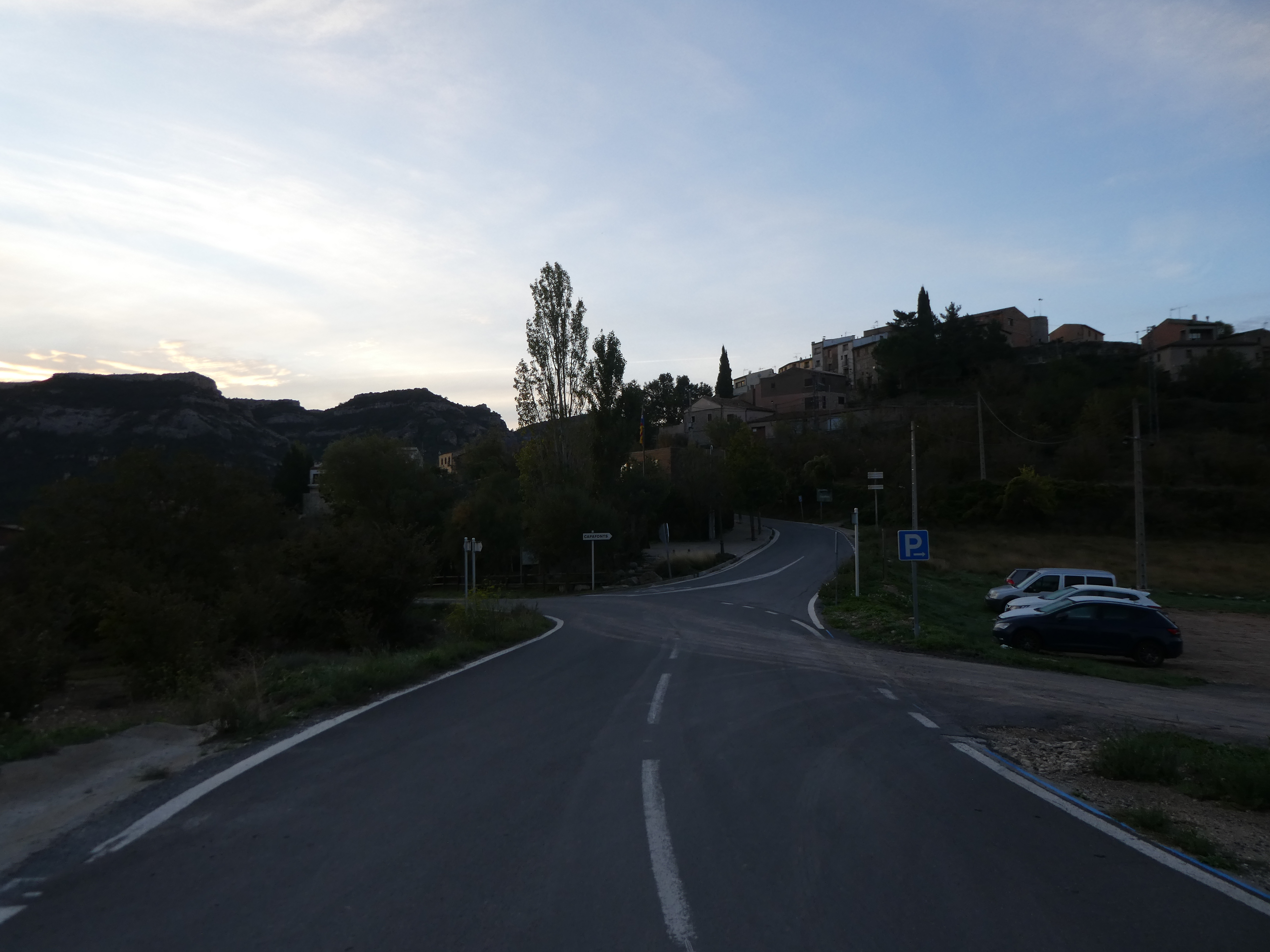 A cette intersection située à l'entrée de Prades marquée par la présence d'un panneau directionnel (1000 mètres après le précédent croisement mentioné), suivre la rue partant sur la gauche (Carretera de l'Espulga) direction Prades, aucun balisage dorénavant