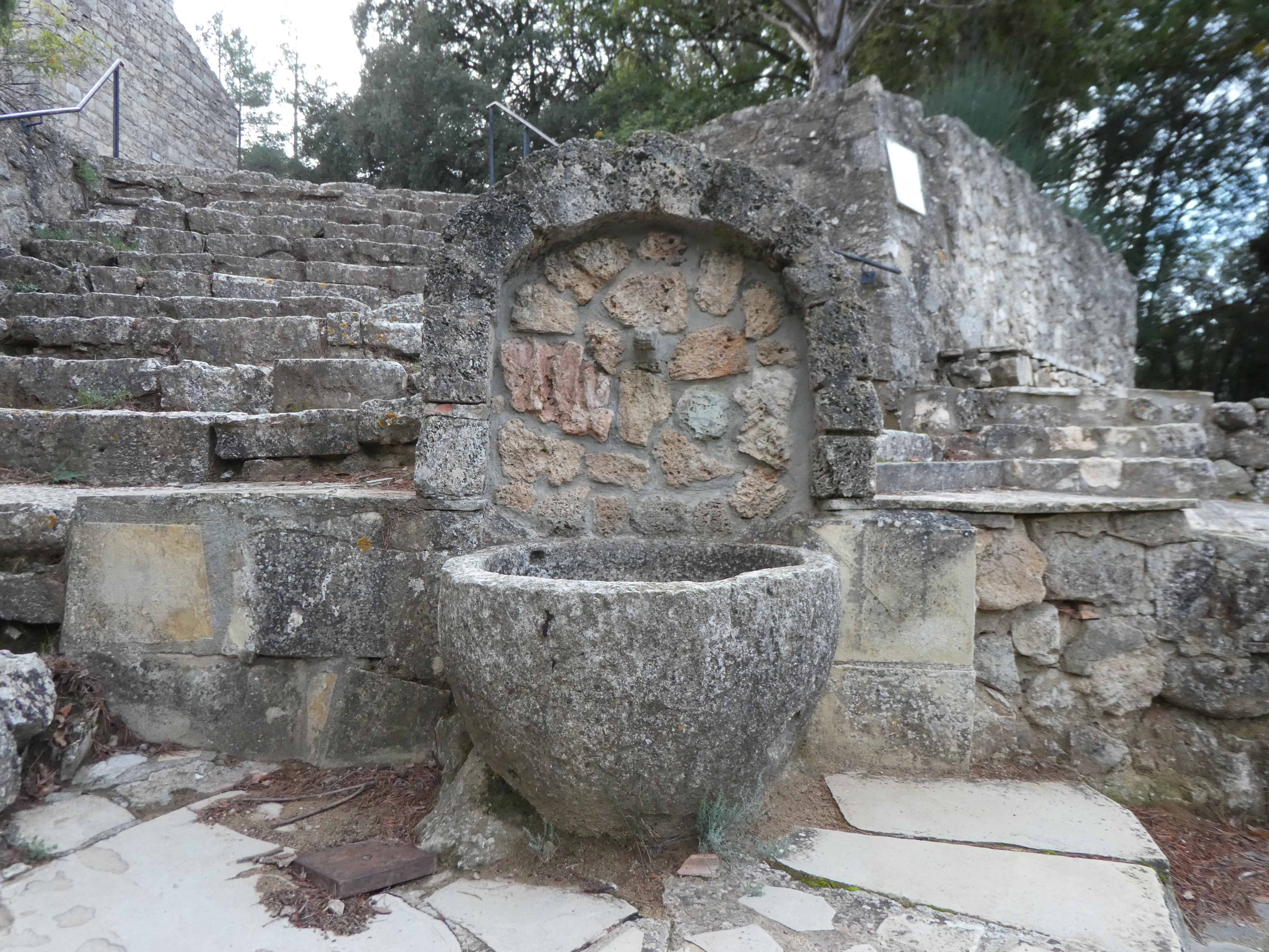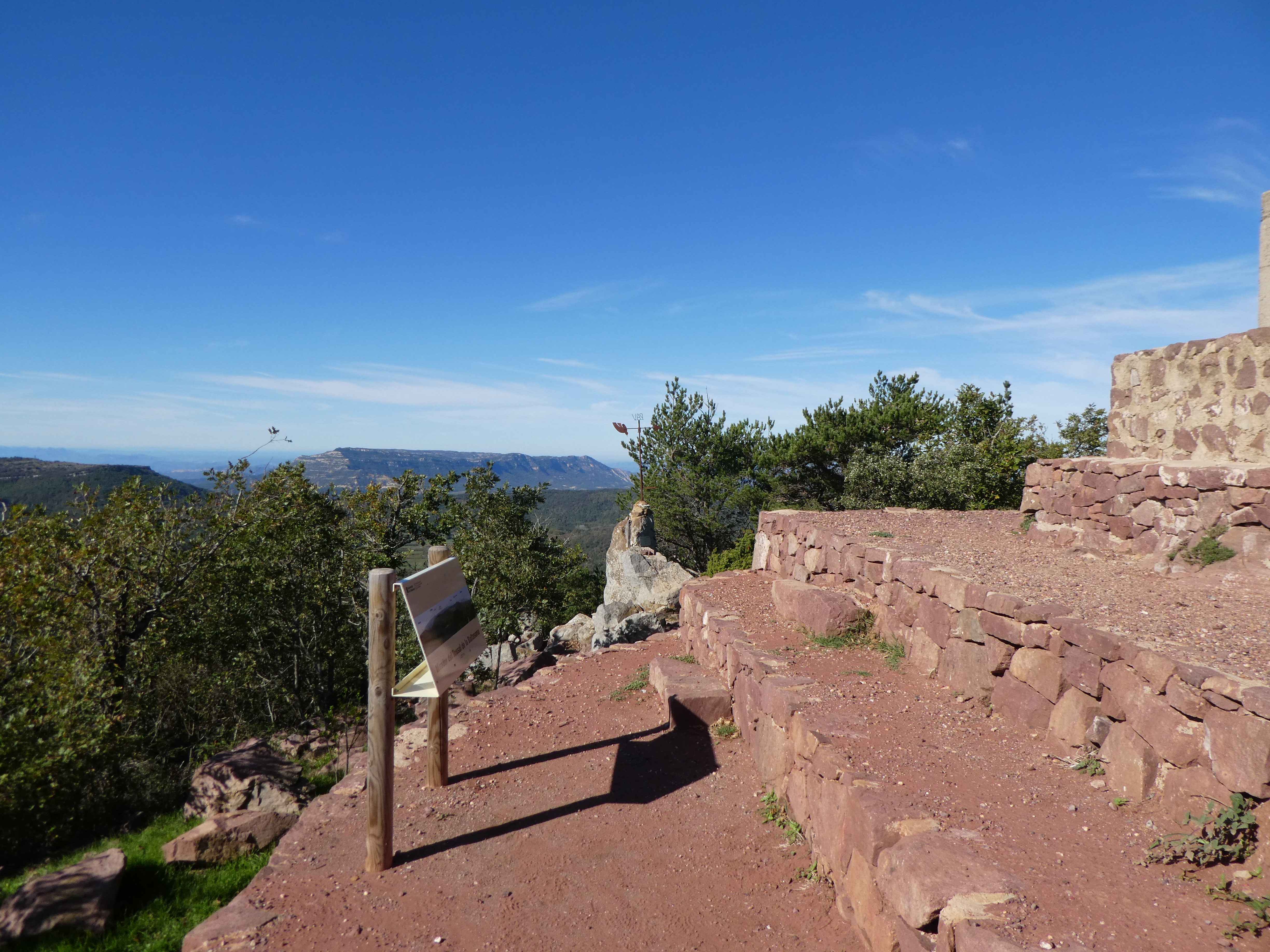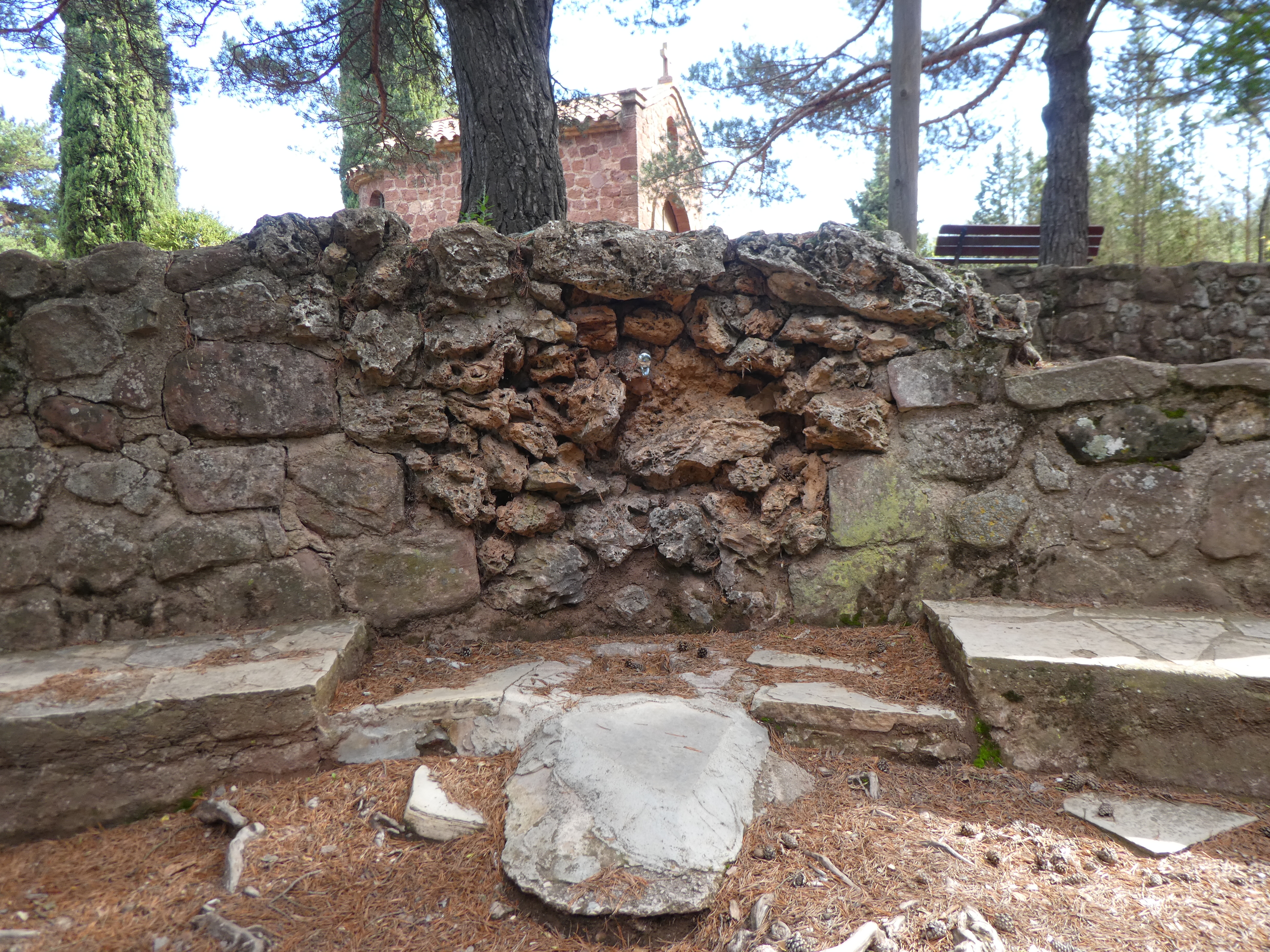 Vue sur l'Ermita de l'Abellera (non accessible librement) ; repartir du site par le même chemin que celui de l'aller direction Capafonts
