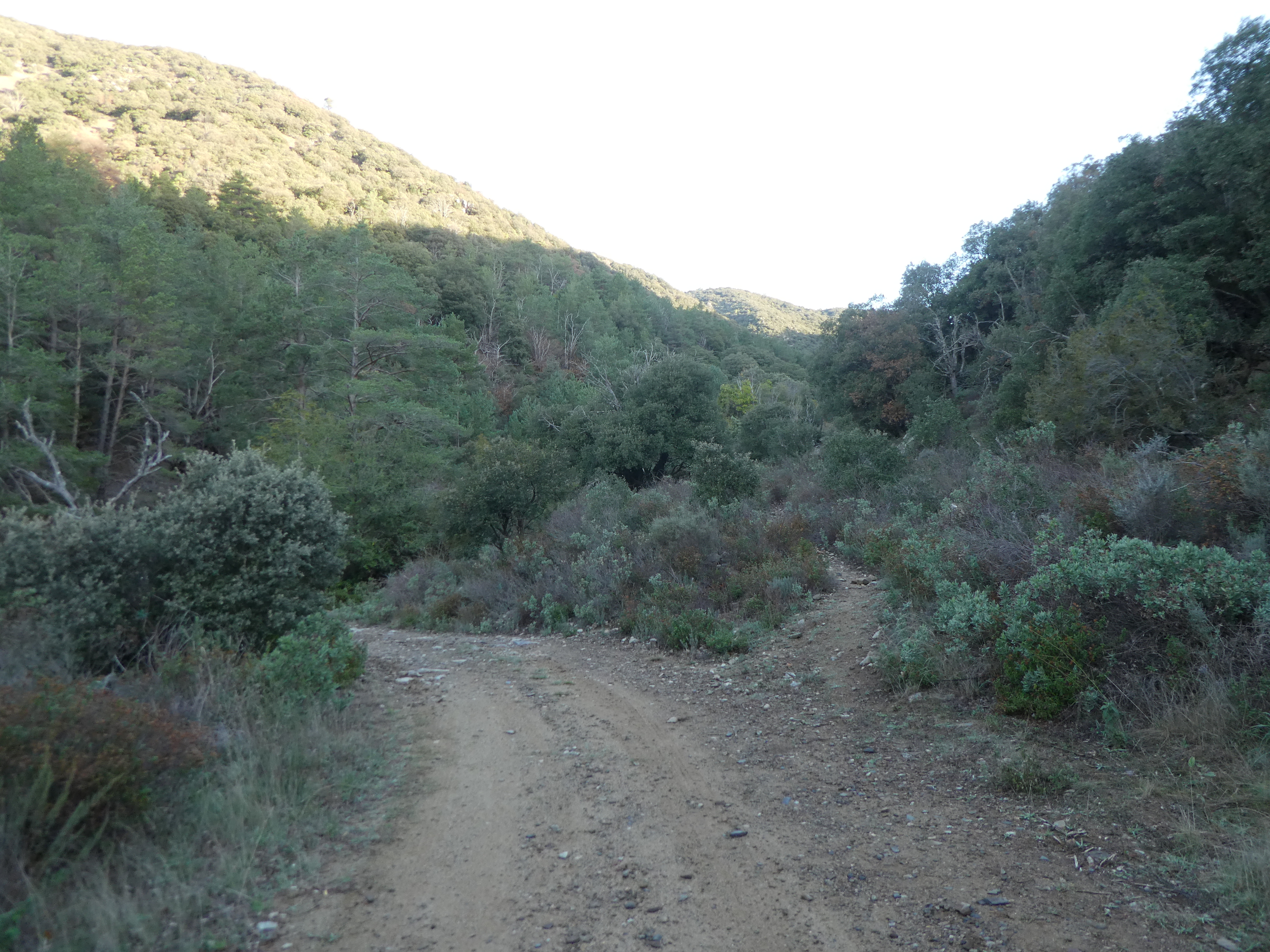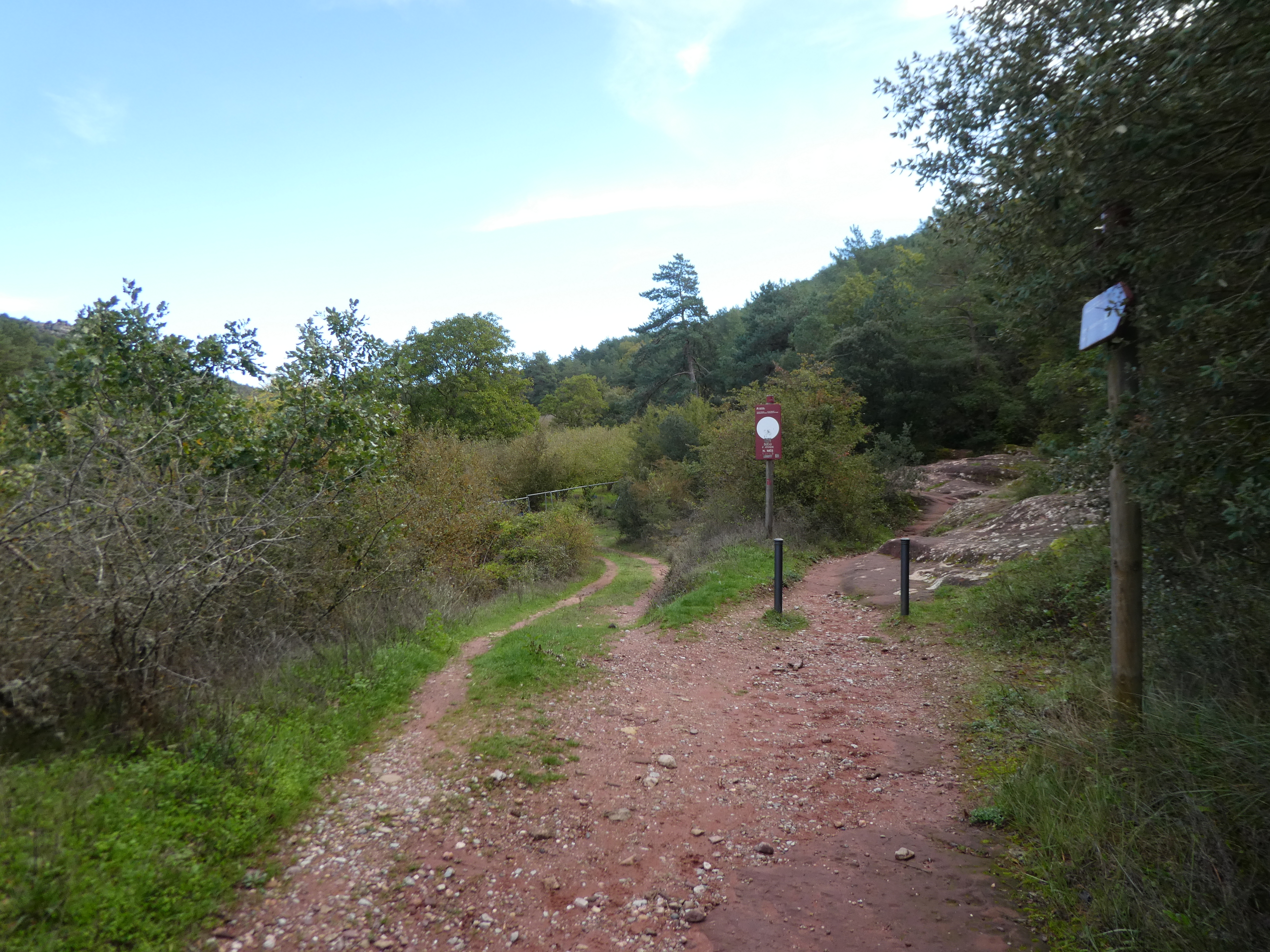 A ce croisement avec le sentier venant de l'Ermita de Sant Roc marqué par la présence d'un panneau directionnel (100 mètres après avoir quitté l'Ermita de l'Abellera), suivre ce dernier descendant sur la gauche direction Capafonts, balisé sporadiquement en bleu et jaune dorénavant