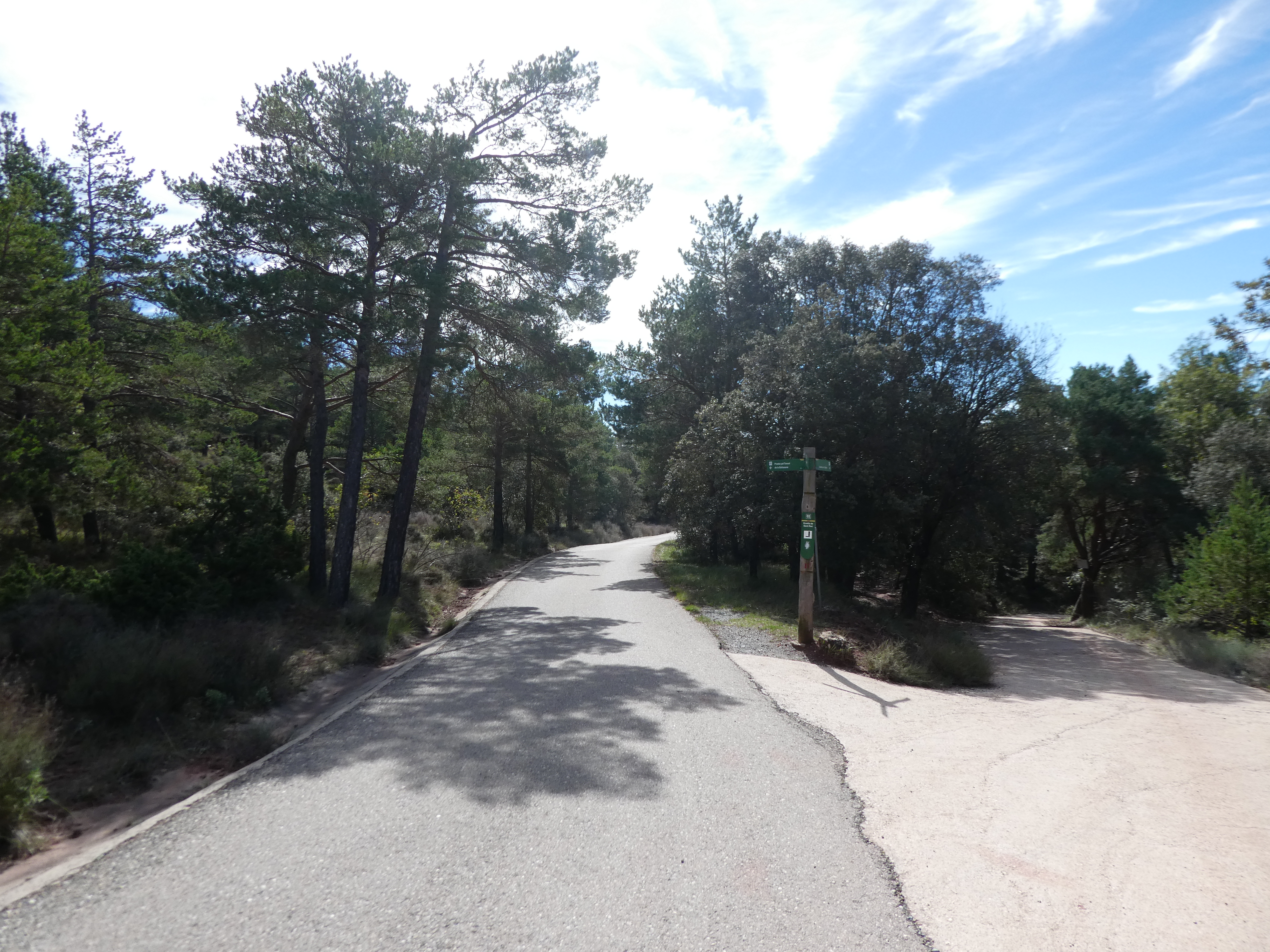 A ce croisement marqué par la présence d'un panneau directionnel (800 mètres après le Coll de la Font del Dineral), suivre la piste partant sur la gauche direction Tossal de la Baltasana, balisé en rouge et blanc