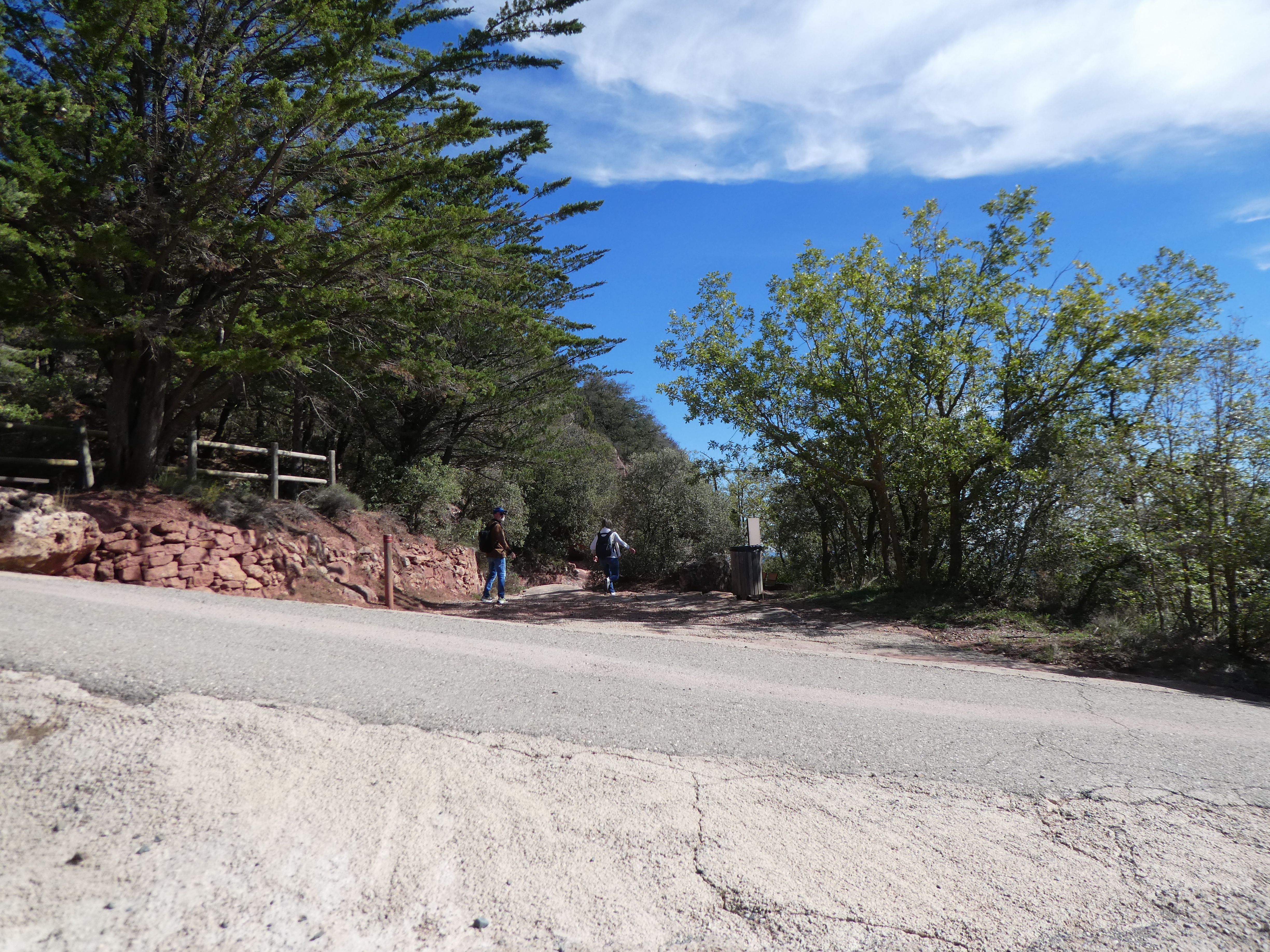 Ermita de Sant Roc (1018 m) : suivre la route partant tout droit direction Capafonts (per l'Ermita de l'Abellera), balisé sporadiquement en bleu et jaune (attention, ne pas suivre la piste partant sur la droite car elle ne mène pas à Capafonts malgré l'indication du panneau !)