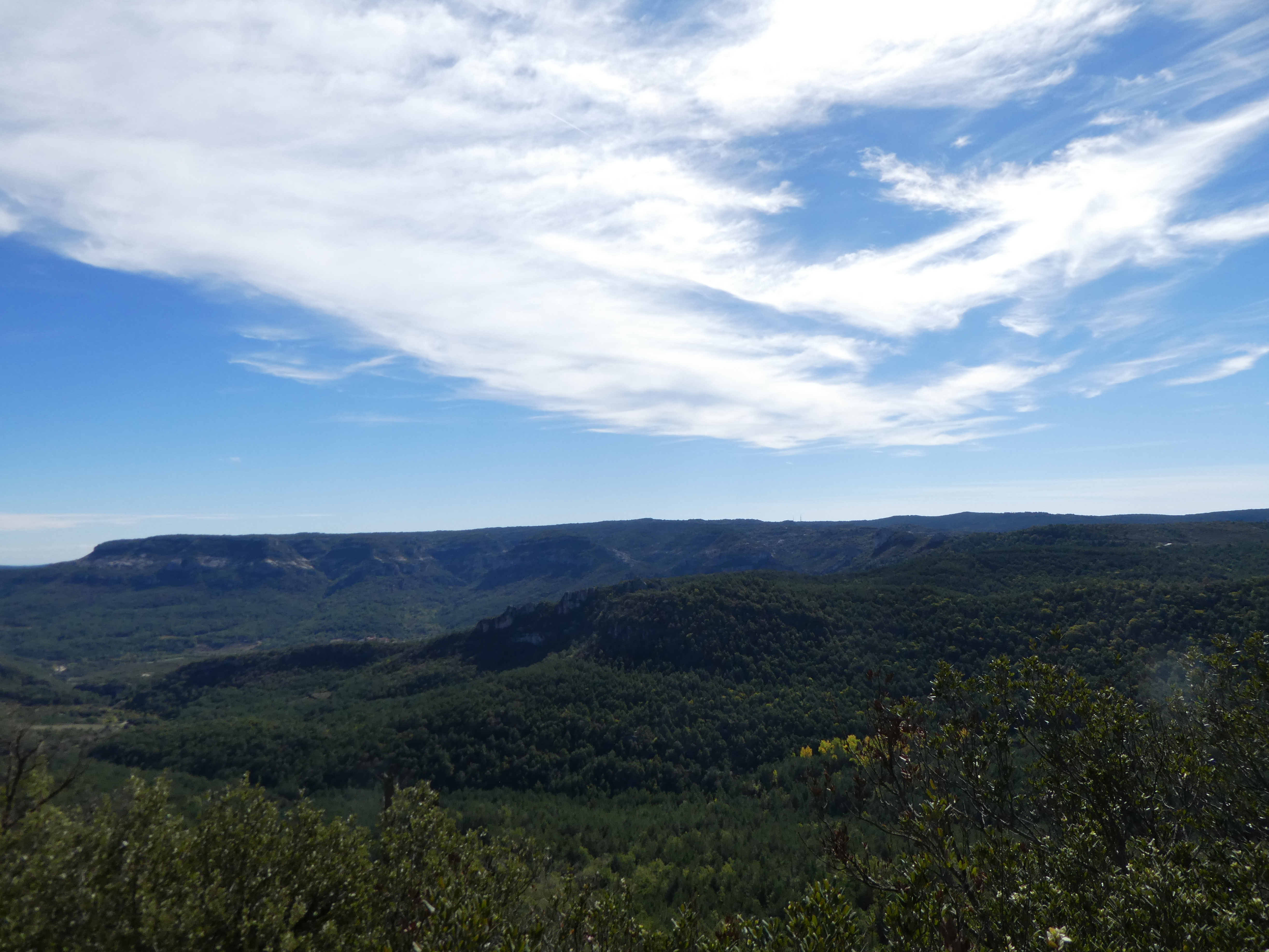 Redescendre du sommet dans le même sens que celui de l'aller direction Prades, balisé en rouge et blanc, et en bleu et jaune