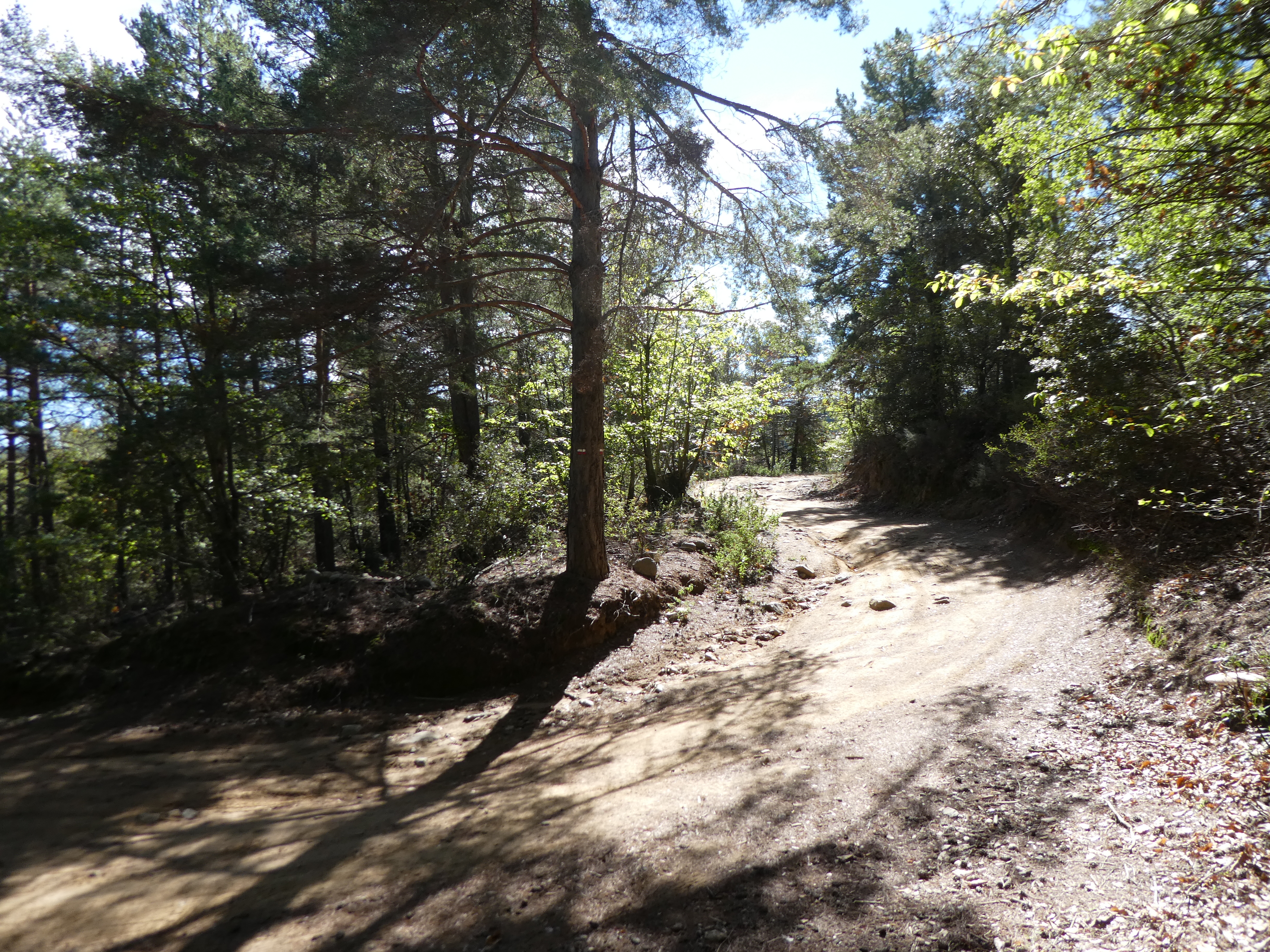 A ce croisement marqué par la présence d'un panneau directionnel (500 mètres après le précédent), suivre la piste partant sur la gauche direction Capafonts, balisé en rouge et blanc dorénavant