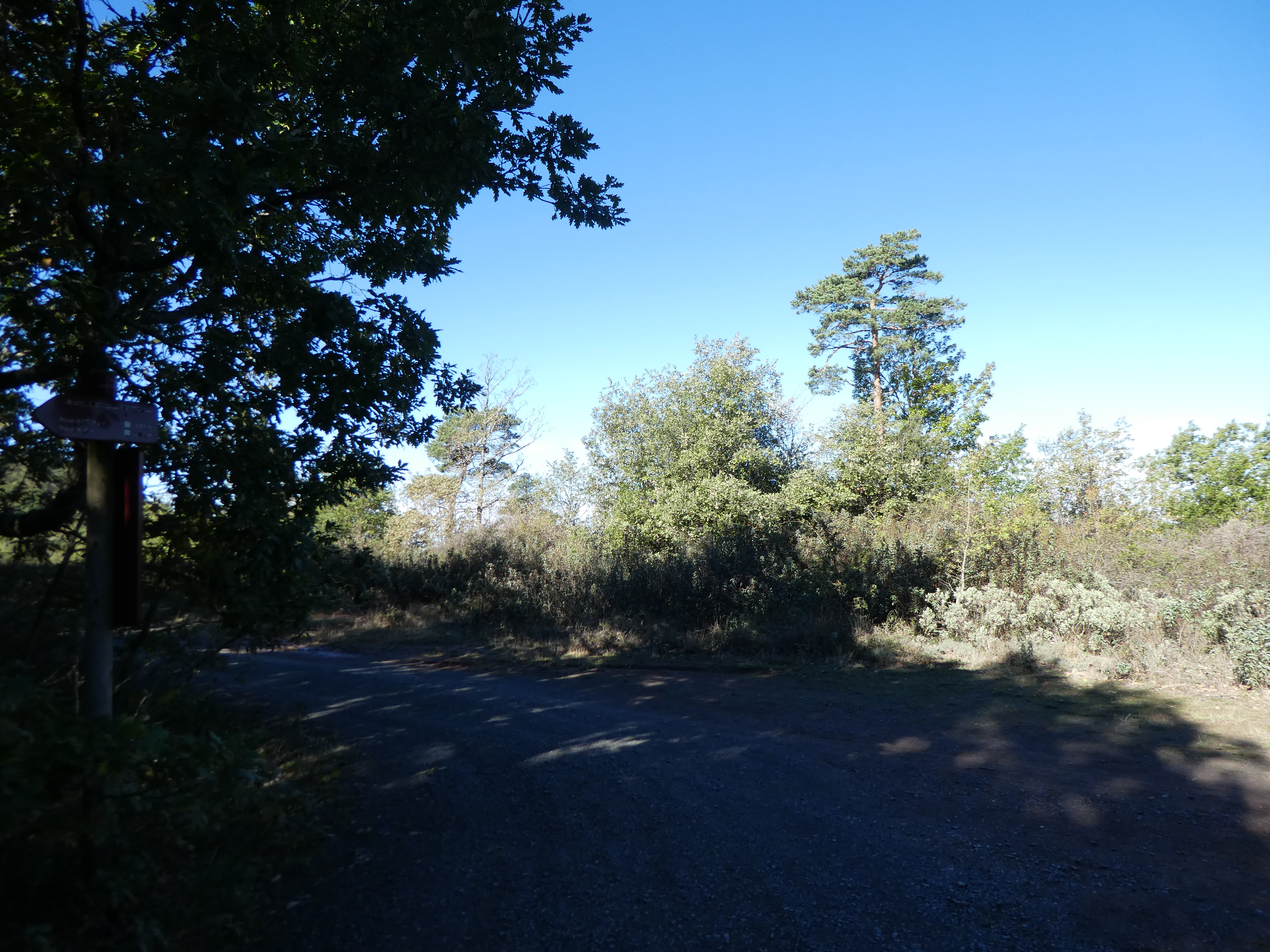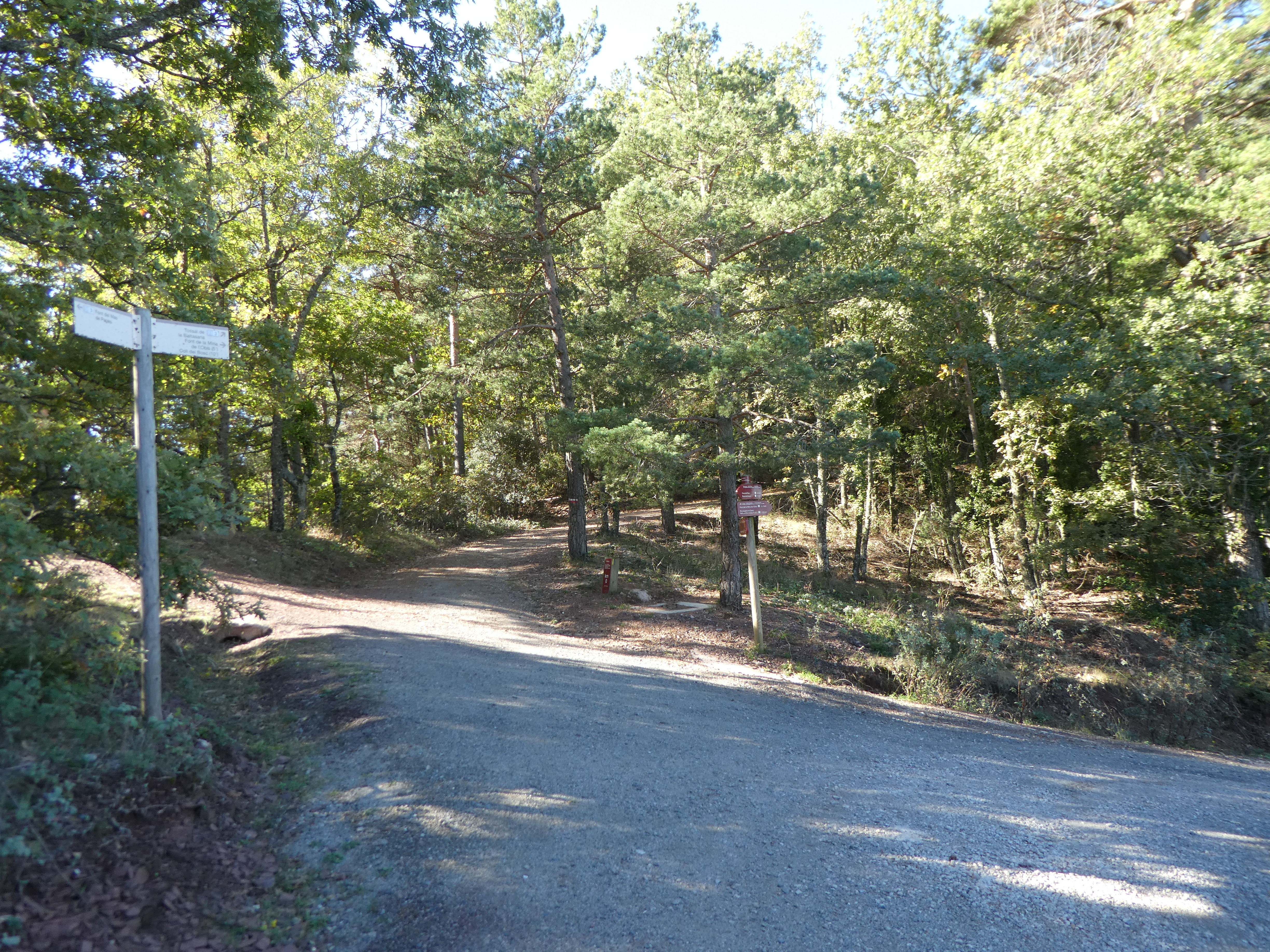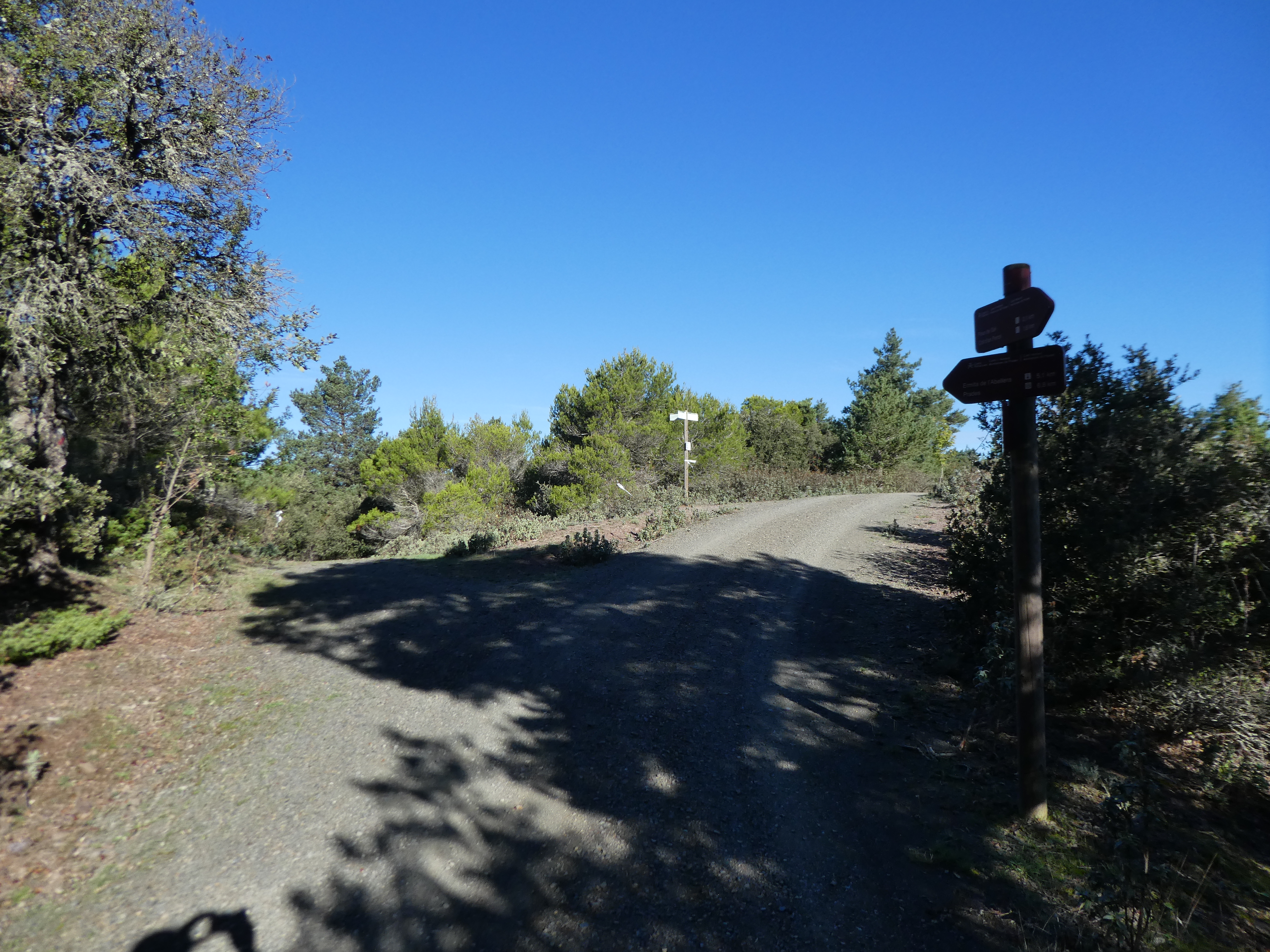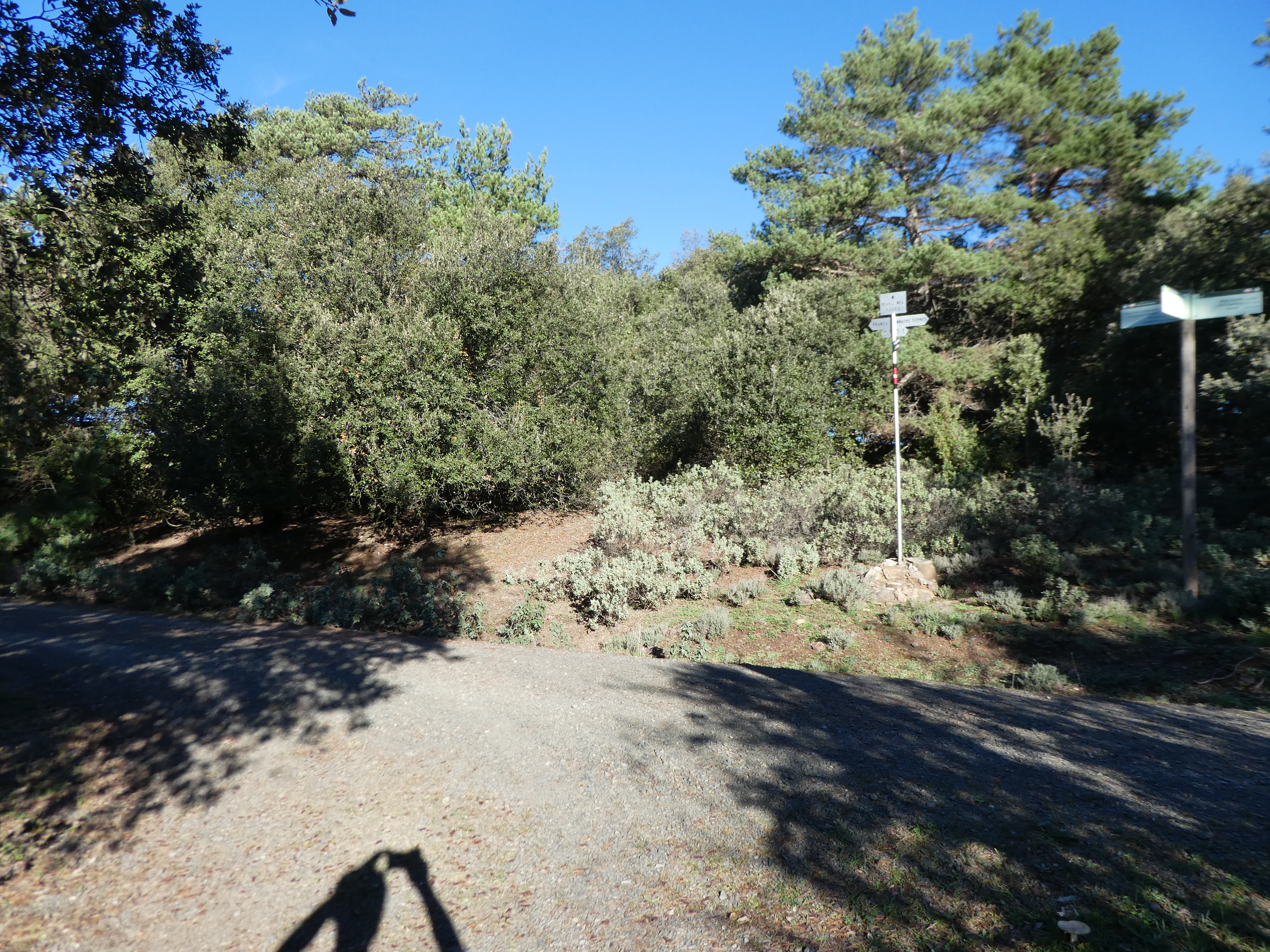 A ce croisement marqué par la présence d'un panneau directionnel (900 mètres après le précédent), suivre le chemin partant légèrement sur la droite direction Prades, balisé en rouge et blanc, et en bleu et jaune