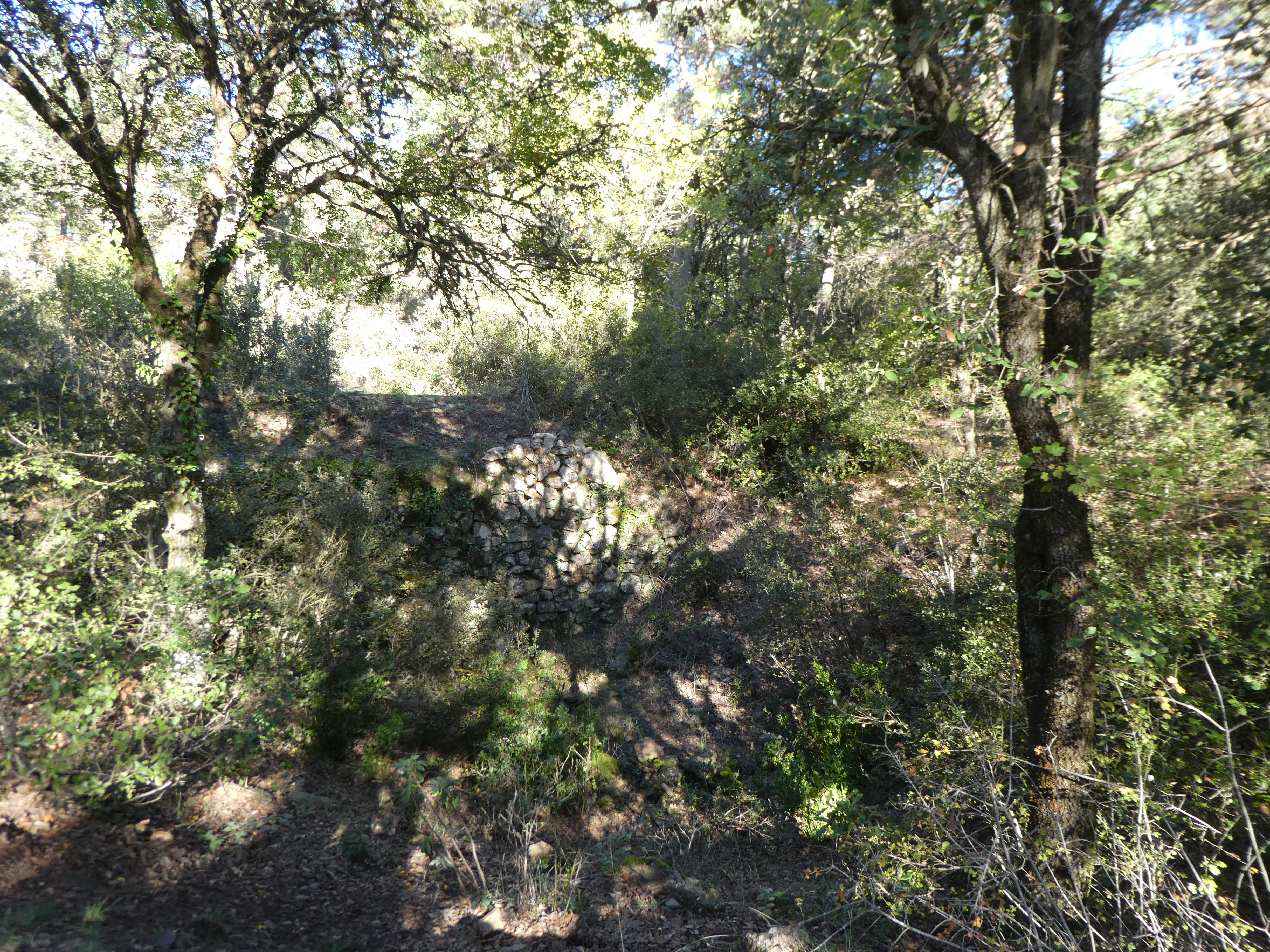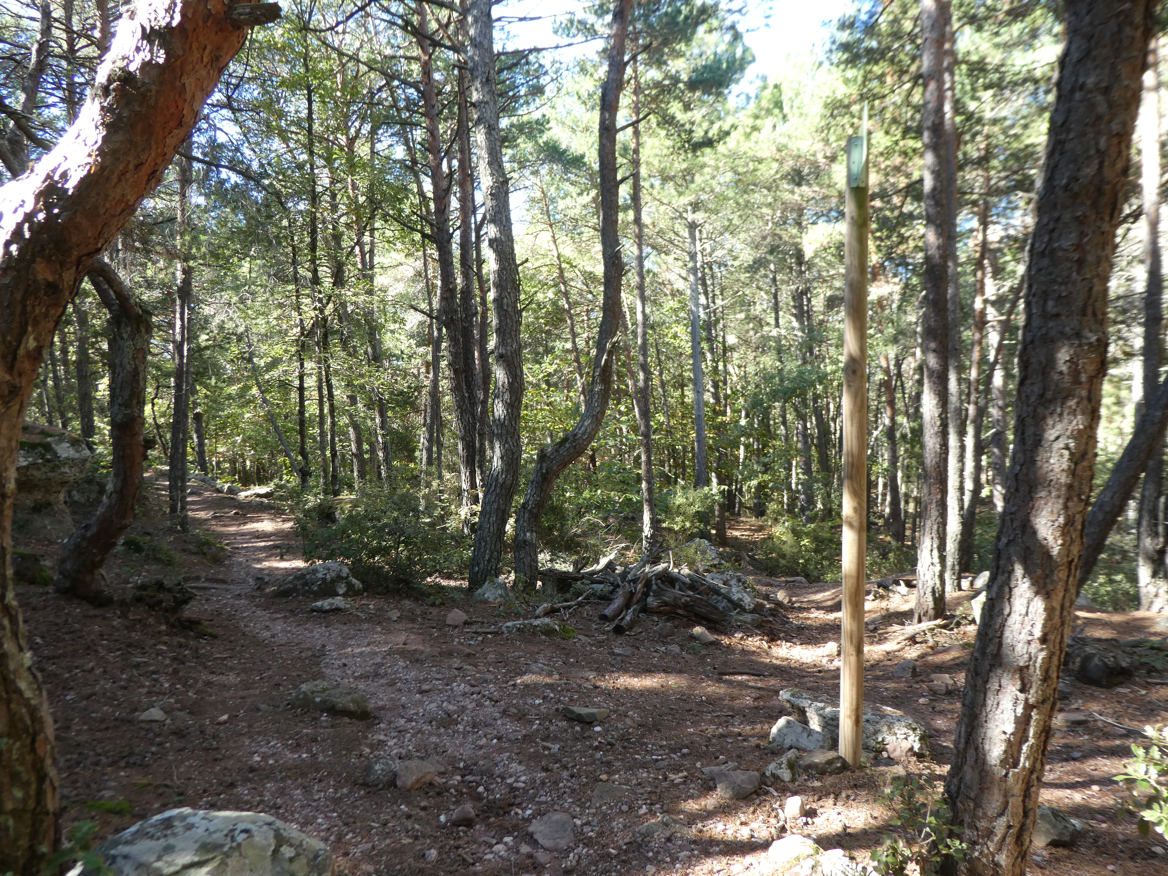 A ce croisement avec le sentier menant à la Cova d'en Pere marqué par la présence d'un panneau directionnel (200 mètres après le précédent), suivre ce dernier partant sur la droite direction Cova d'en Pere, aucun balisage dorénavant