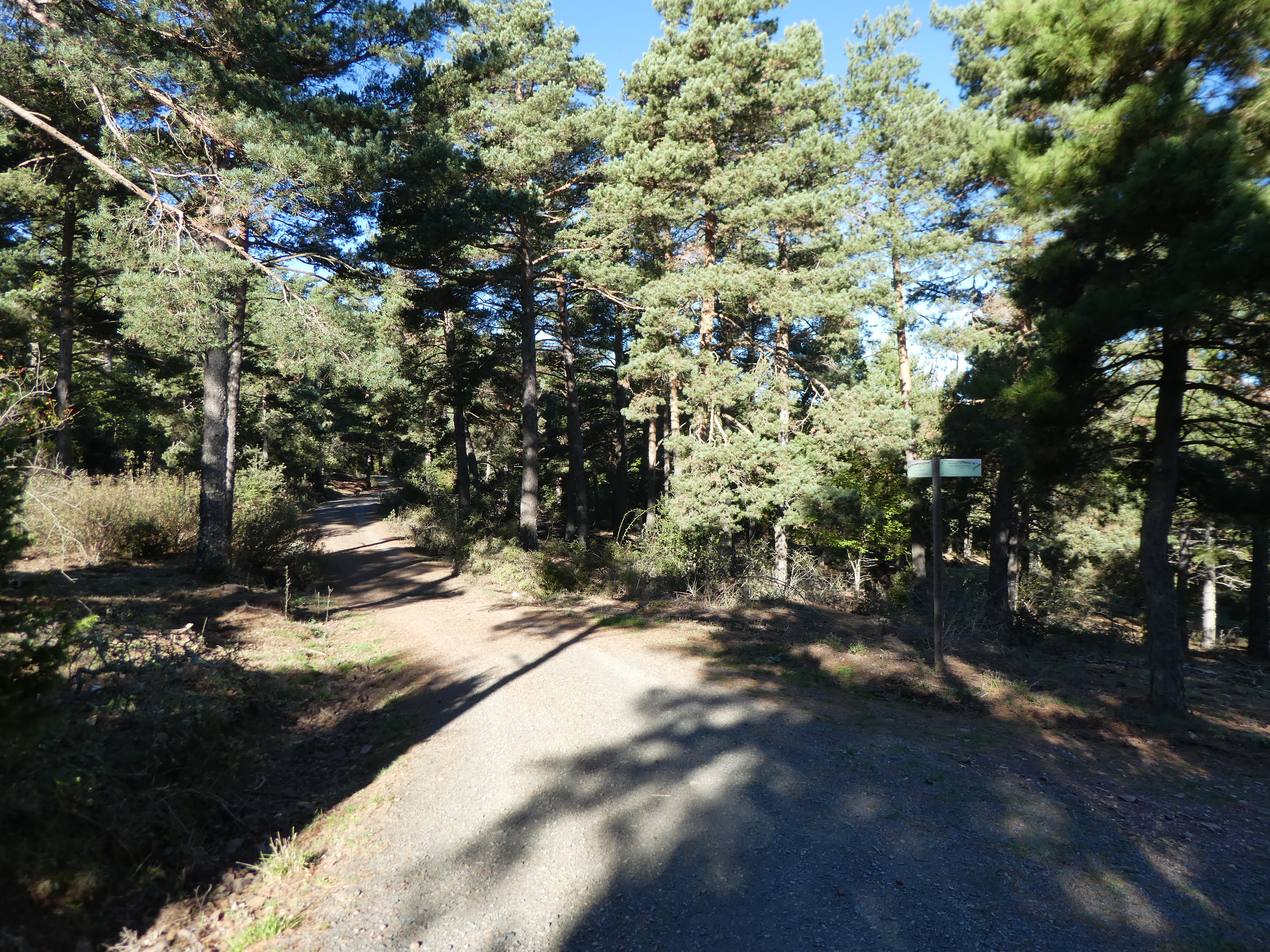 A ce croisement situé à proximité du Coll de la Font del Dineral marqué par la présence d'un panneau directionnel (600 mètres après le précédent), suivre le GR171 partant sur la droite pour faire un court aller-retour vers le Pou de Gel del Dineral direction Mola d'Estat, balisé en rouge et blanc dorénavant