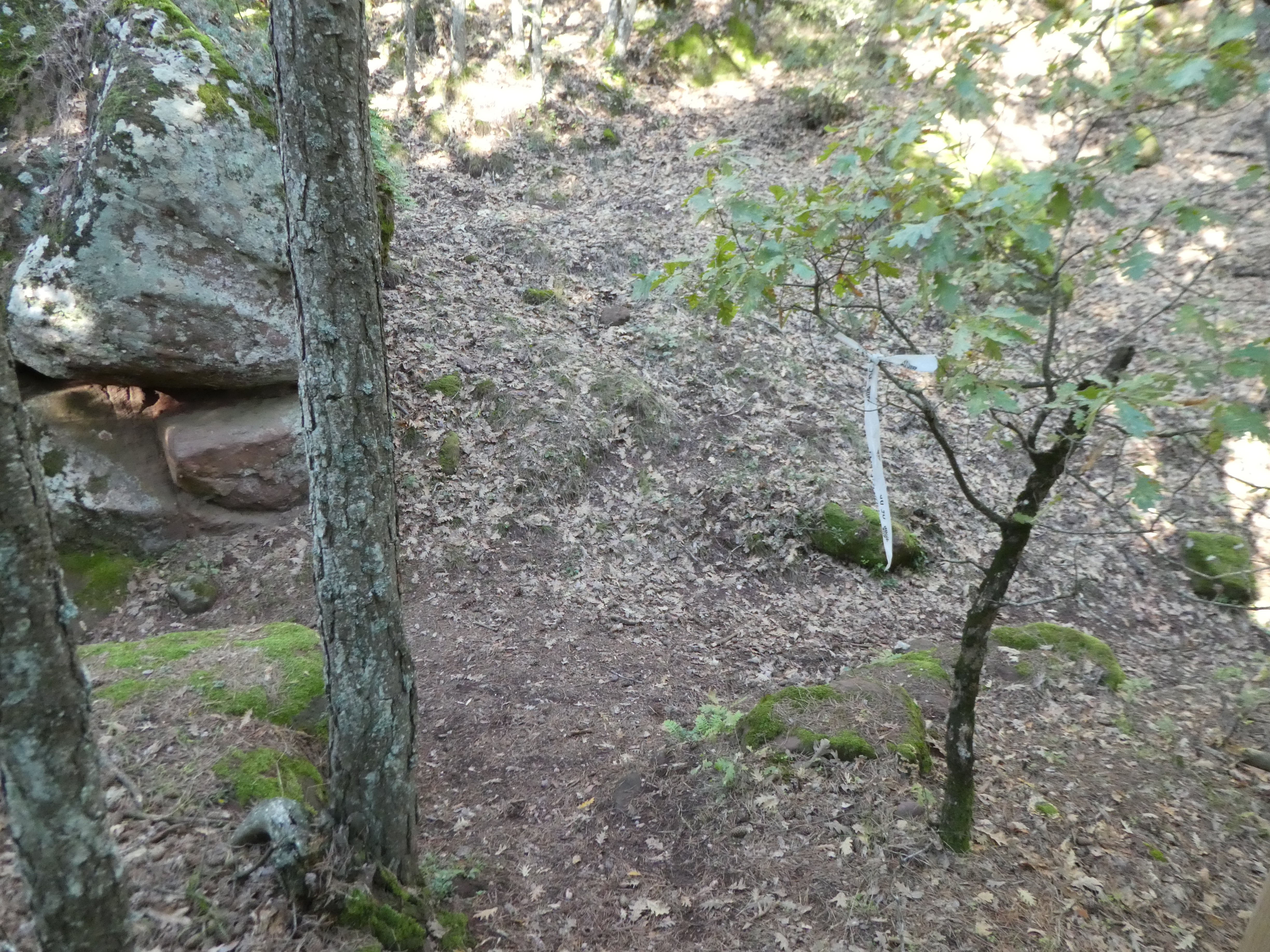 A ce croisement discret avec le sentier menant au sommet de la Roca del Gríngol (100 mètres après le précédent), suivre ce dernier partant sur la gauche direction Roca del Gríngol, aucun balisage dorénavant (progression quasi hors sentier jusqu'au sommet)