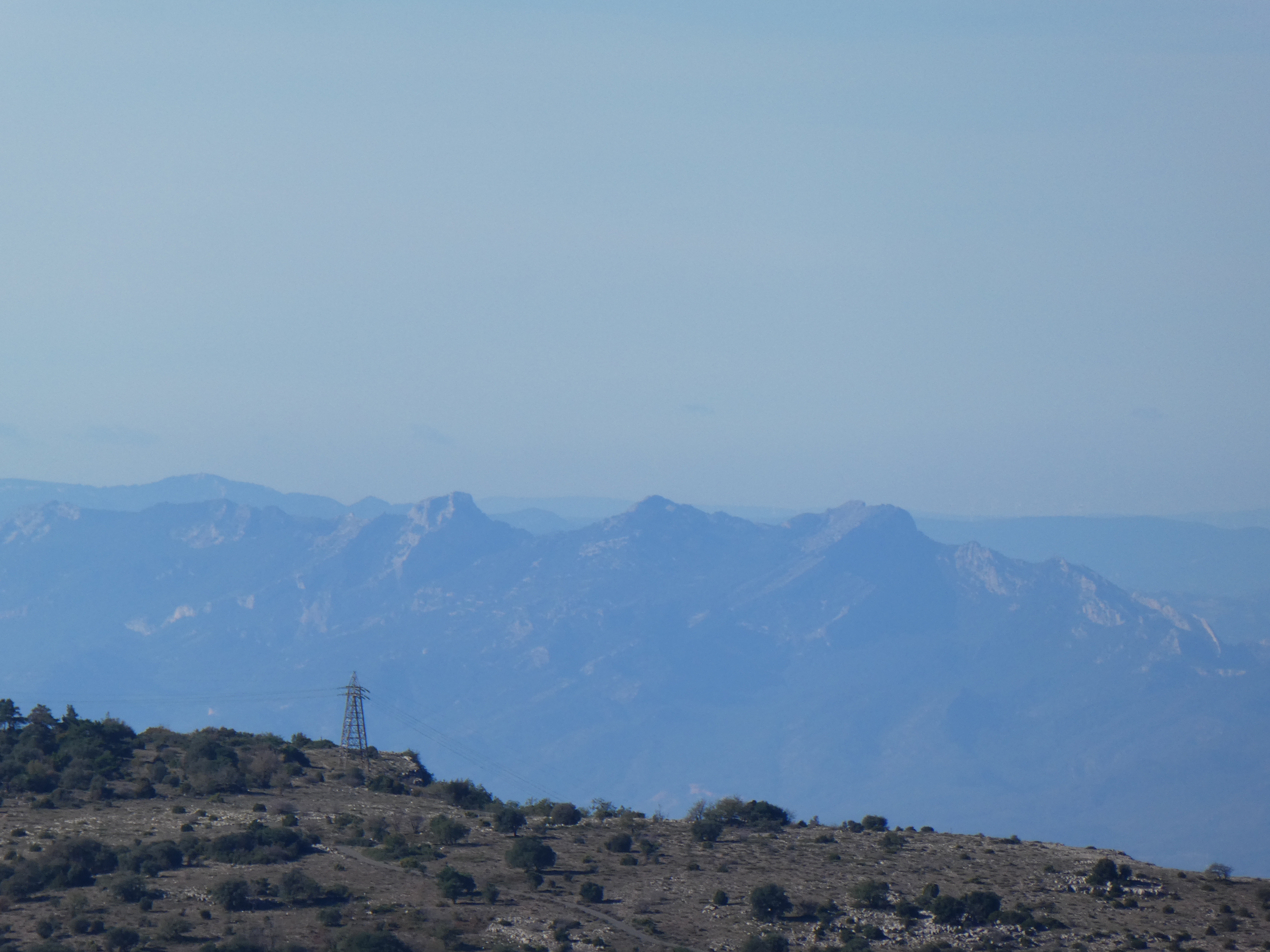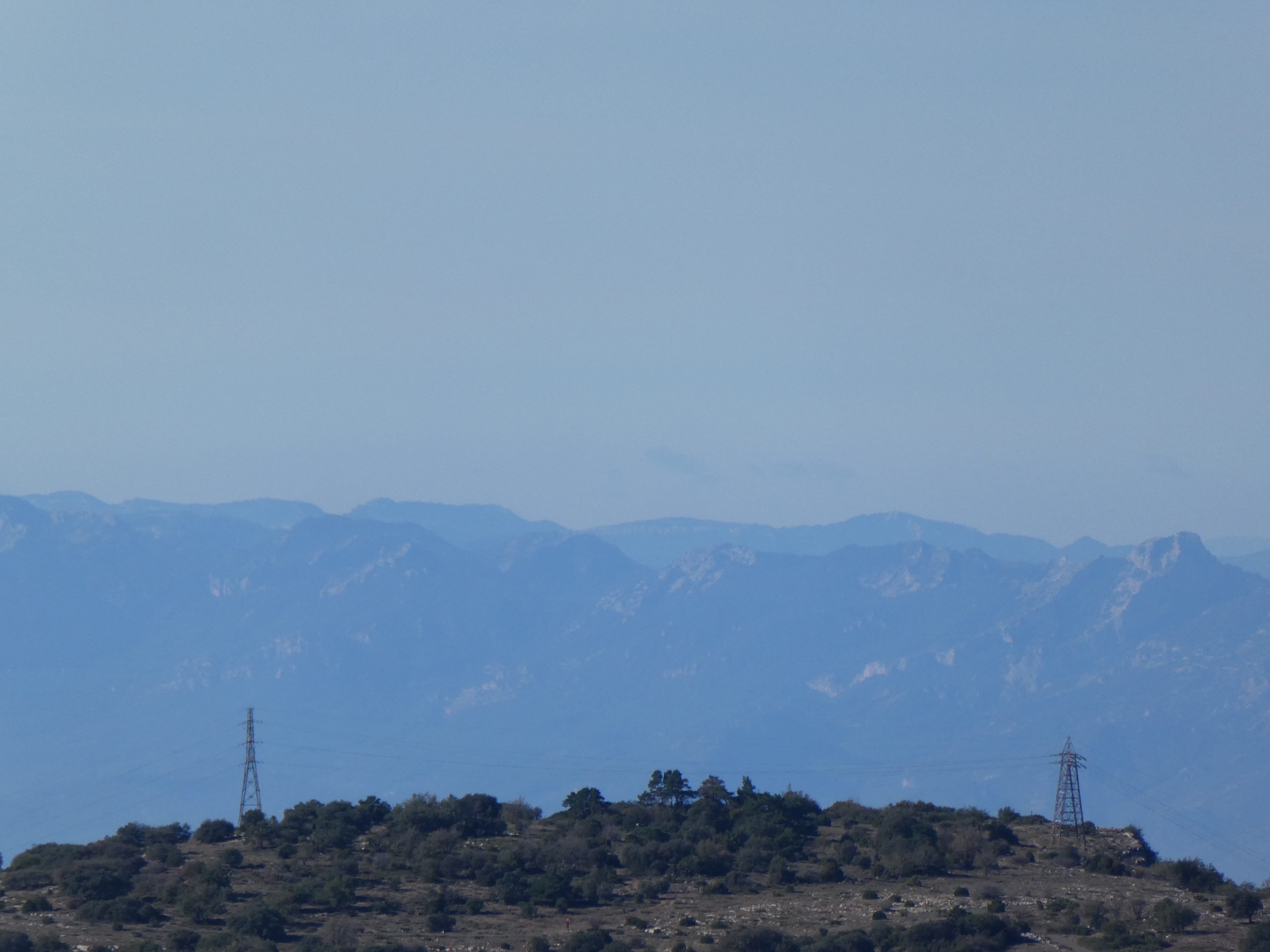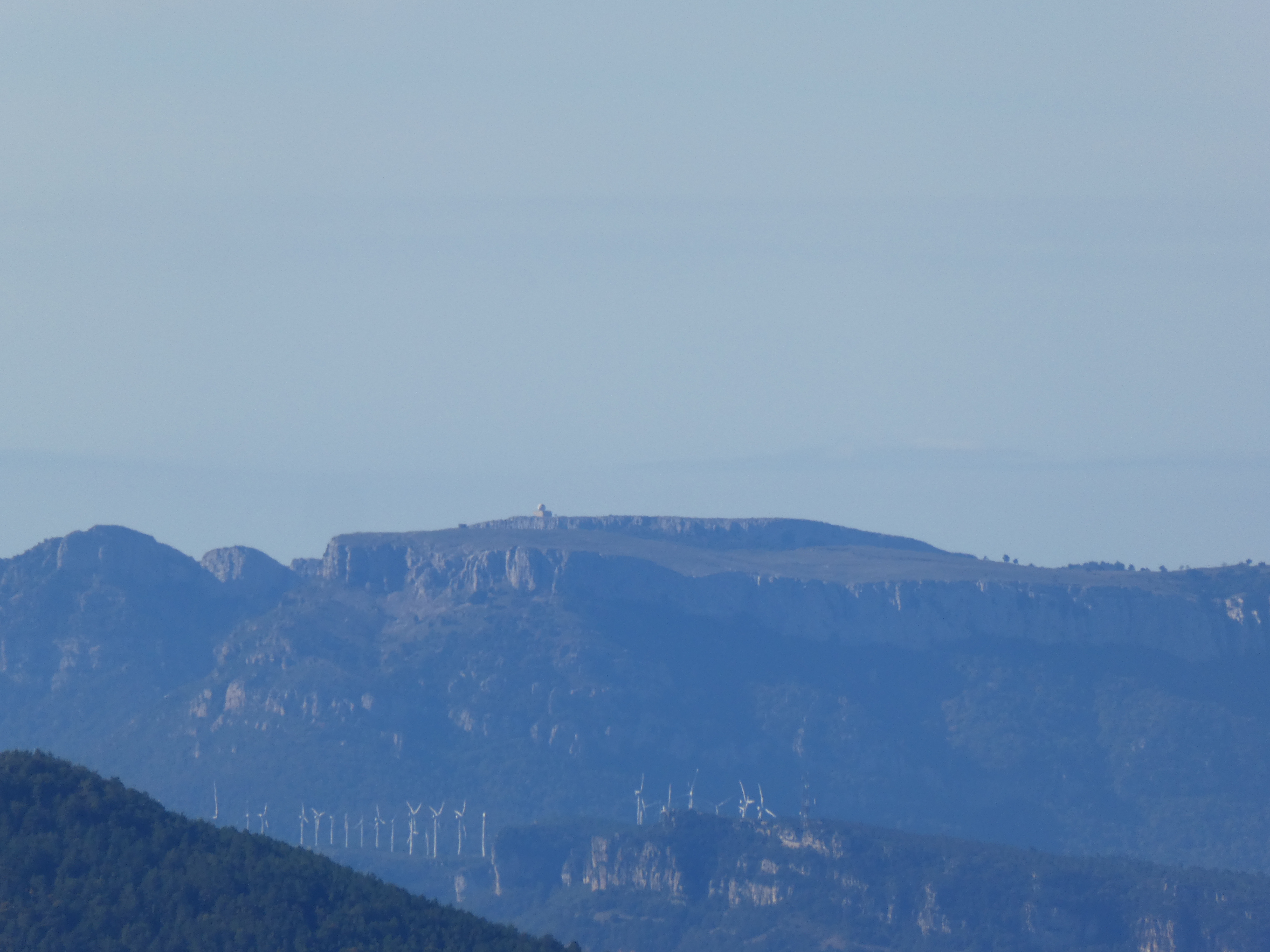 Zoom sur la Penya Alta (1016 m) à gauche et la Serra de Llena (1026 m) à droite