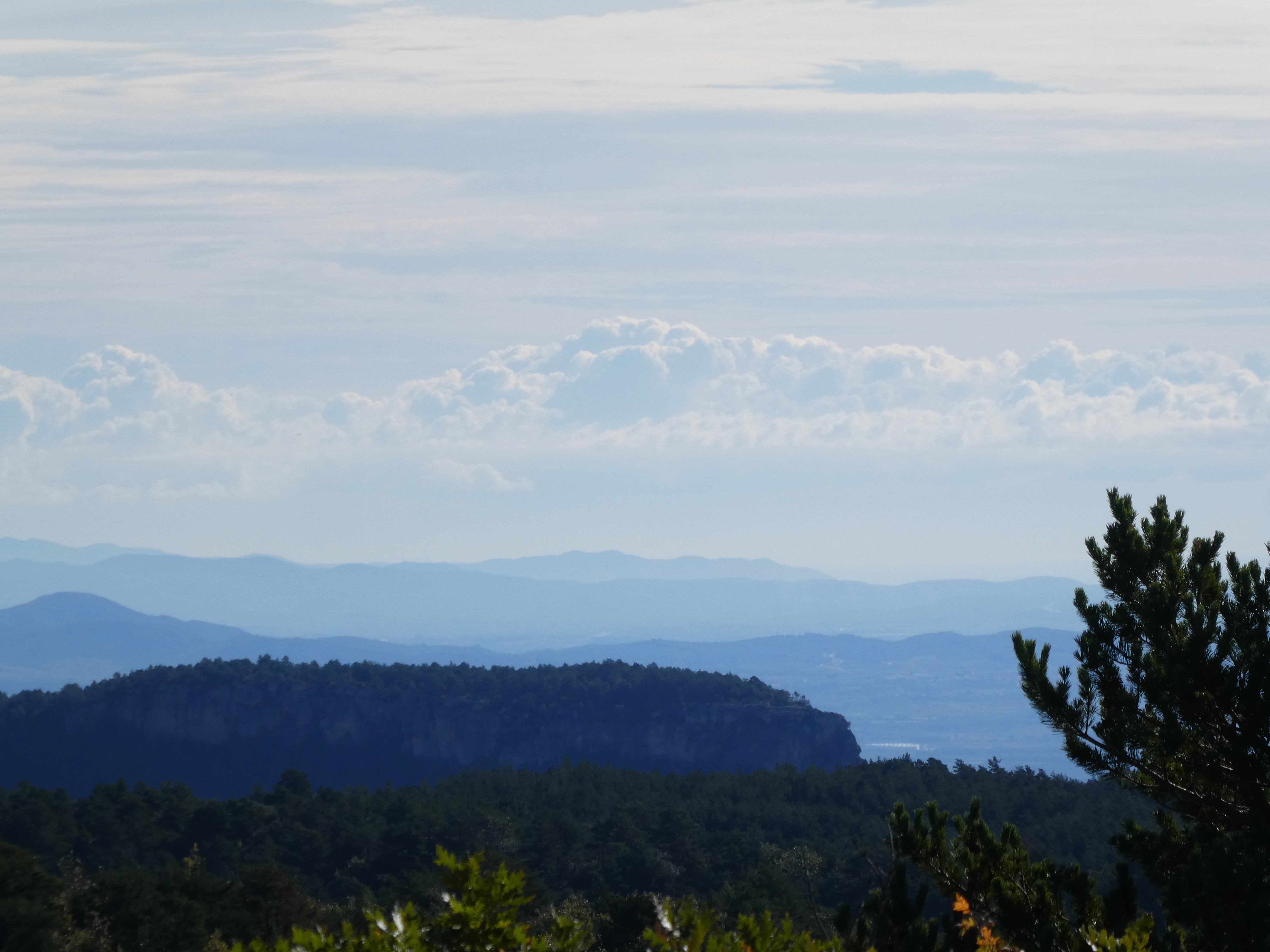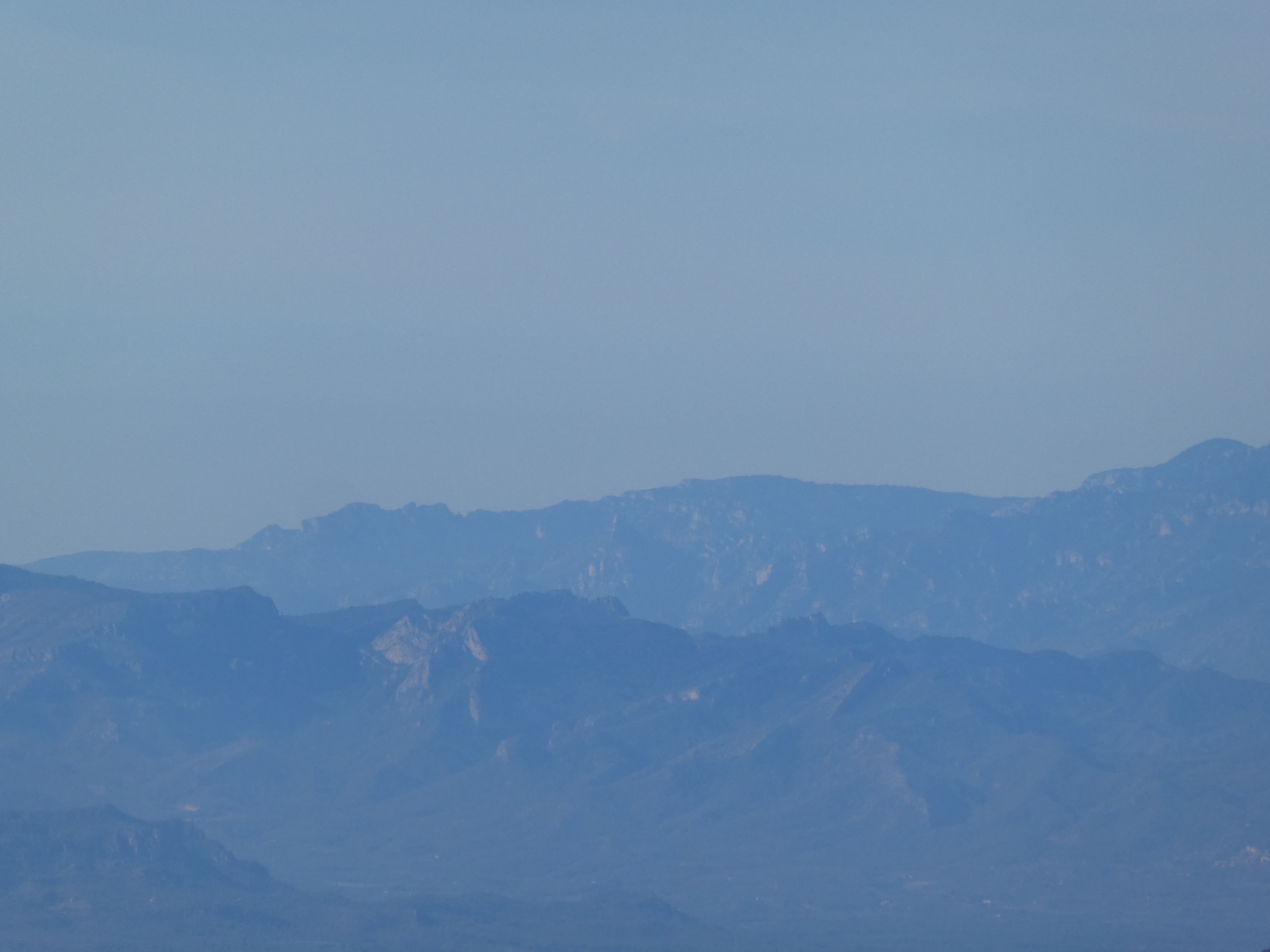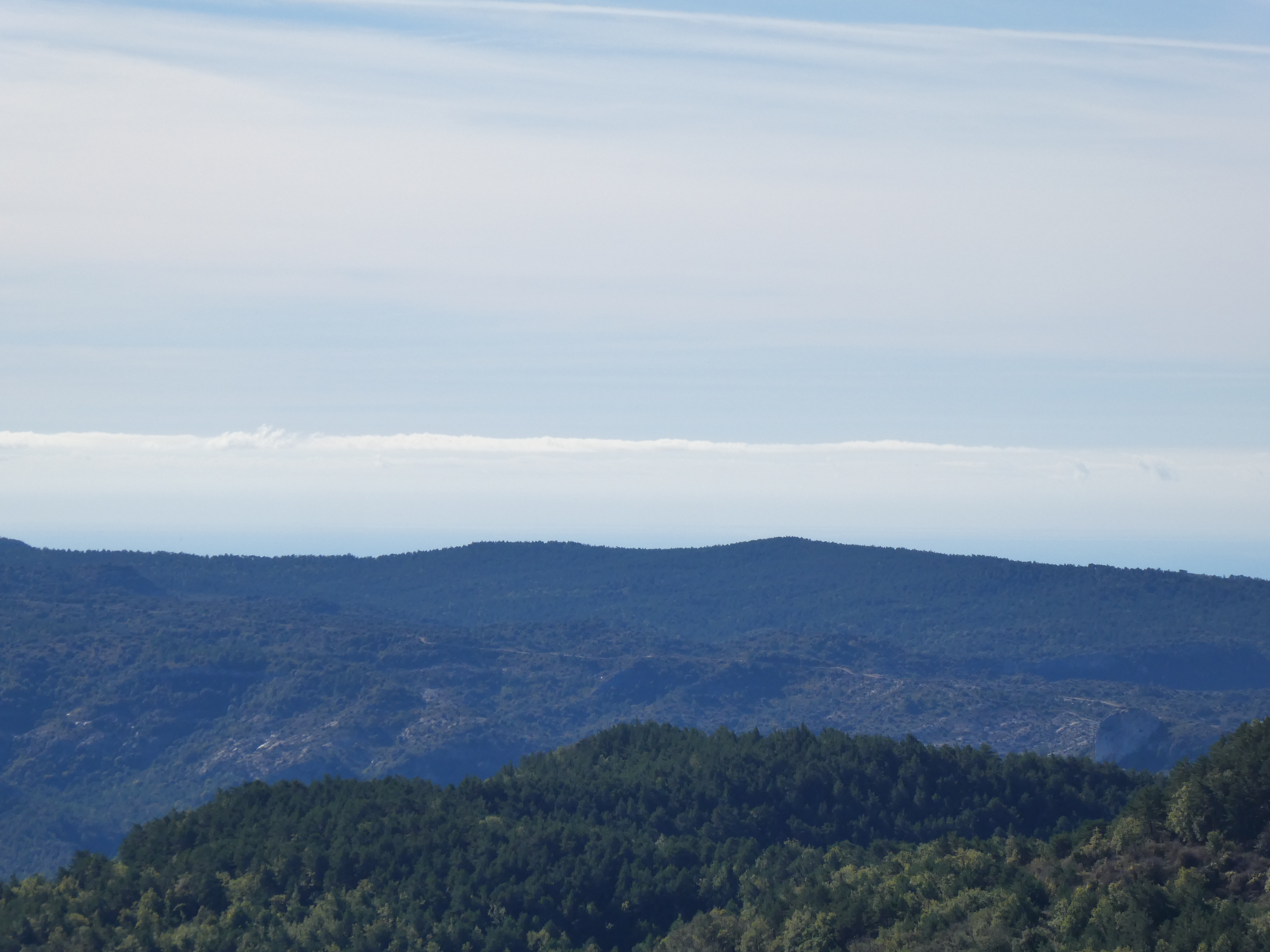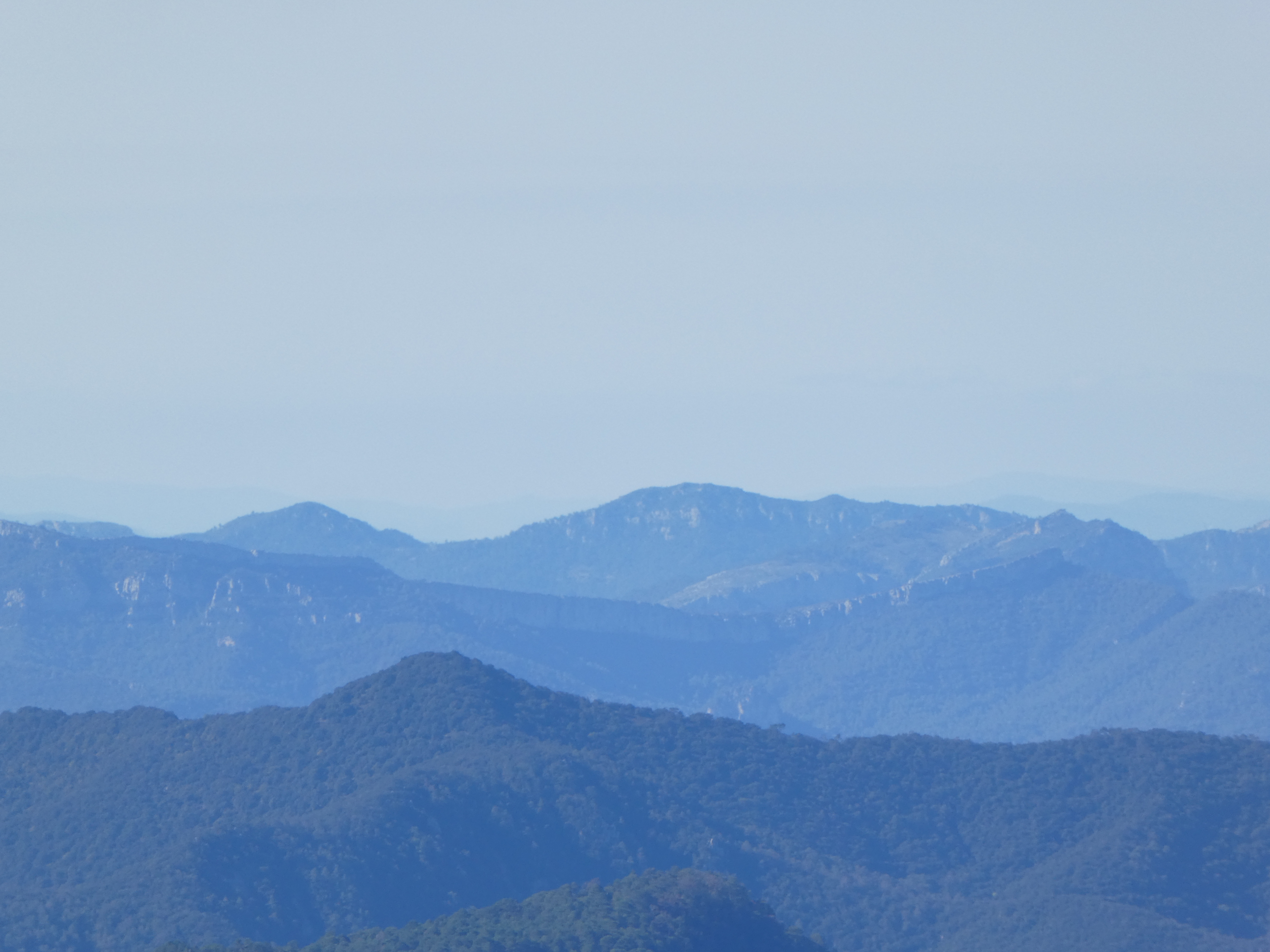 Zoom sur la Penya Alta (1016 m) à gauche et la Serra de Llena (1026 m) à droite
