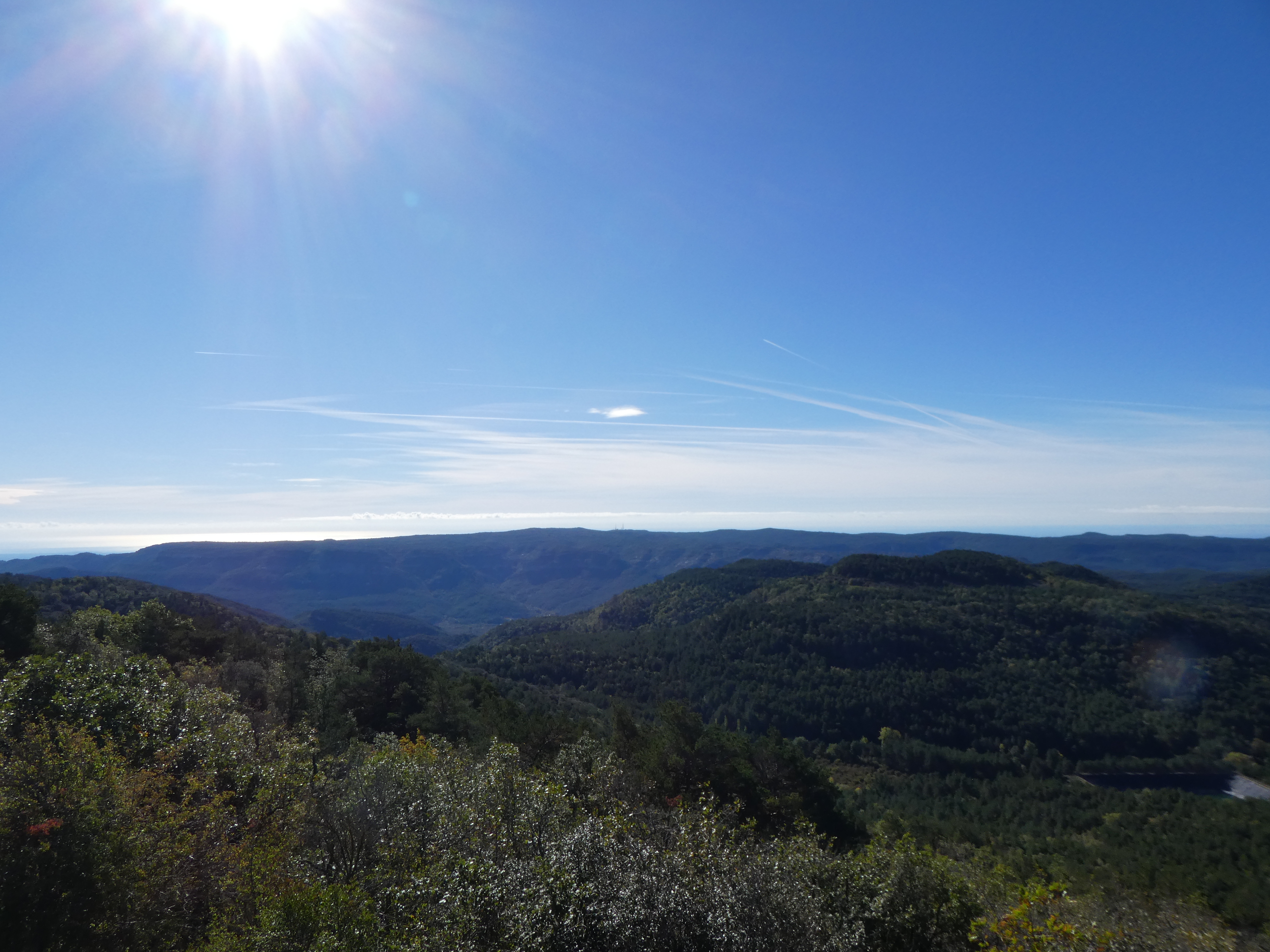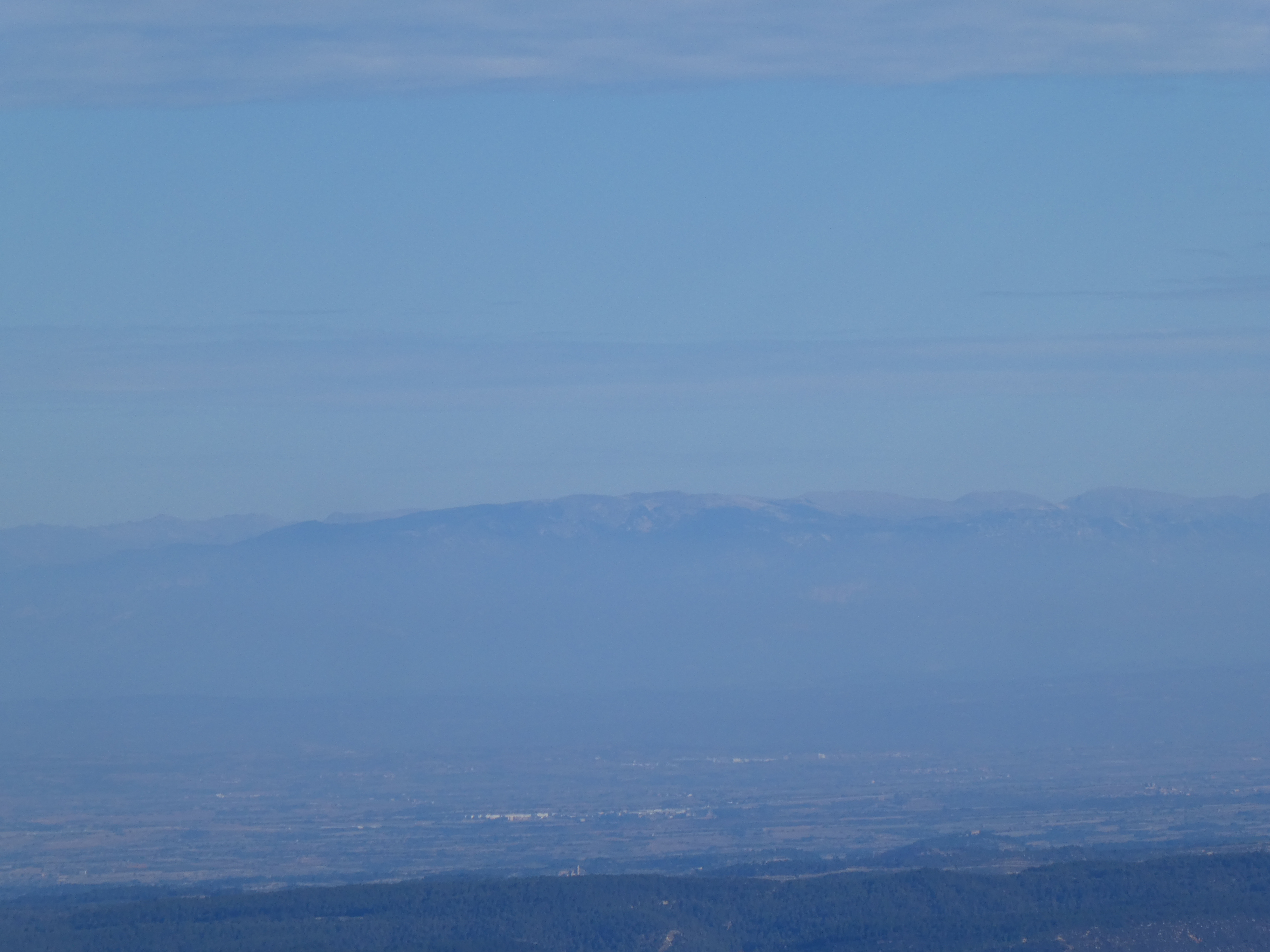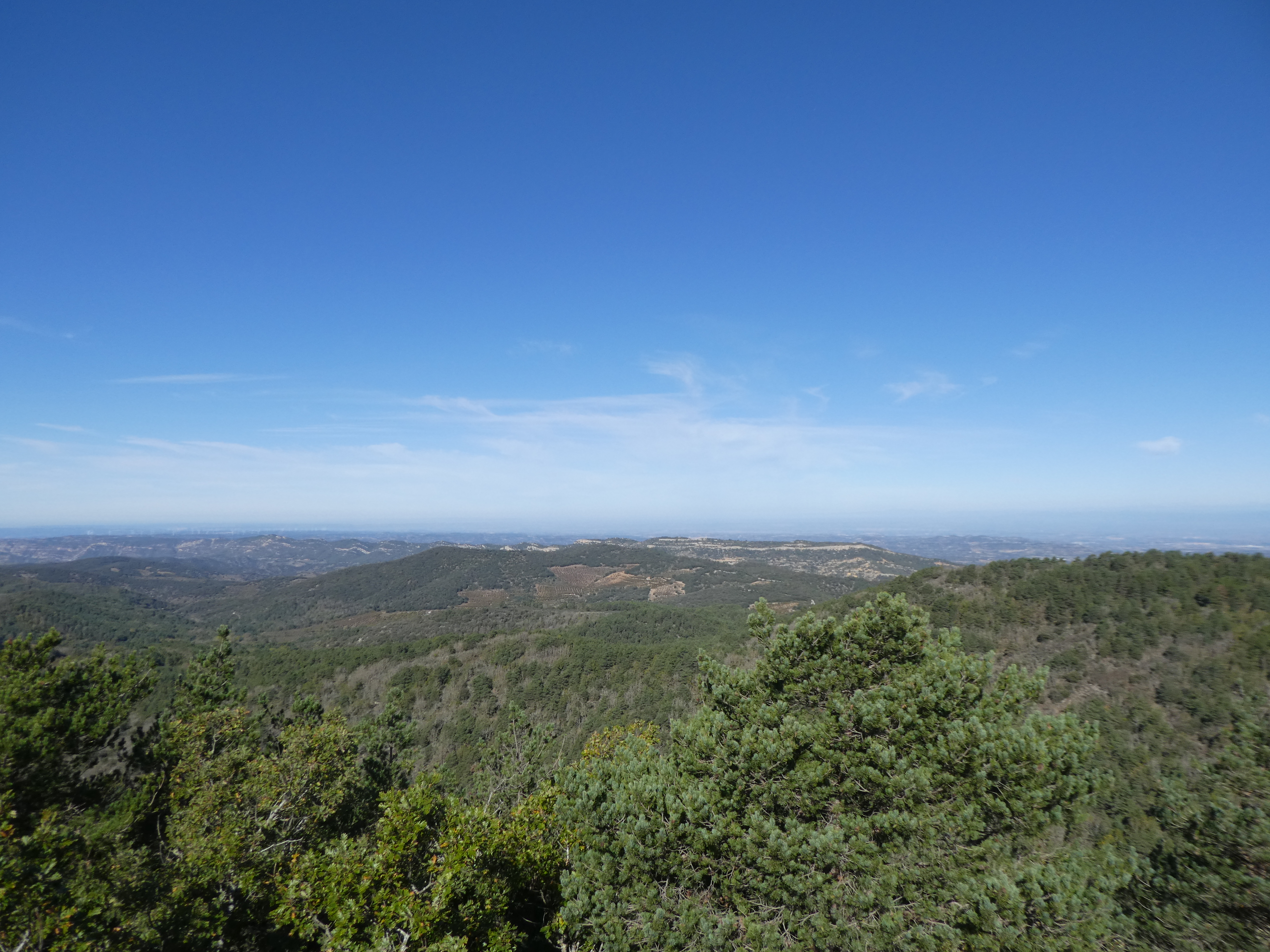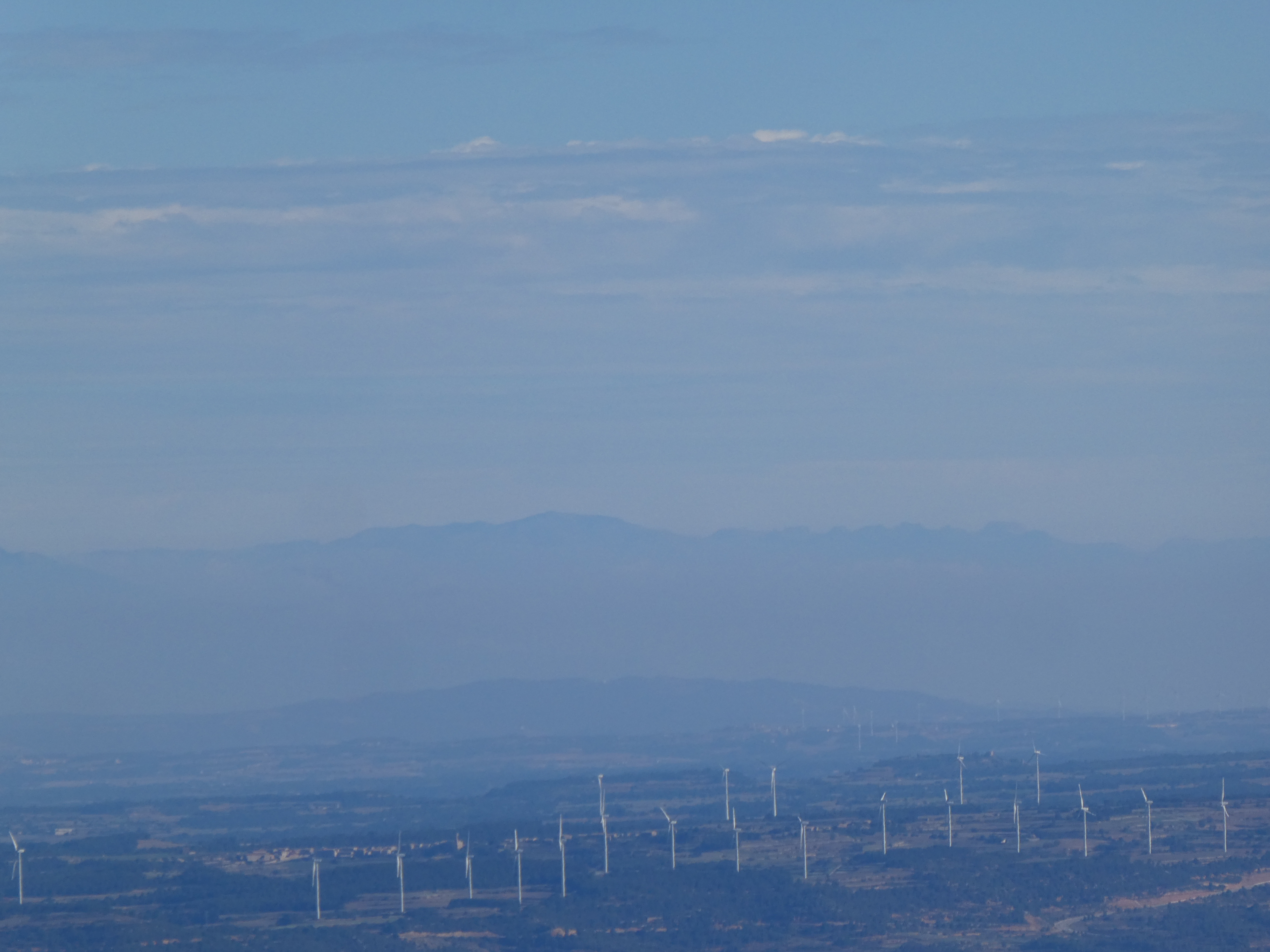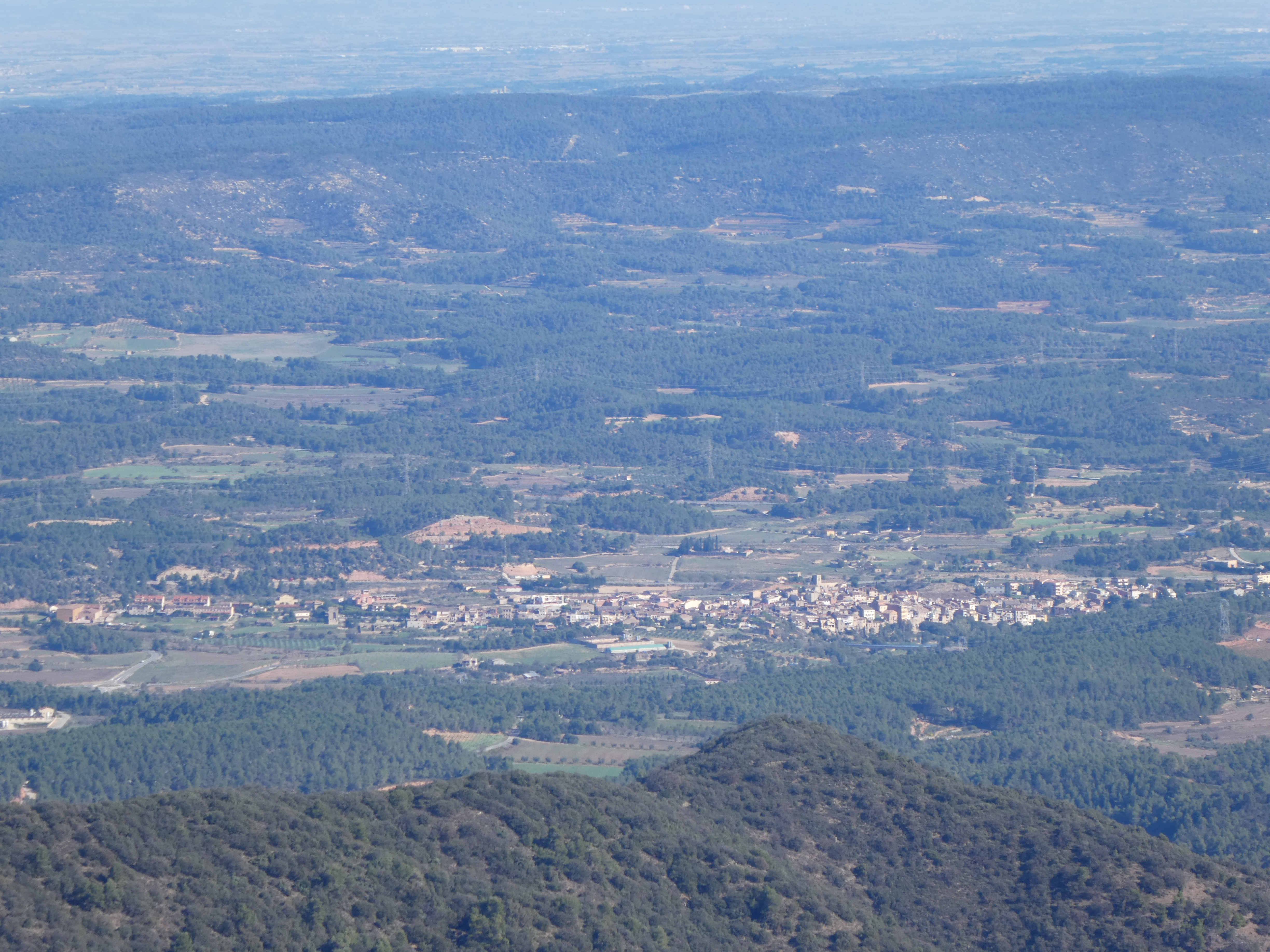 Arrivée au sommet du Tossal de la Baltasana (1201 m) : beau panorama sur les sommets du Baix Camp, de la Vall de l'Ebre, de la Terra Alta, du Priorat, de les Garrigues, du Pallars Jussà, de l'Alt Urgell, du Solsonès, du Berguedà ainsi que sur la plaine de Lérida