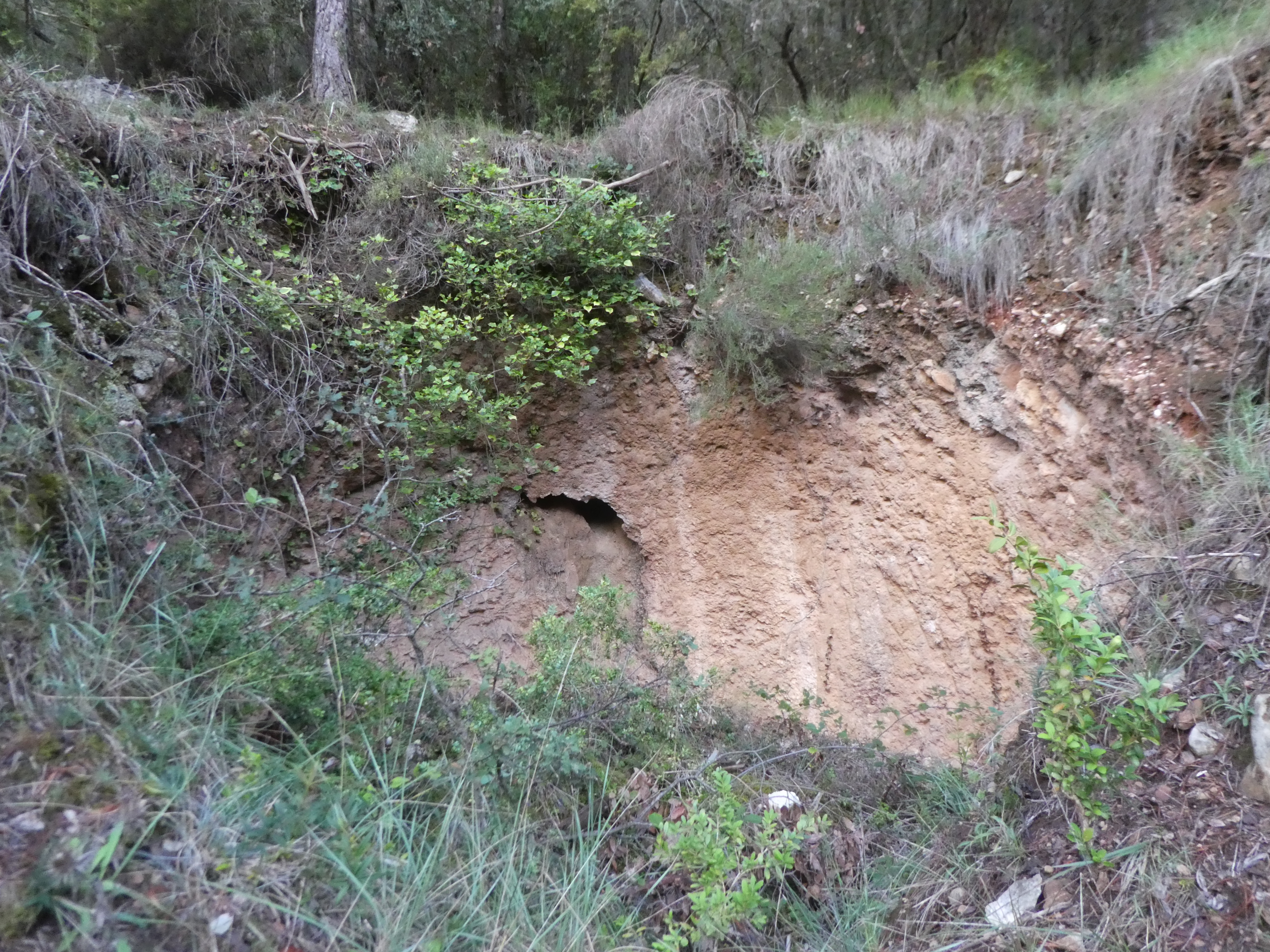 Les belles formations géologiques du site de la Cova d'en Pere ; repartir du site dans le même sens que celui de l'aller direction Tossal de la Baltasana