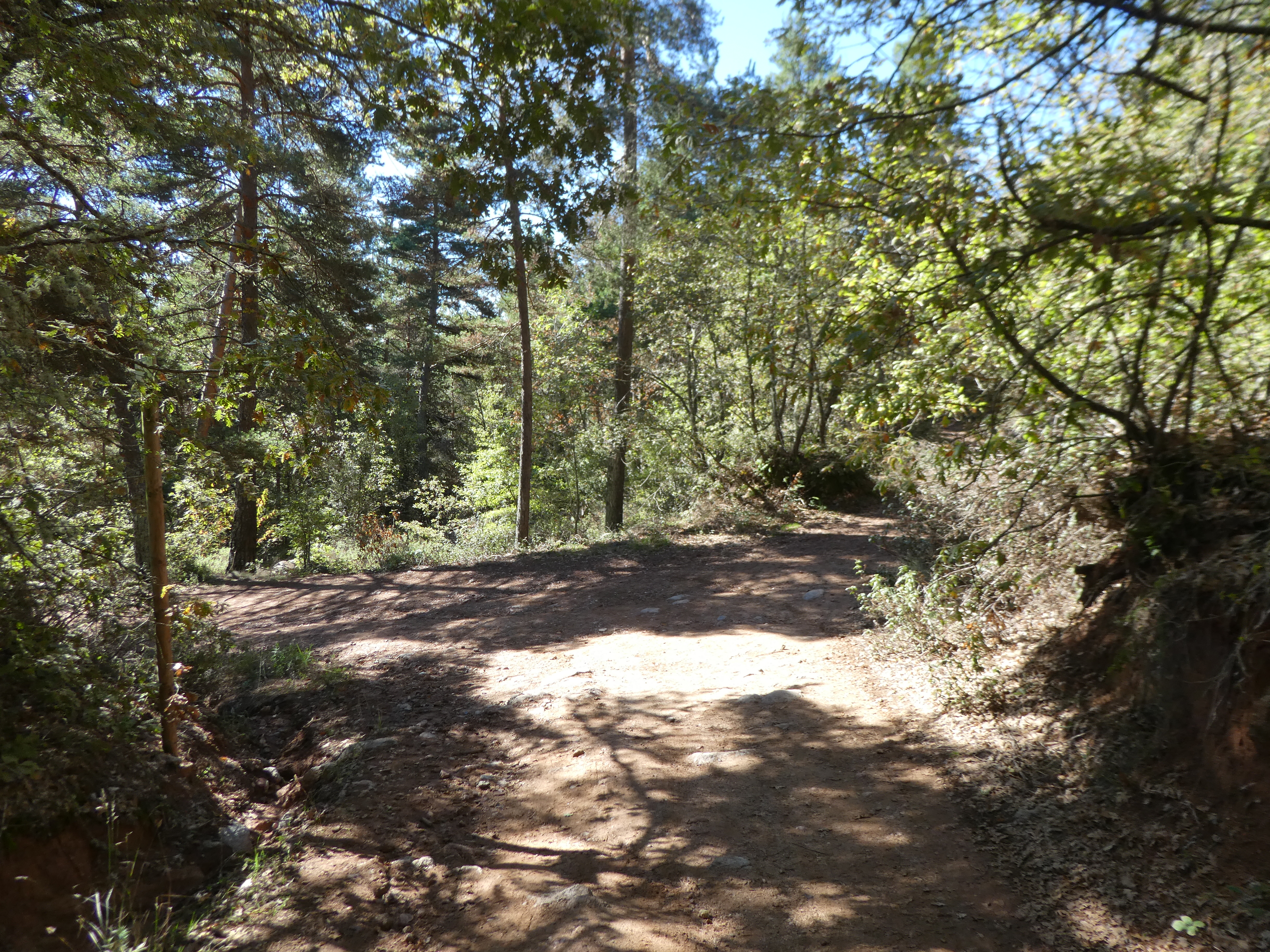 A ce croisement avec le sentier menant au Pou de Gel del Dineral marqué par la présence d'un panneau directionnel (25 mètres après le précédent), suivre ce dernier partant sur la droite direction Pou de Gel del Dineral, aucun balisage dorénavant