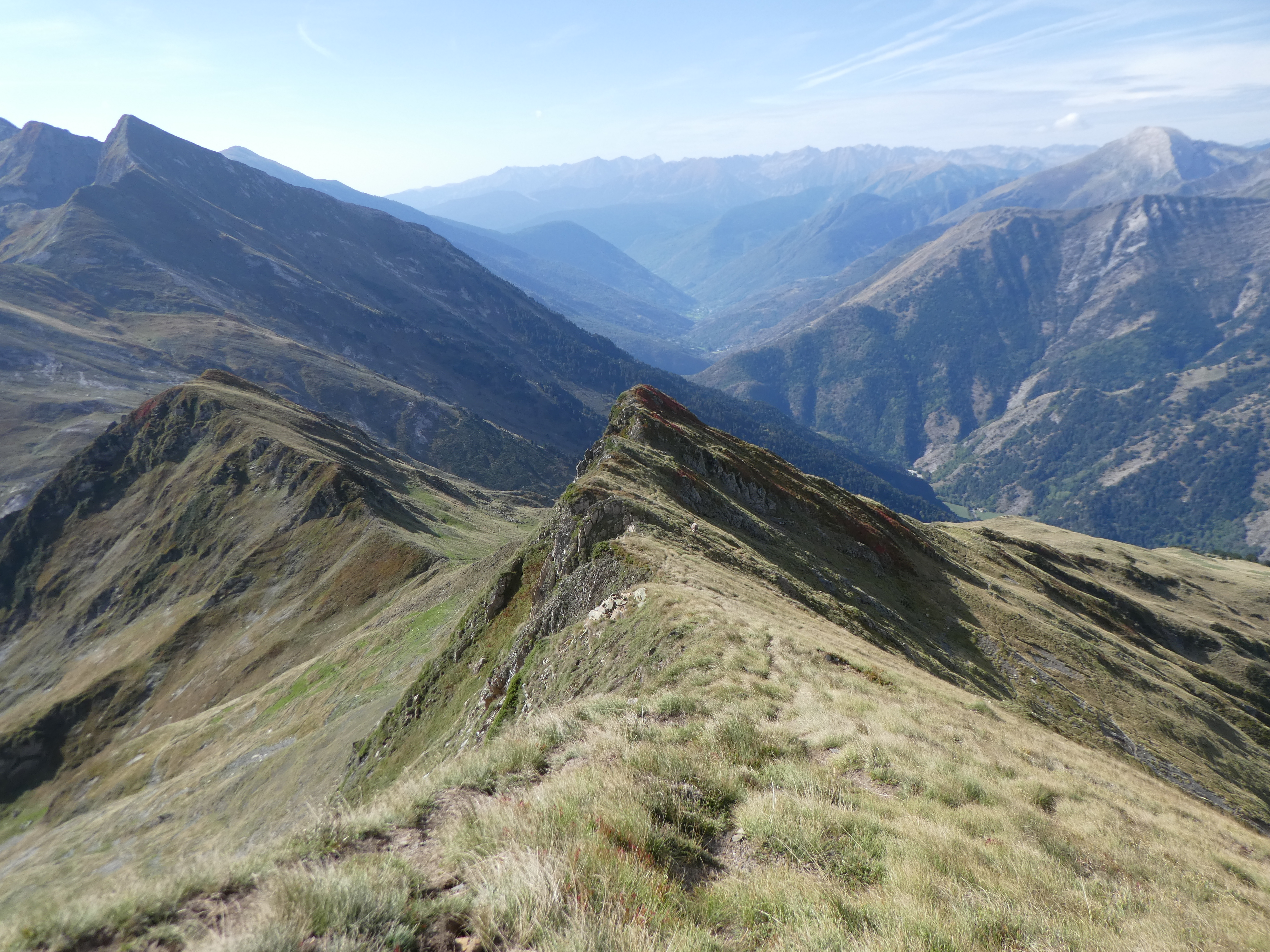 Vue arrière sur le parcours de crête effectué depuis le Lane Formente