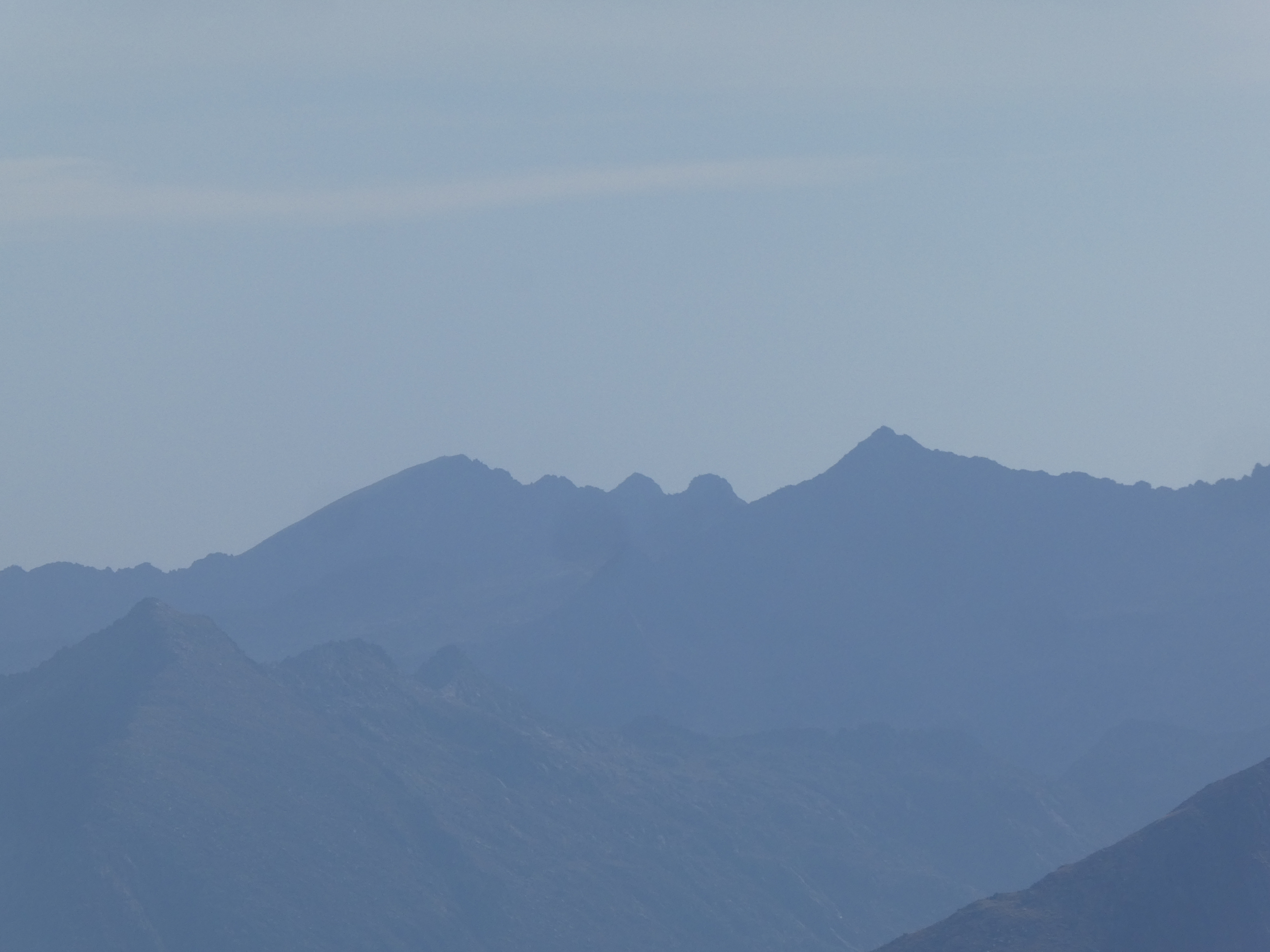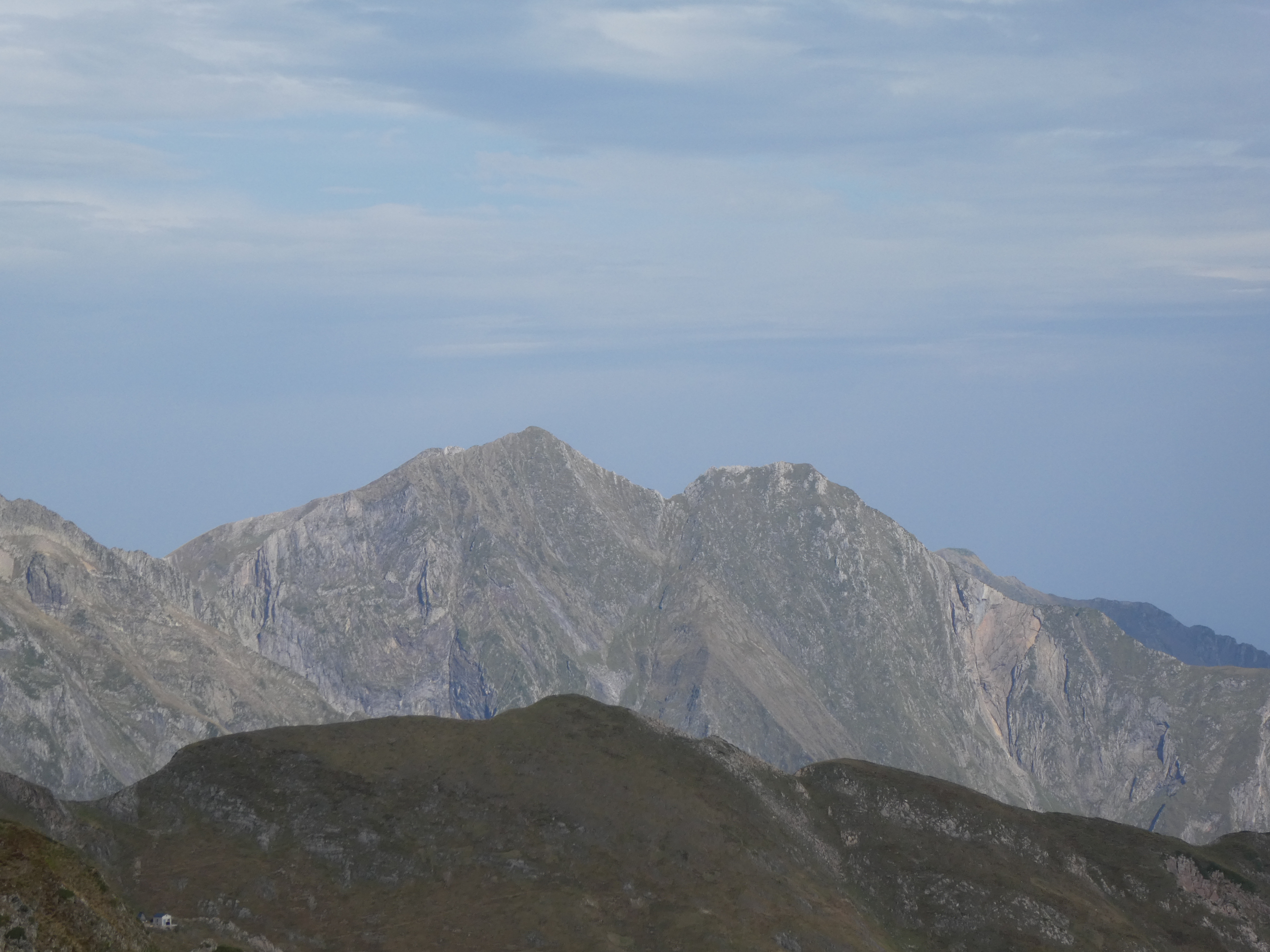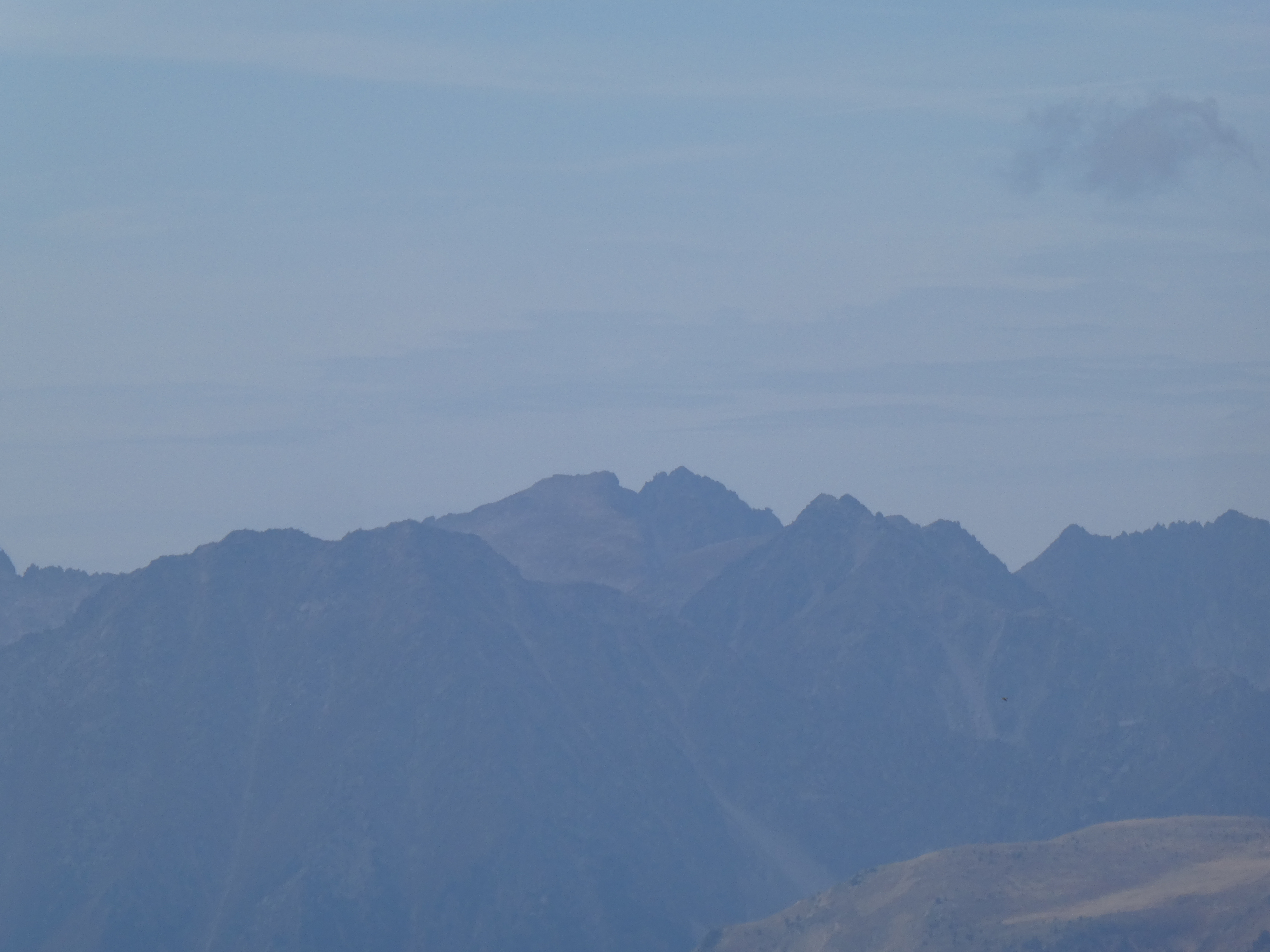 Zoom sur le Mont du Petit Valier (2736 m) au centre-gauche et le Mont Valier (2838 m) au centre-droit