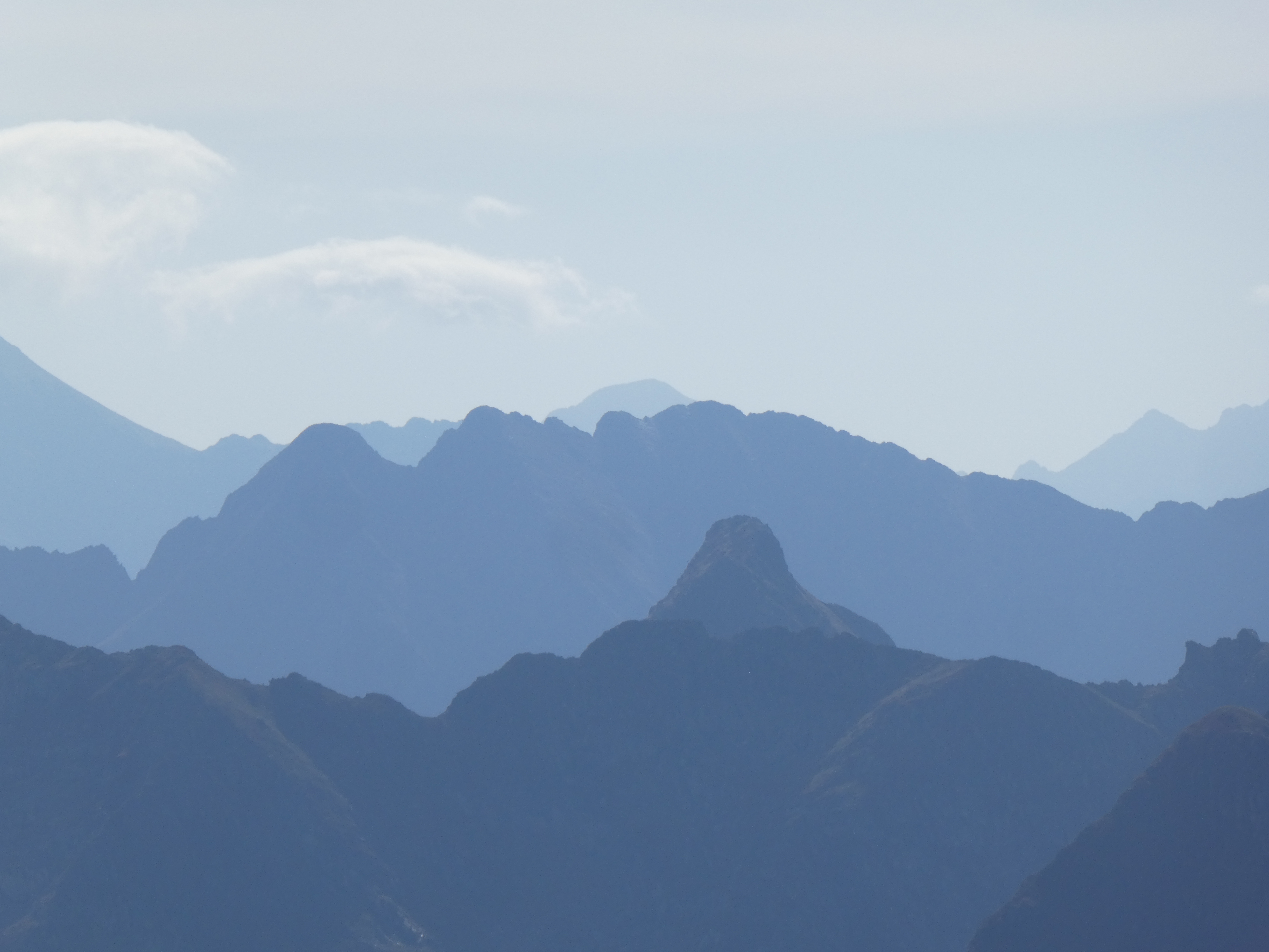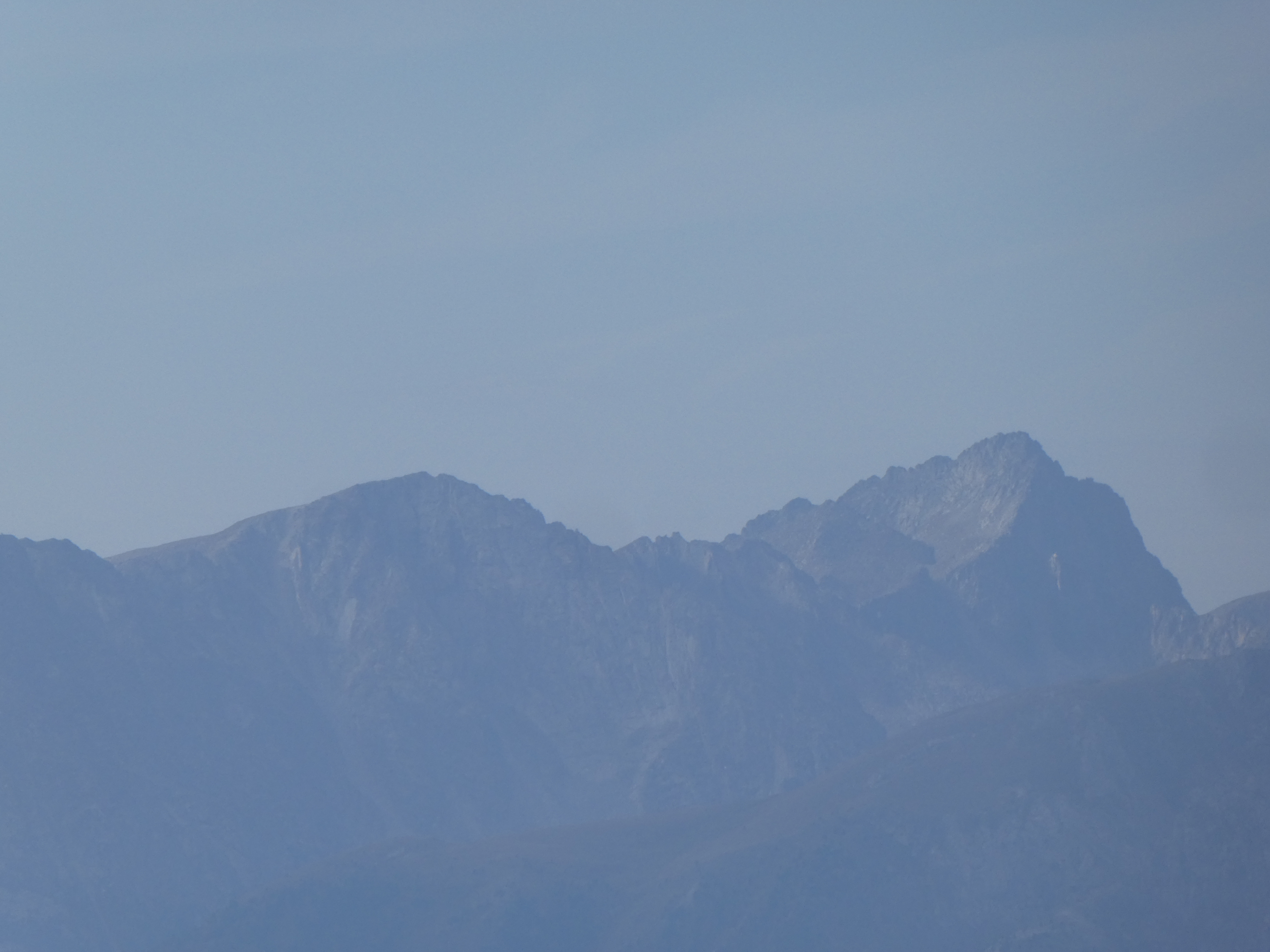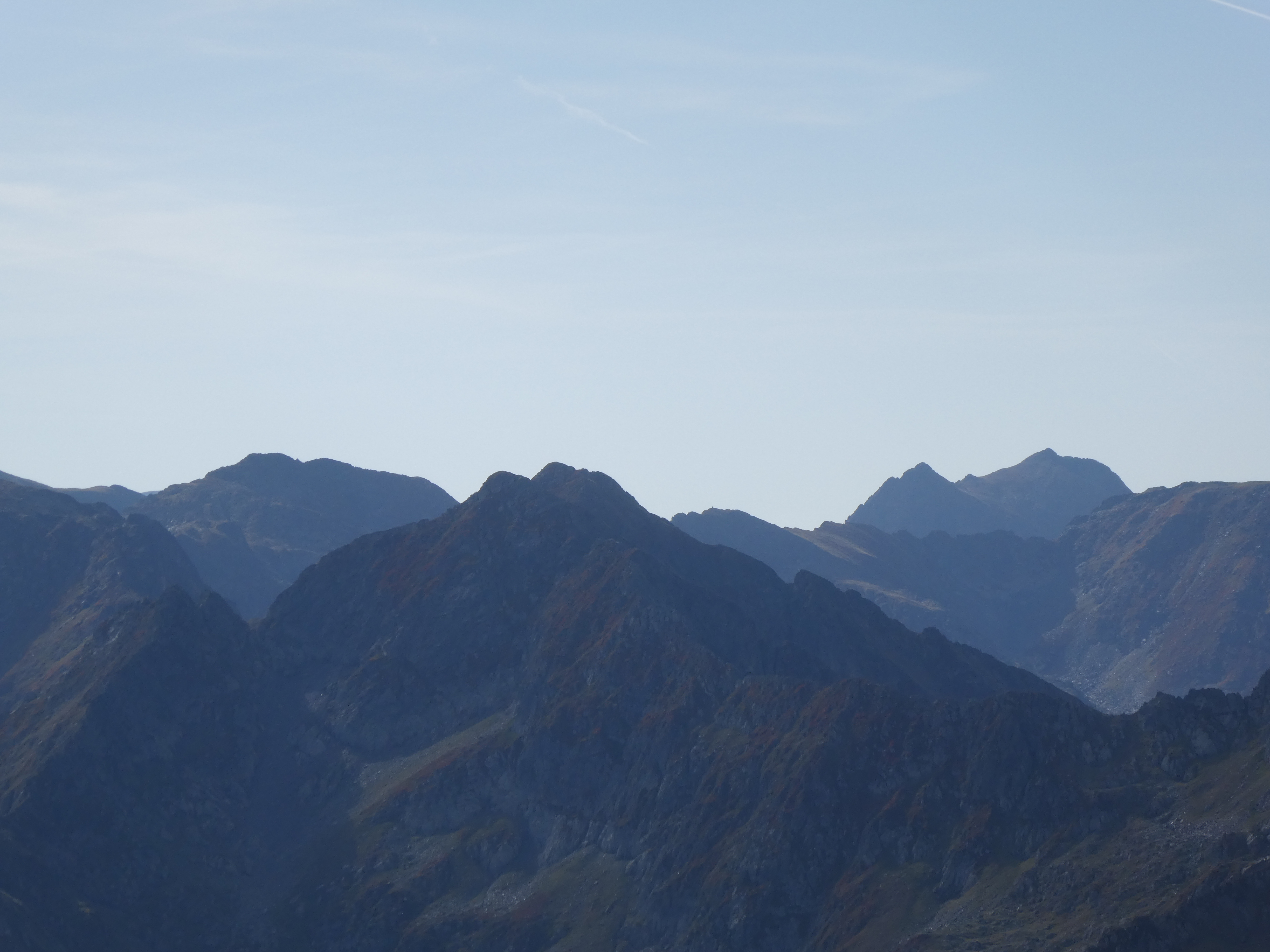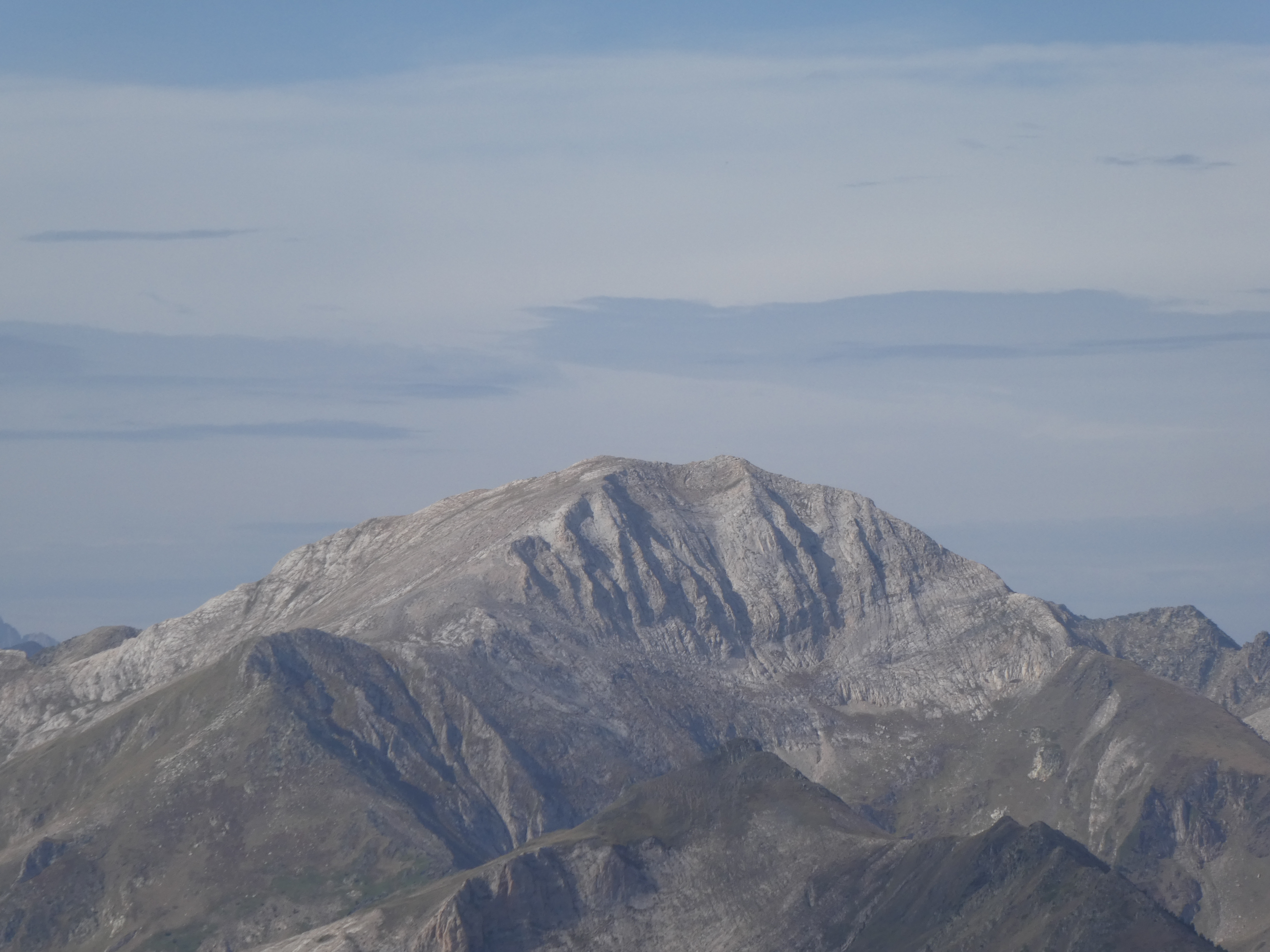 Zoom sur le Mont du Petit Valier (2736 m) au centre-gauche et le Mont Valier (2838 m) au centre-droit