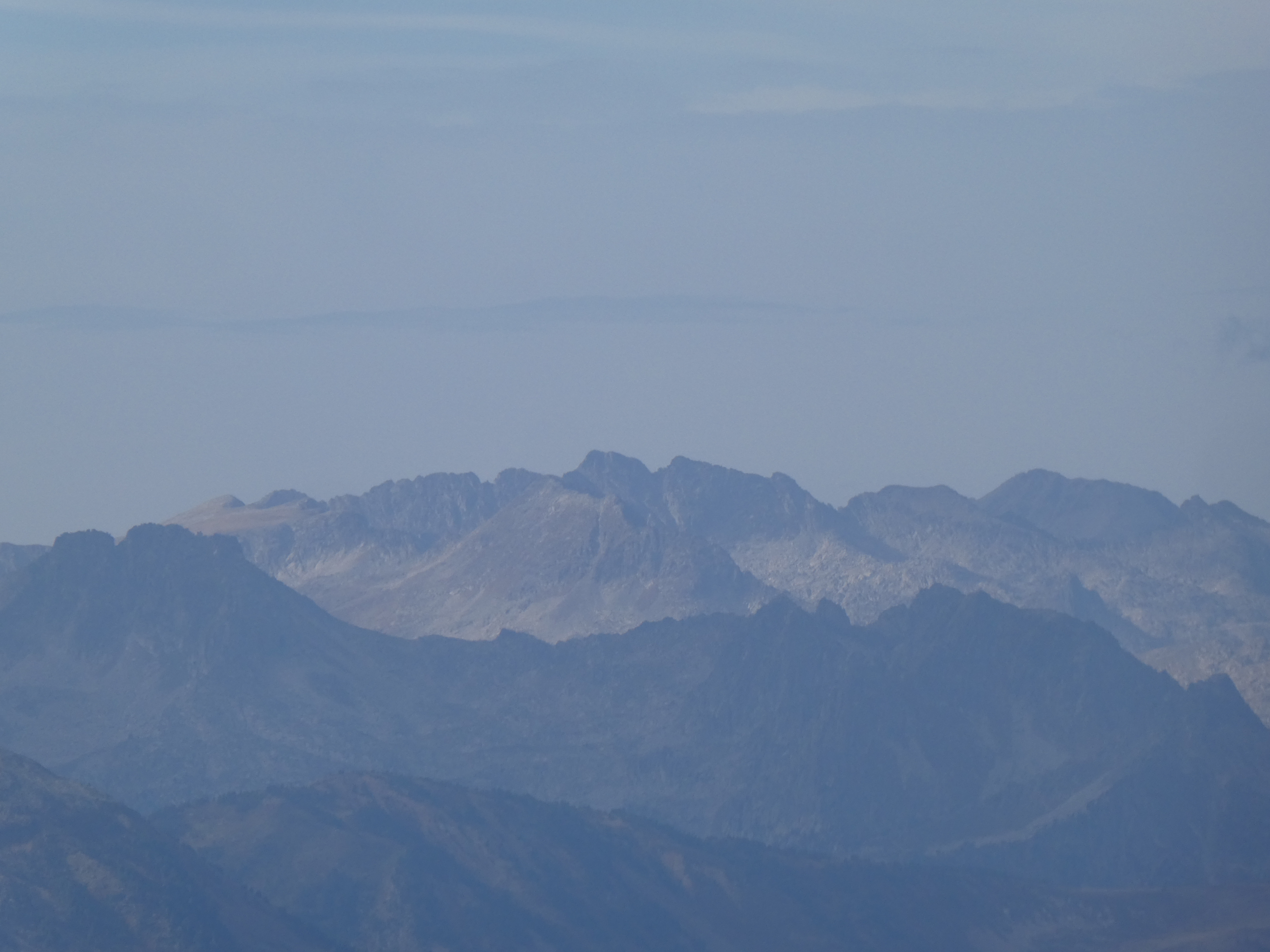 Zoom sur le Muntanyó (2781 m) et le Montorroio (2861 m) à gauche, et le Pui de Linya (2869 m) à droite