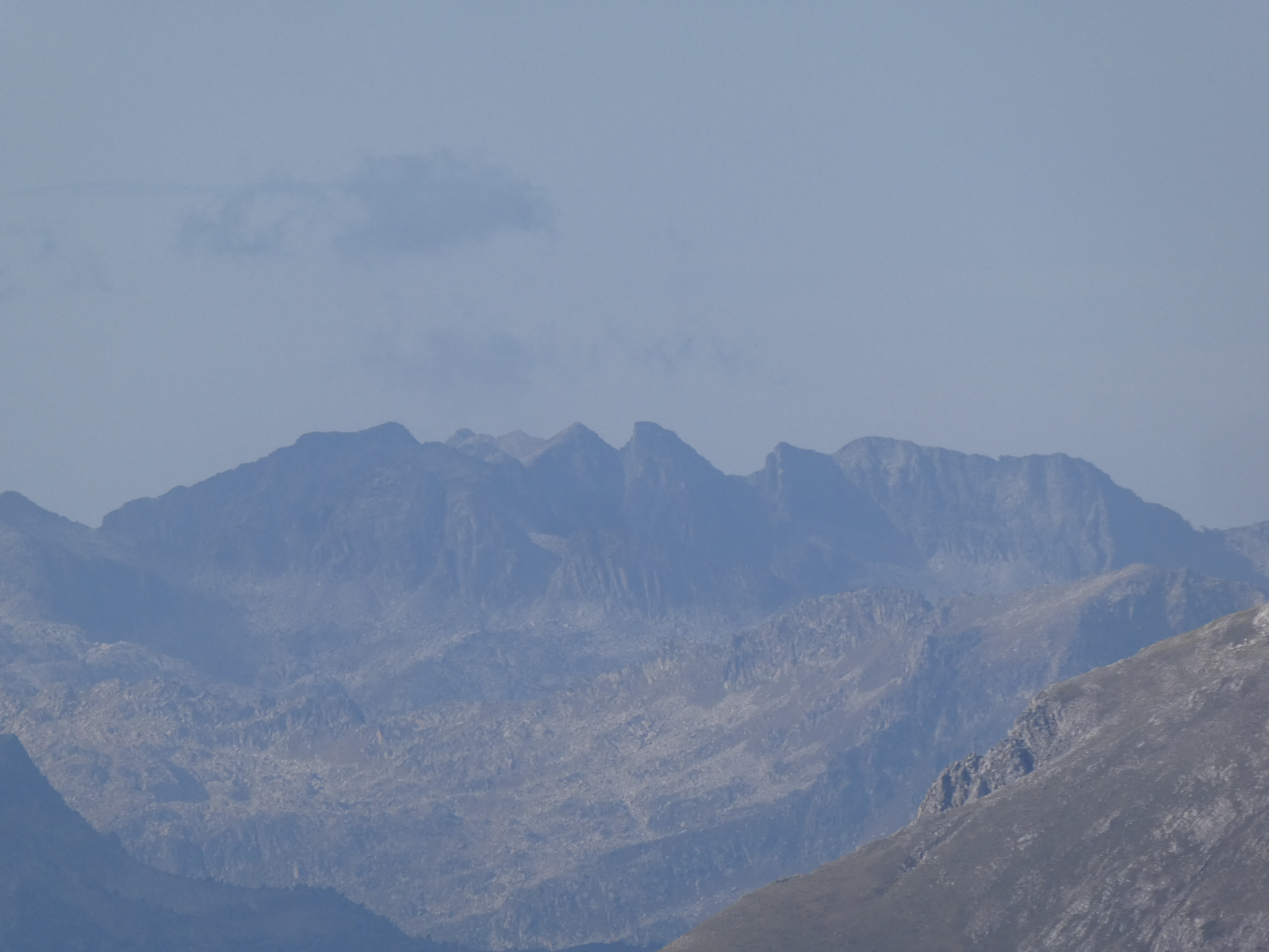 Zoom sur le Pic de Barlonguère (2802 m) au centre-gauche et le Pic des Trois Comtes (2694 m) au centre-droit