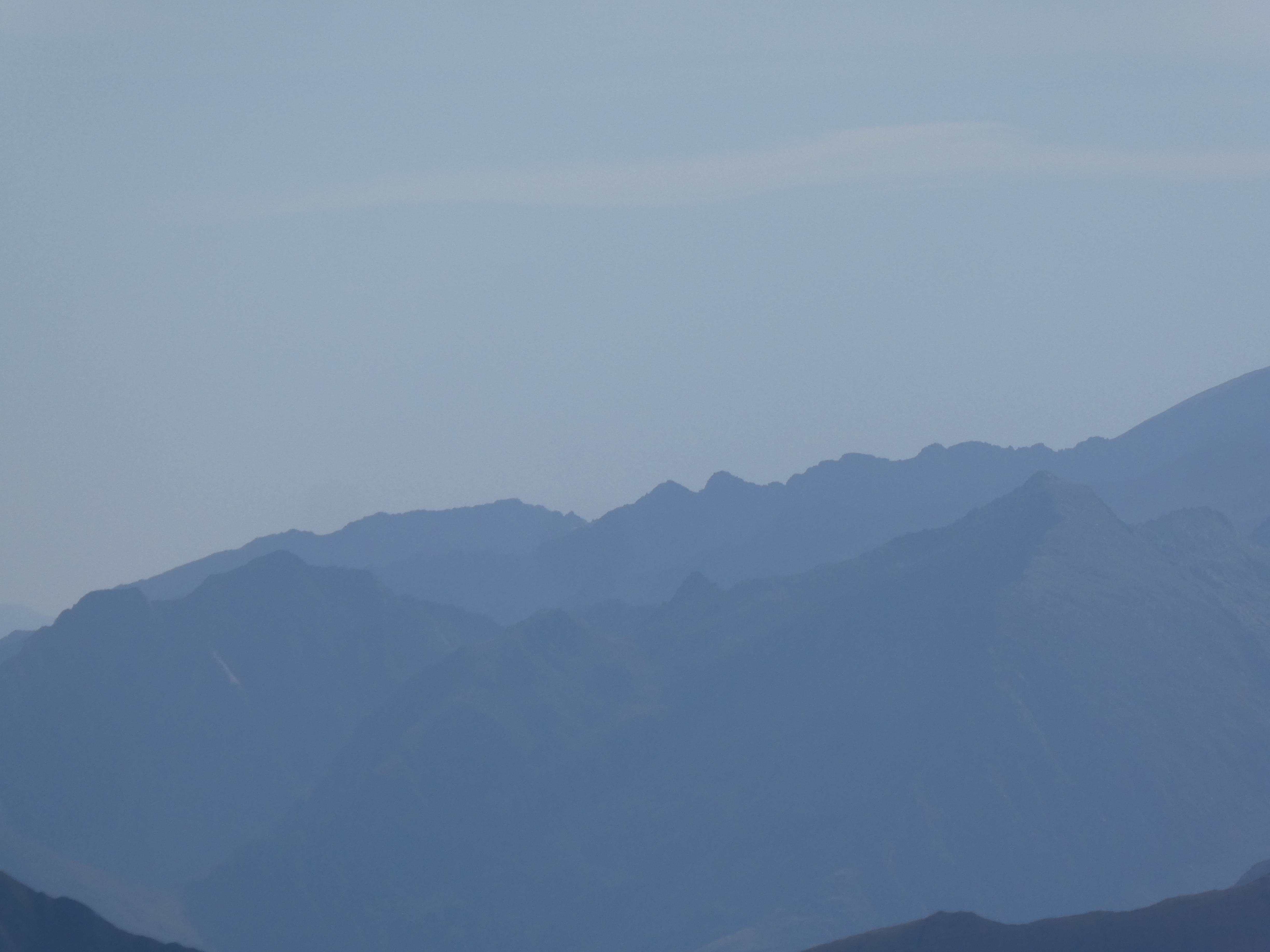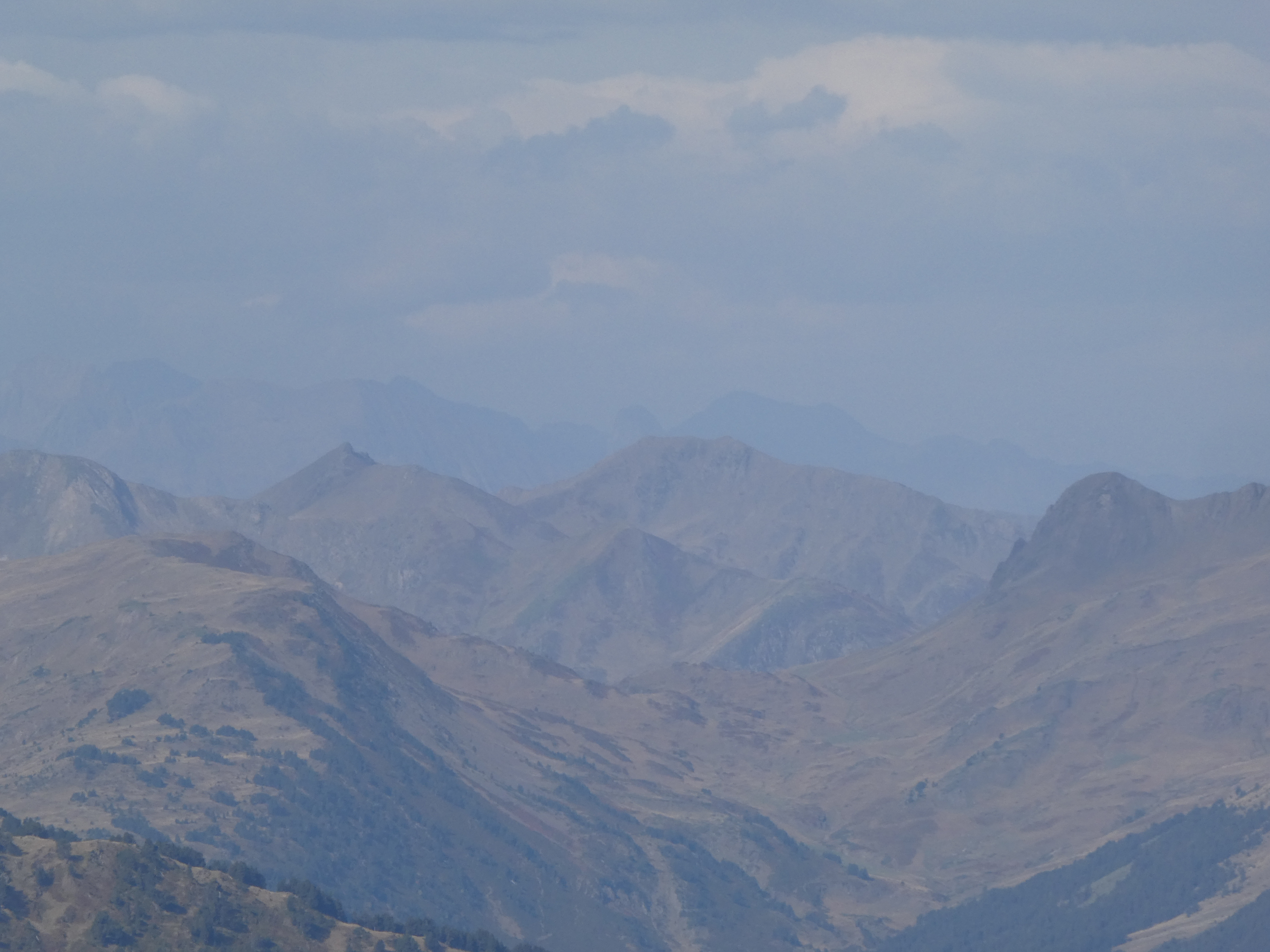 Zoom sur le Pic de Calamane (1363 m) au centre-gauche et le Tuc de la Courate (1415 m) au centre-droit