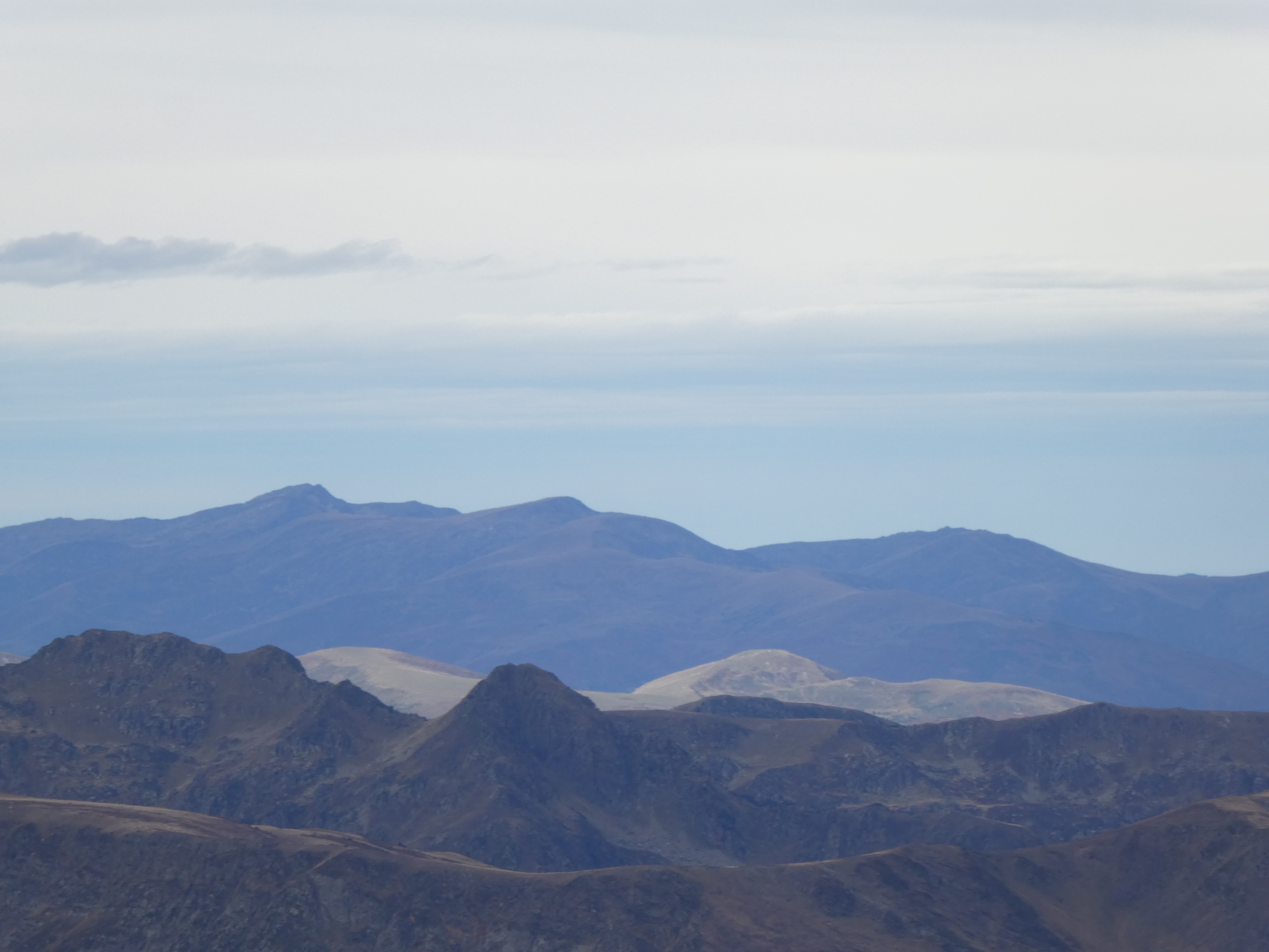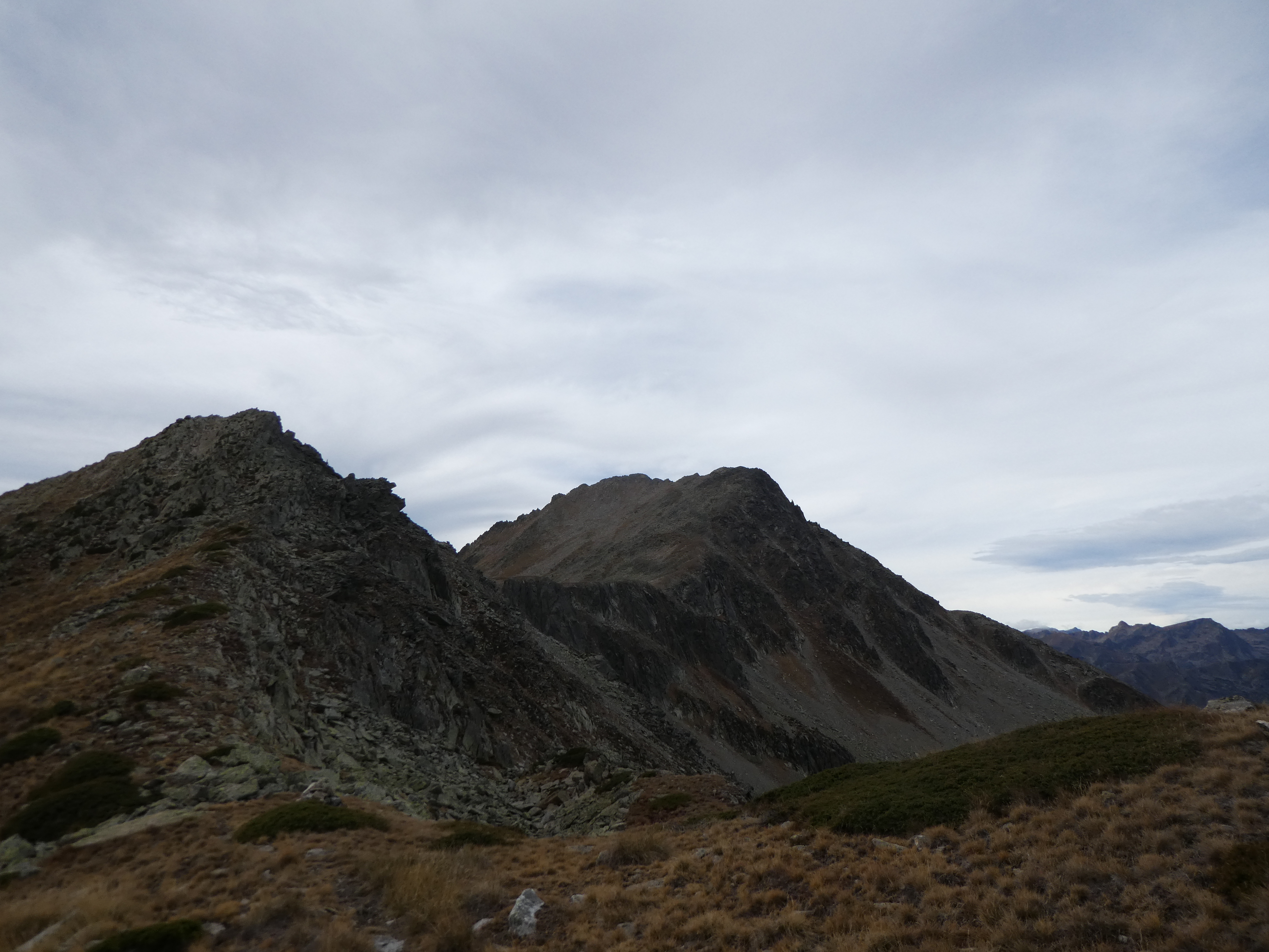 Zoom sur le Puig de la Pelada (2370 m) au centre-gauche et le Puig d'Escotó (2292 m) à droite