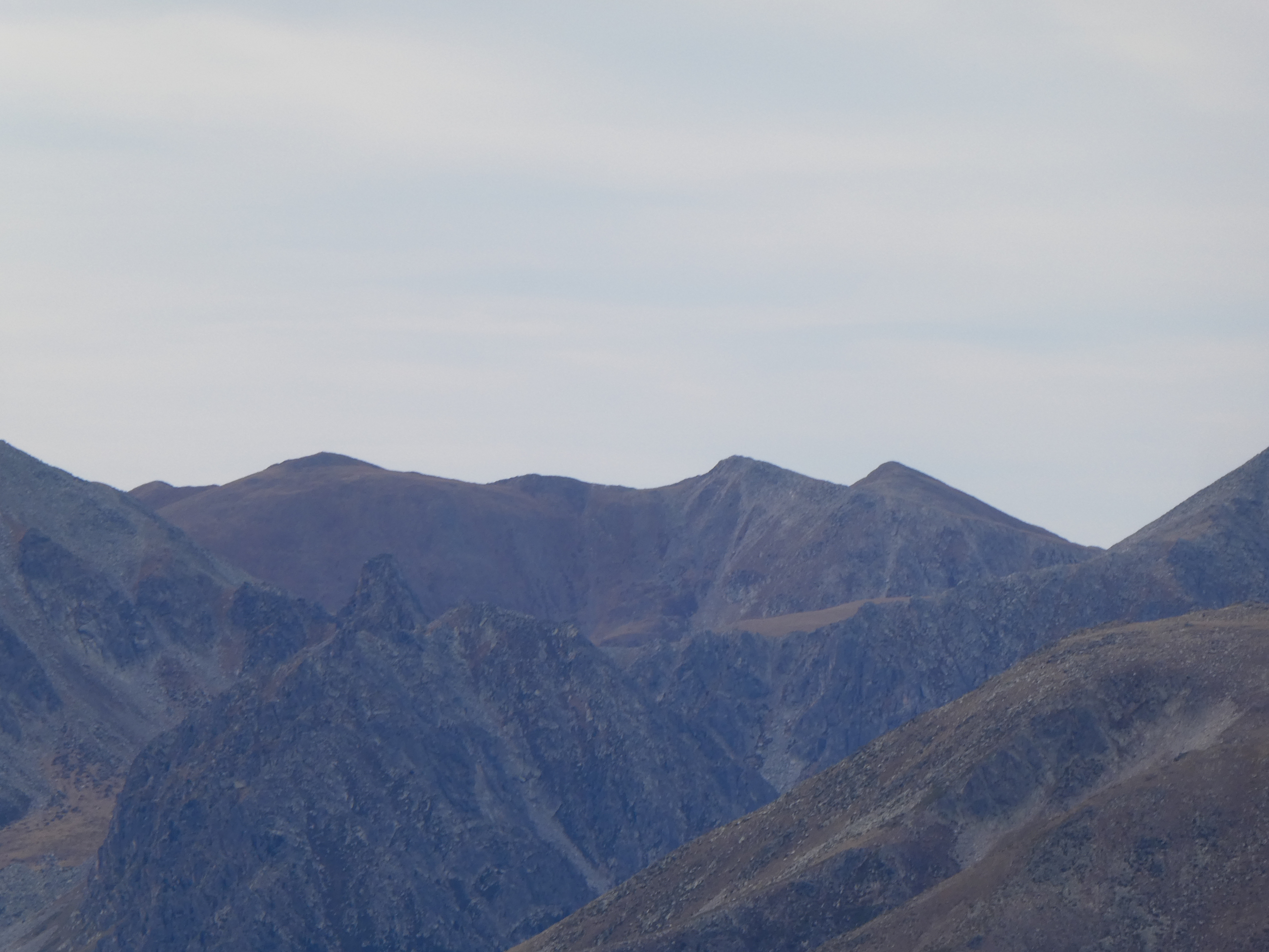 Zoom sur les Rasos de Baix (2058 m) au centre-gauche, la Creu de Ferro (2294 m) au centre et le Cap de Gallina Pelada (2321 m) à droite
