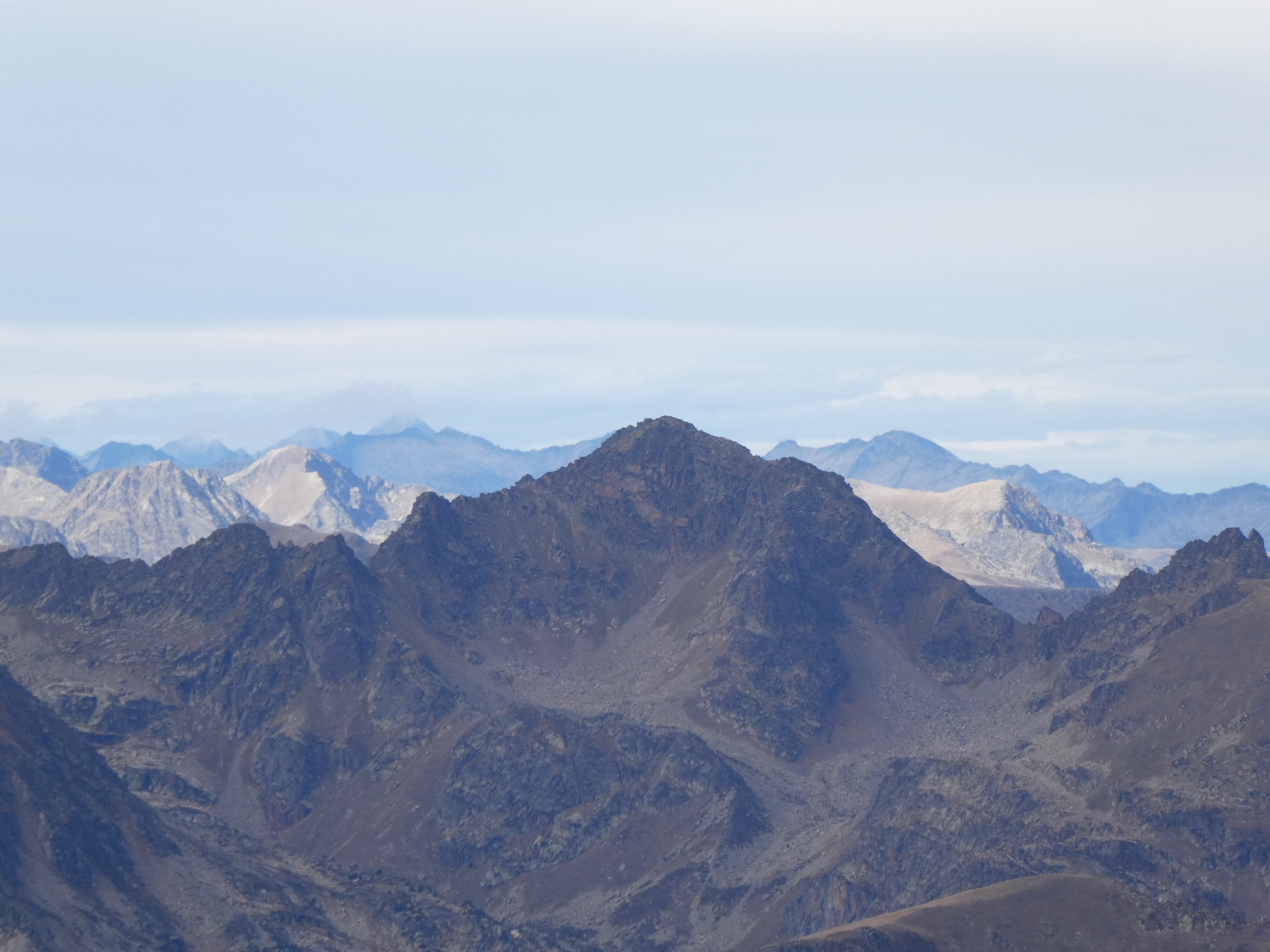 Zoom sur le Puig de Morters (2668 m) au centre-gauche et le Puig de la Portella Gran (2765 m) à droite