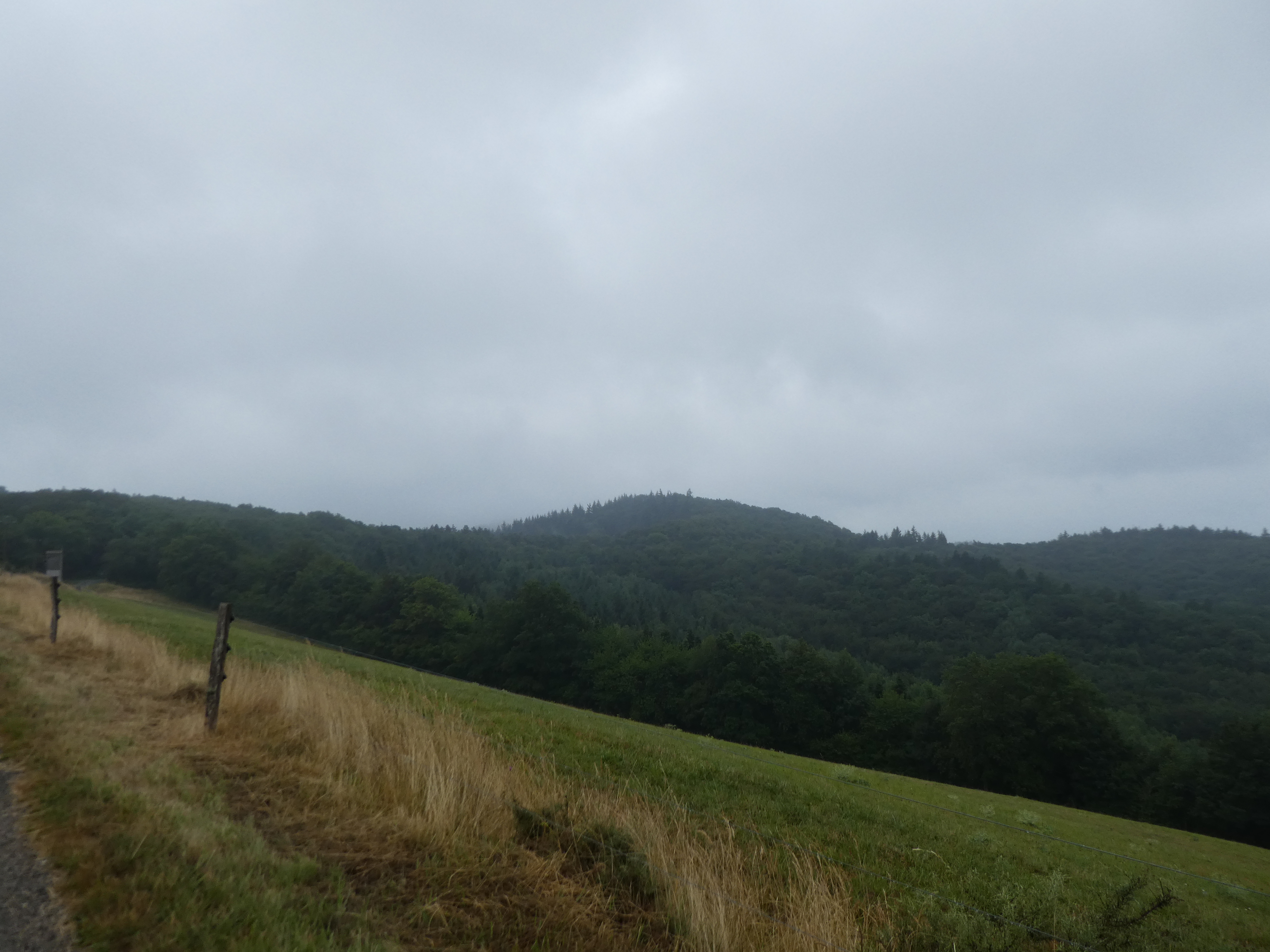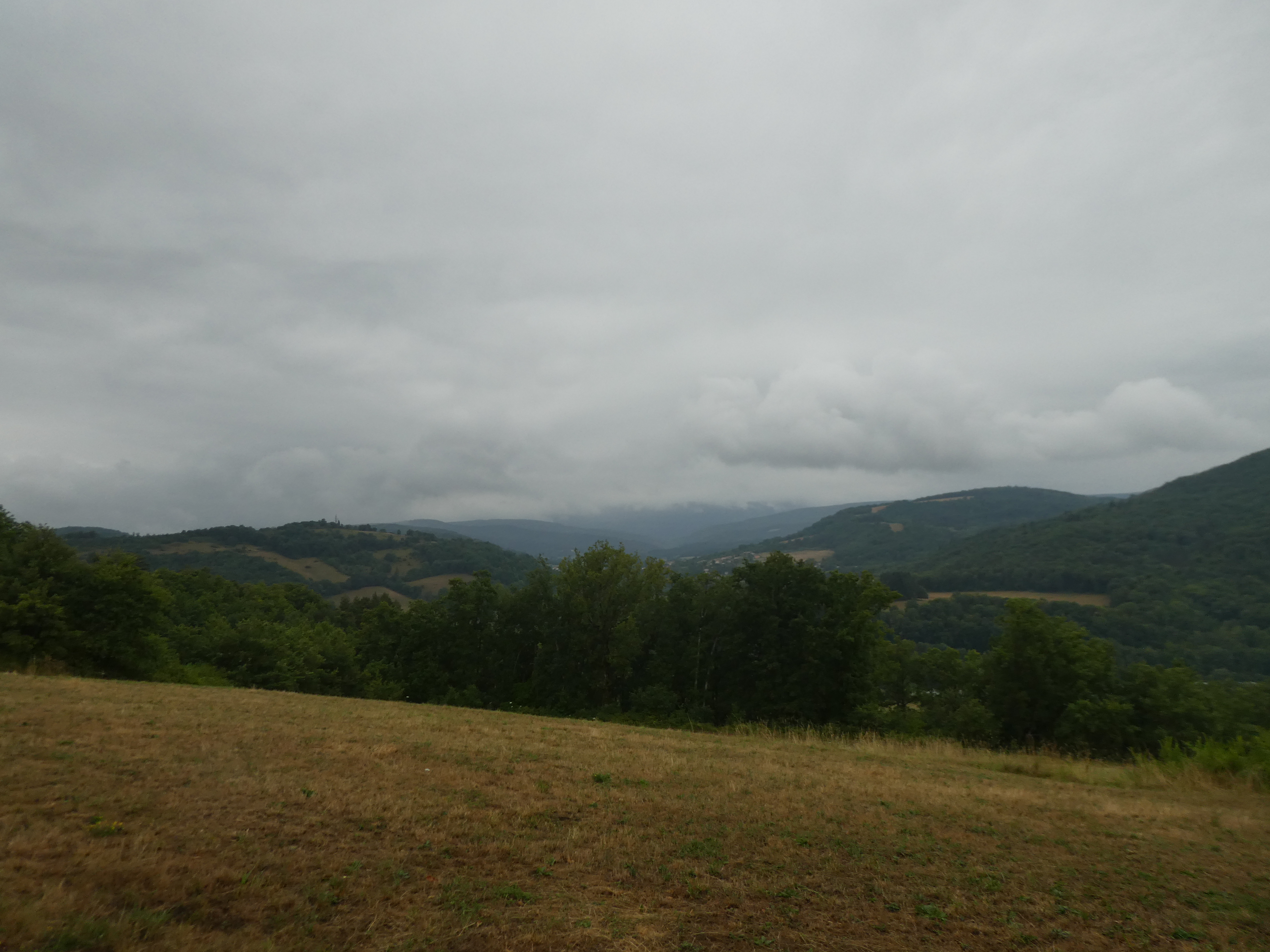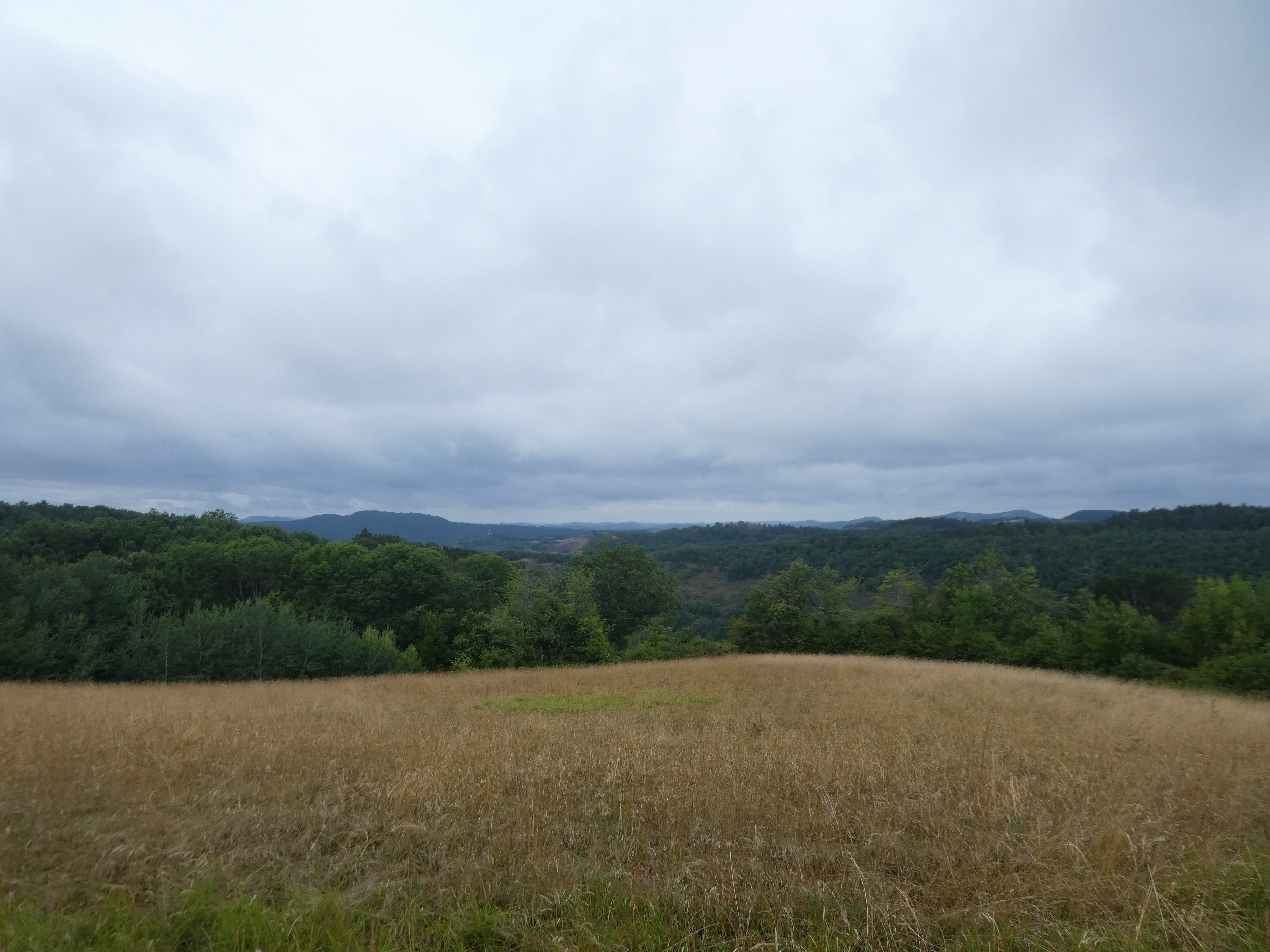 Arrivée au sommet du Sarrat des Breyches (700 m) : aucun panorama possible à cause de la présence de végétation au sommet ...