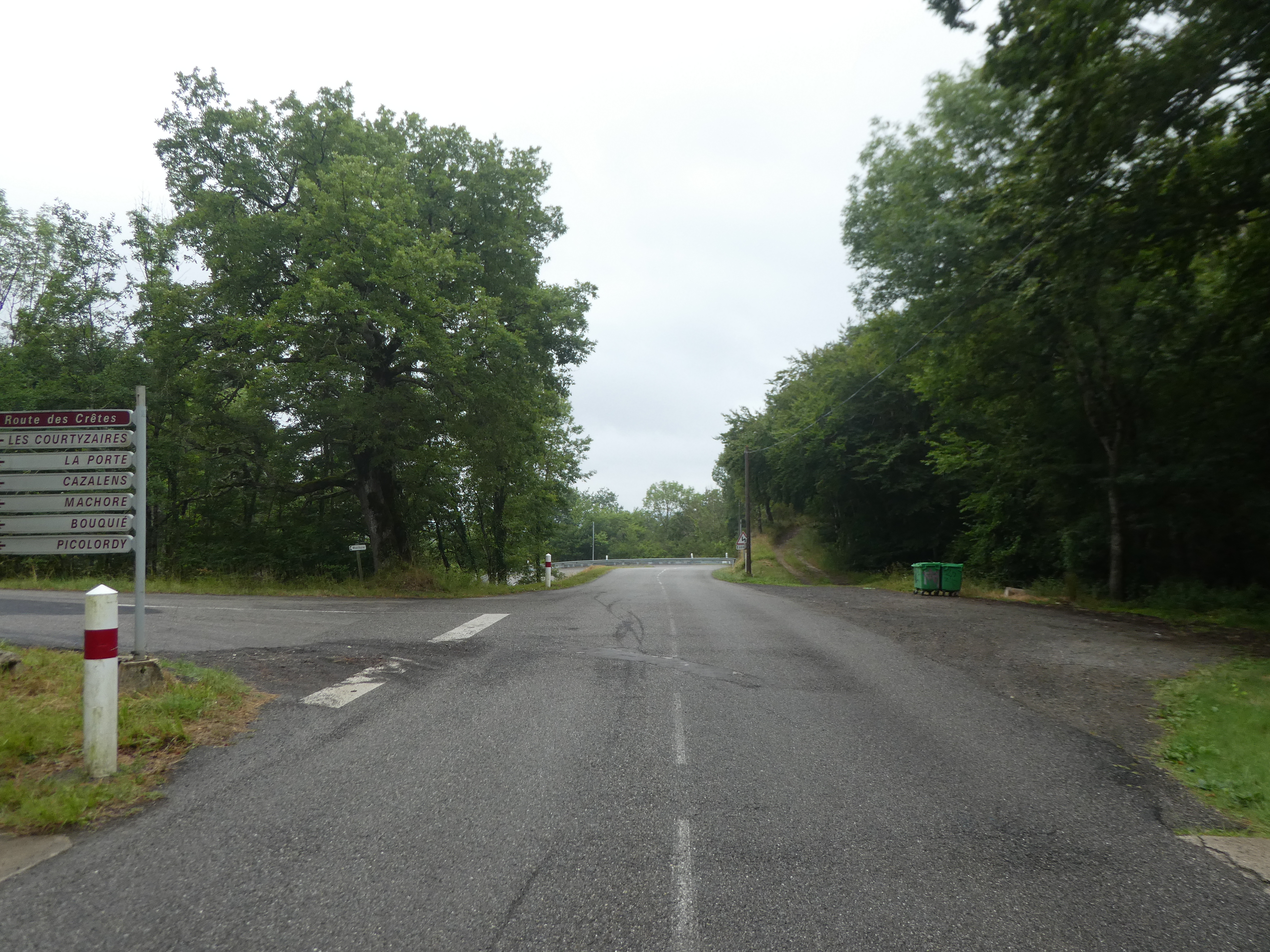 A ce croisement avec la D8001 (25 mètres après avoir quitté le sommet), suivre cette dernière partant sur la gauche direction Montjardin
