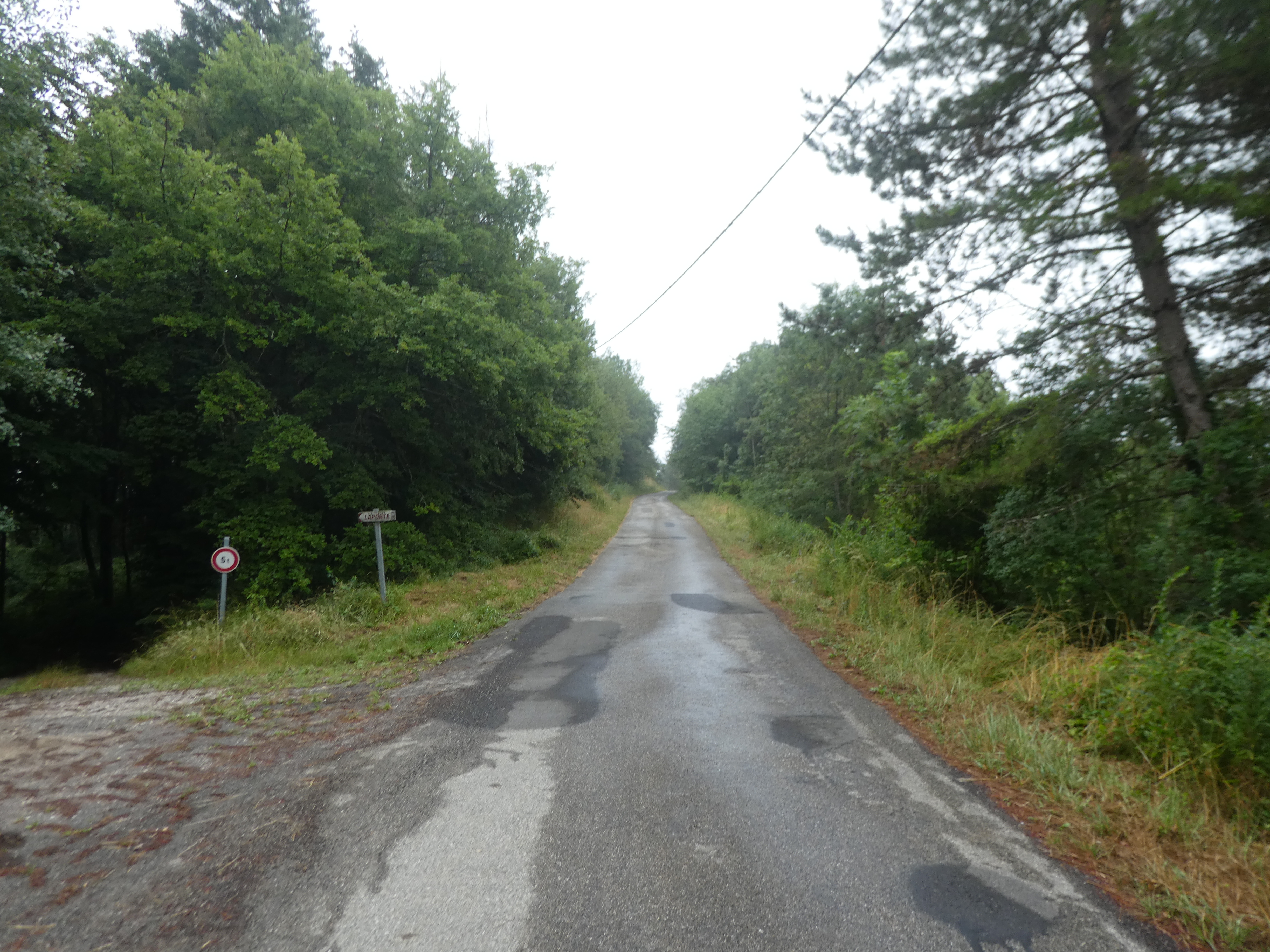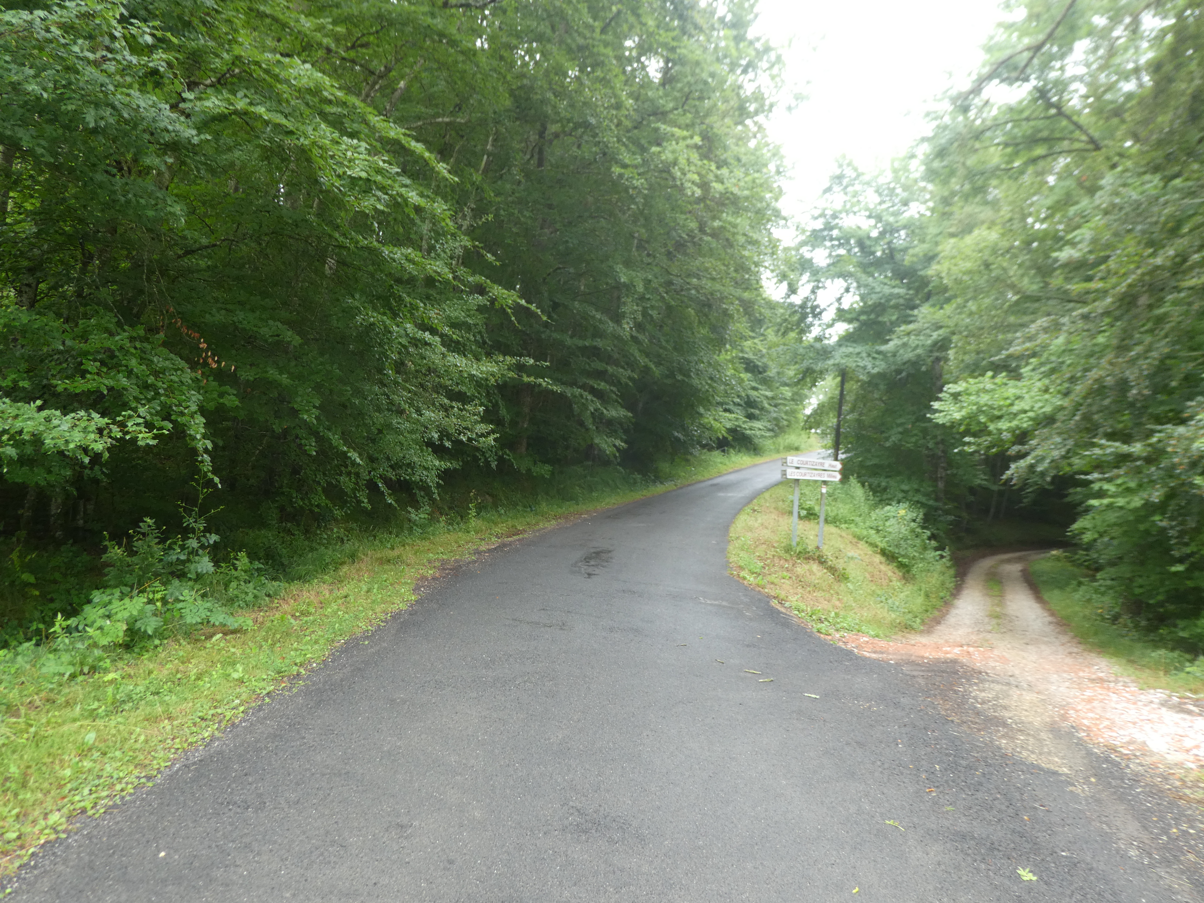 A ce croisement marqué par la présence du panneau directionnel "Laporte" (400 mètres après avoir quitté la D620), suivre la D8001 partant tout droit direction Sarrat des Breyches