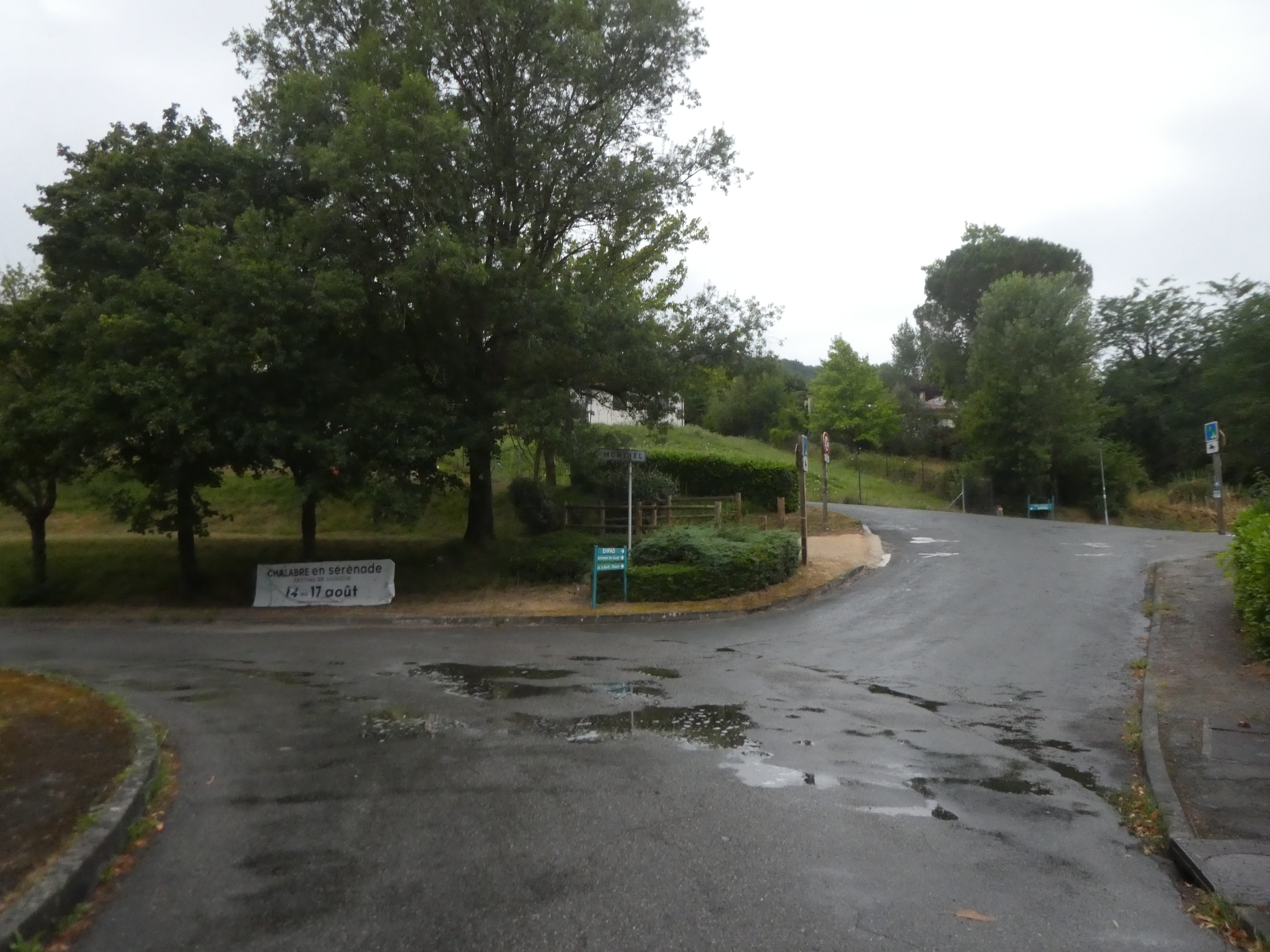Départ Chalabre - Mairie (373 m) : suivre la rue partant tout droit (Cours Sully) direction Sonnac-sur-l'Hers, aucun balisage