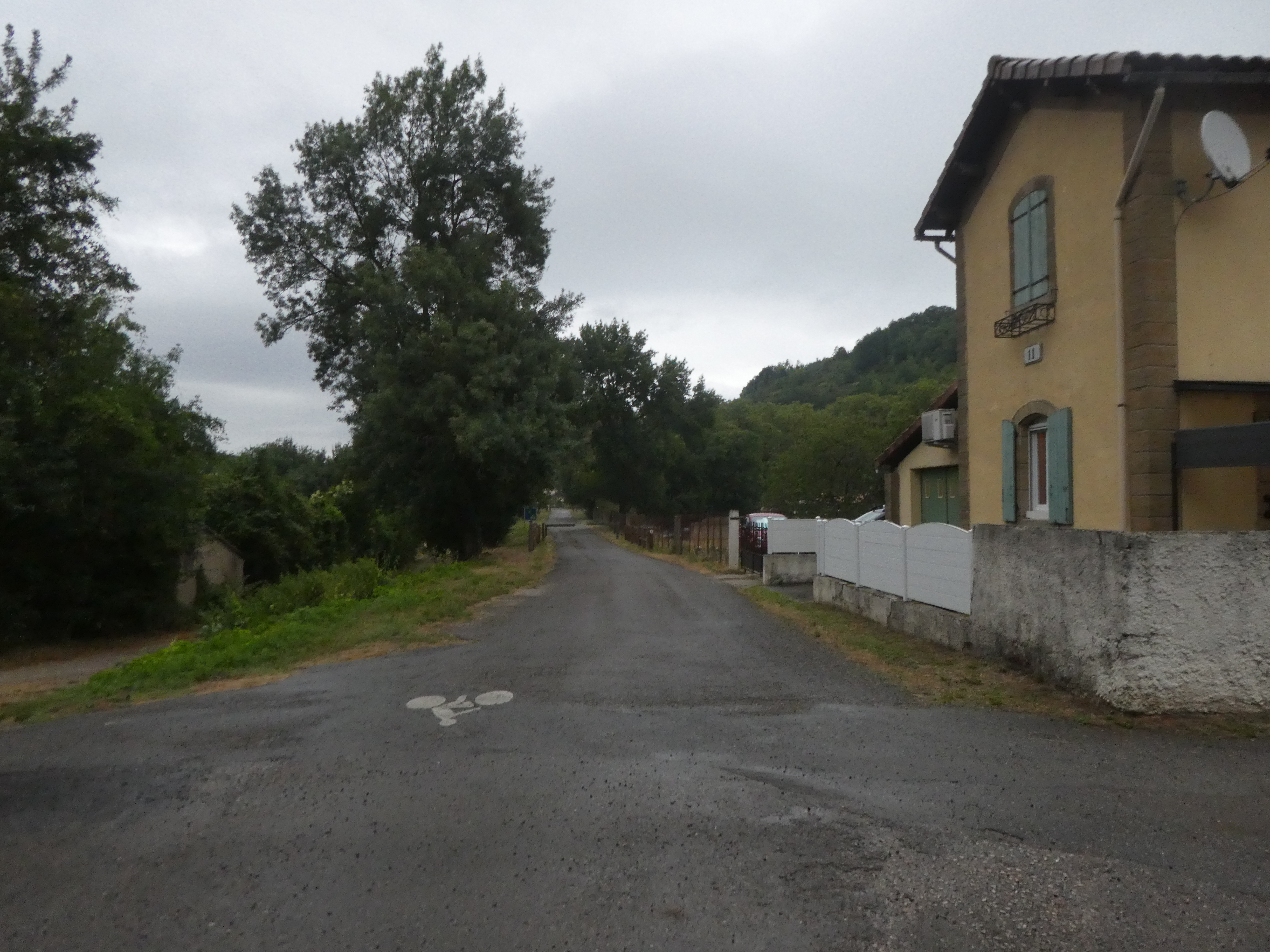 A cette intersection (300 mètres après la précédente), suivre la Voie Verte partant tout droit direction Sonnac-sur-l'Hers, balisé en jaune