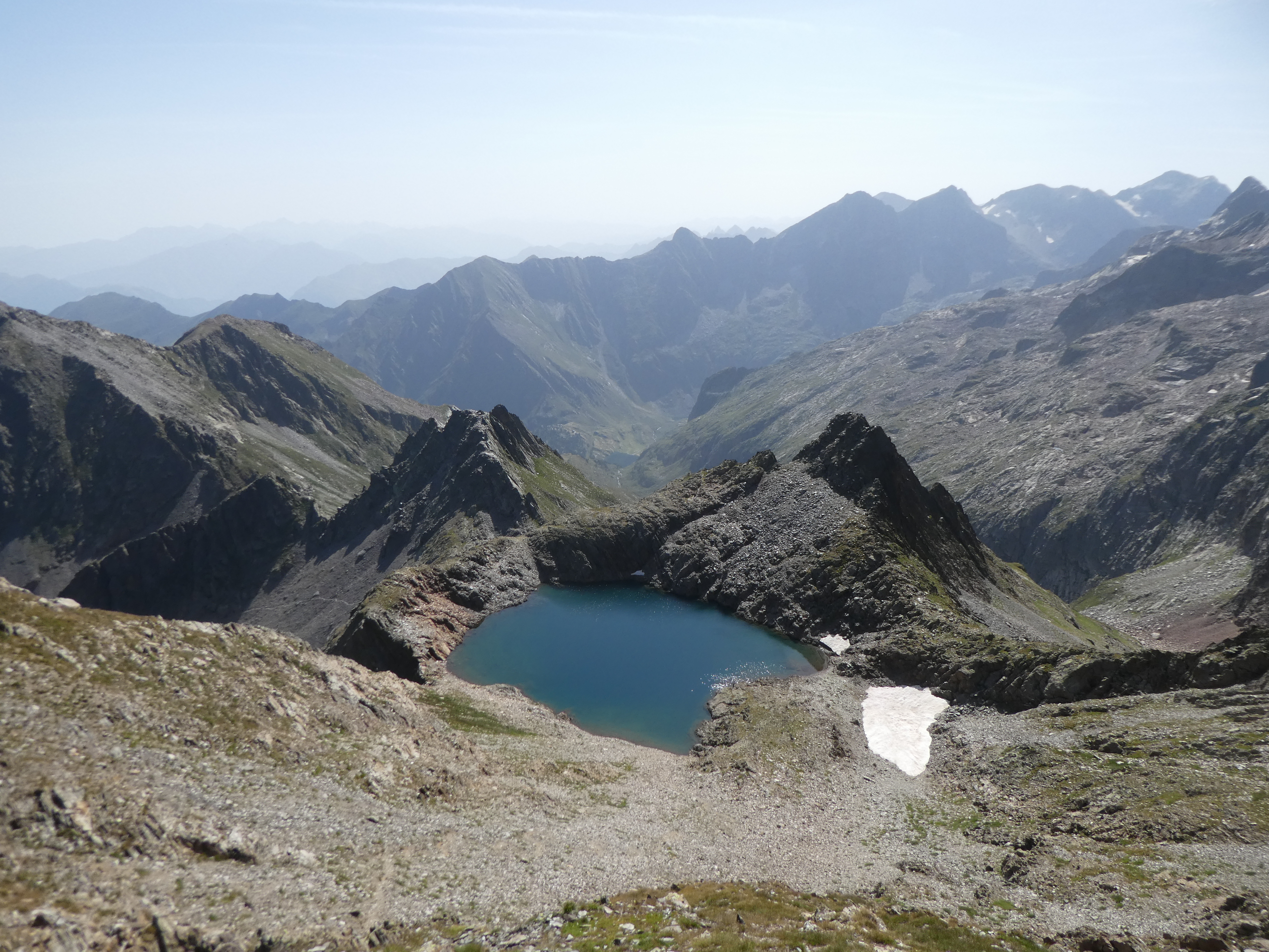 Vue arrière sur la descente effectuée depuis le Pic de Hourgade