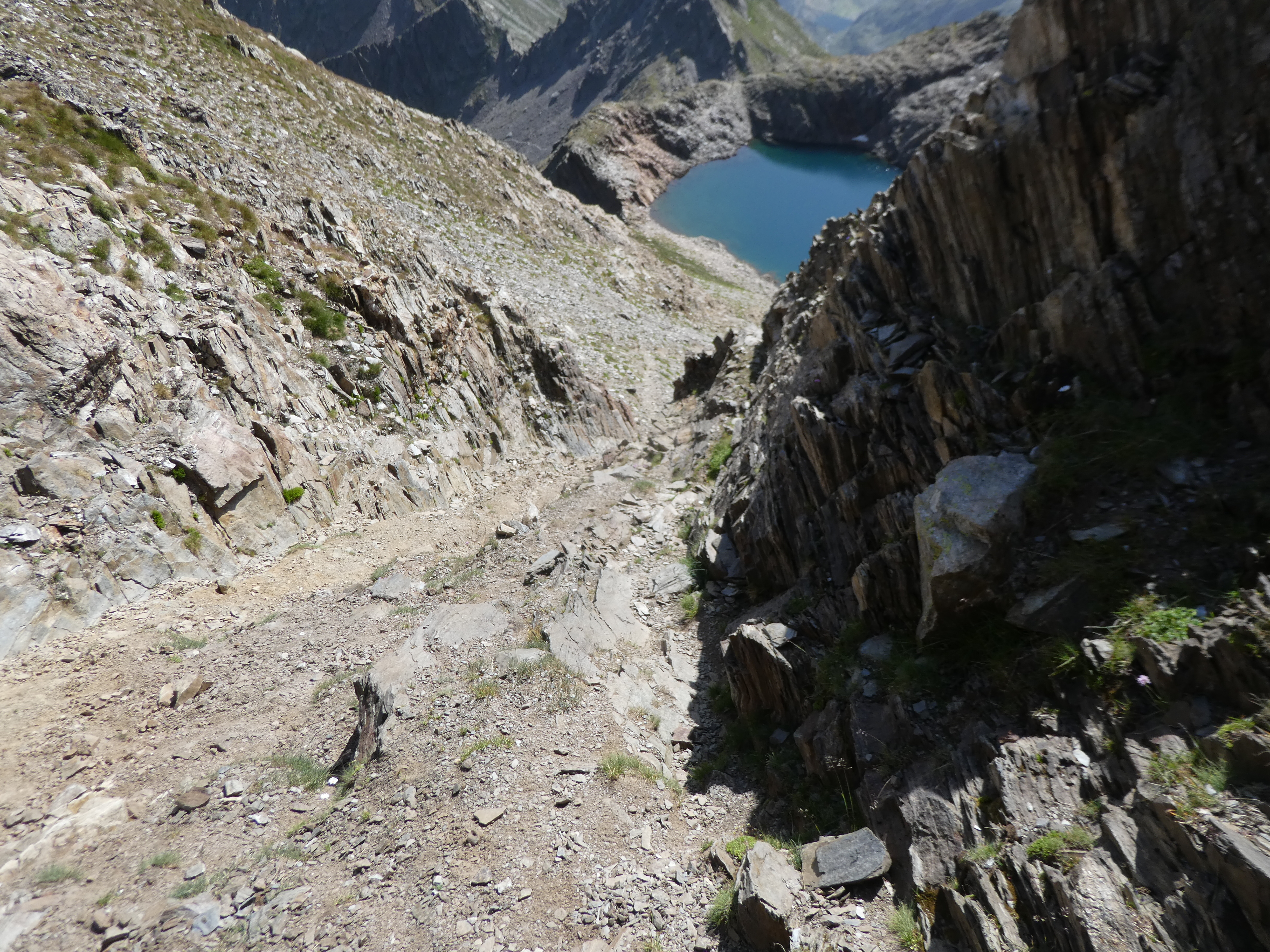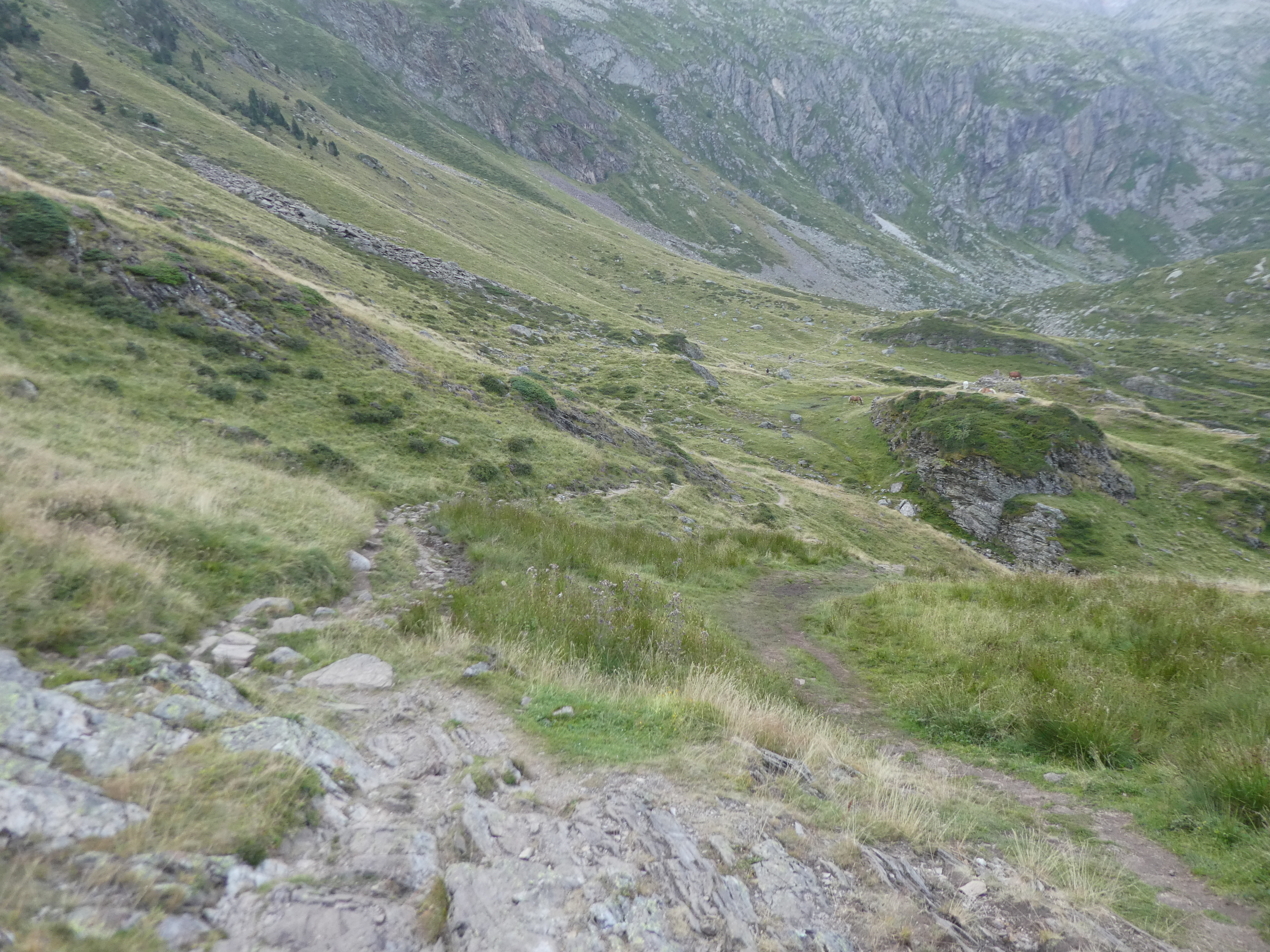 Le sentier de descente vers les Lacs de Nère (chemin bien cairné jusqu'au Couret d'Esquierry)