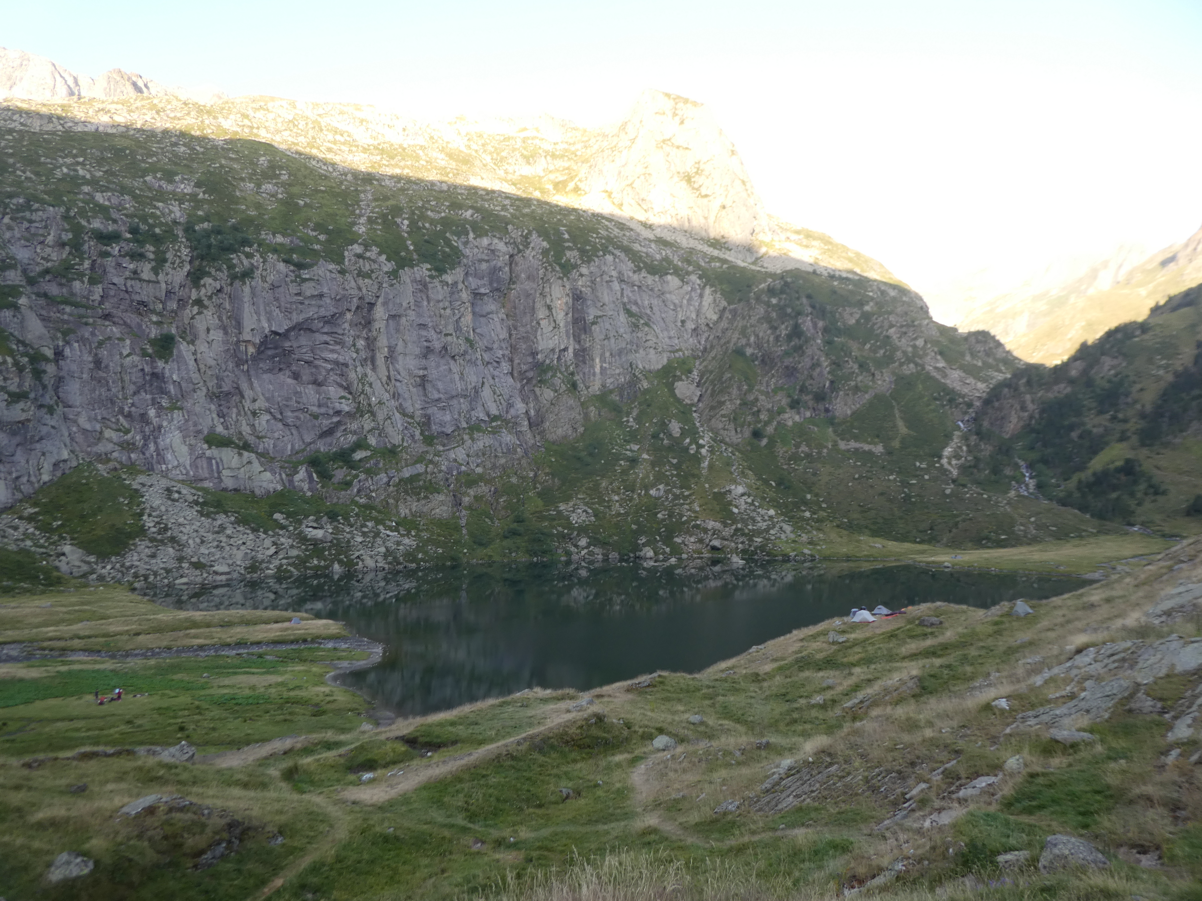 Vue sur la descente effectuée depuis le lac du Cirque de Hourgade