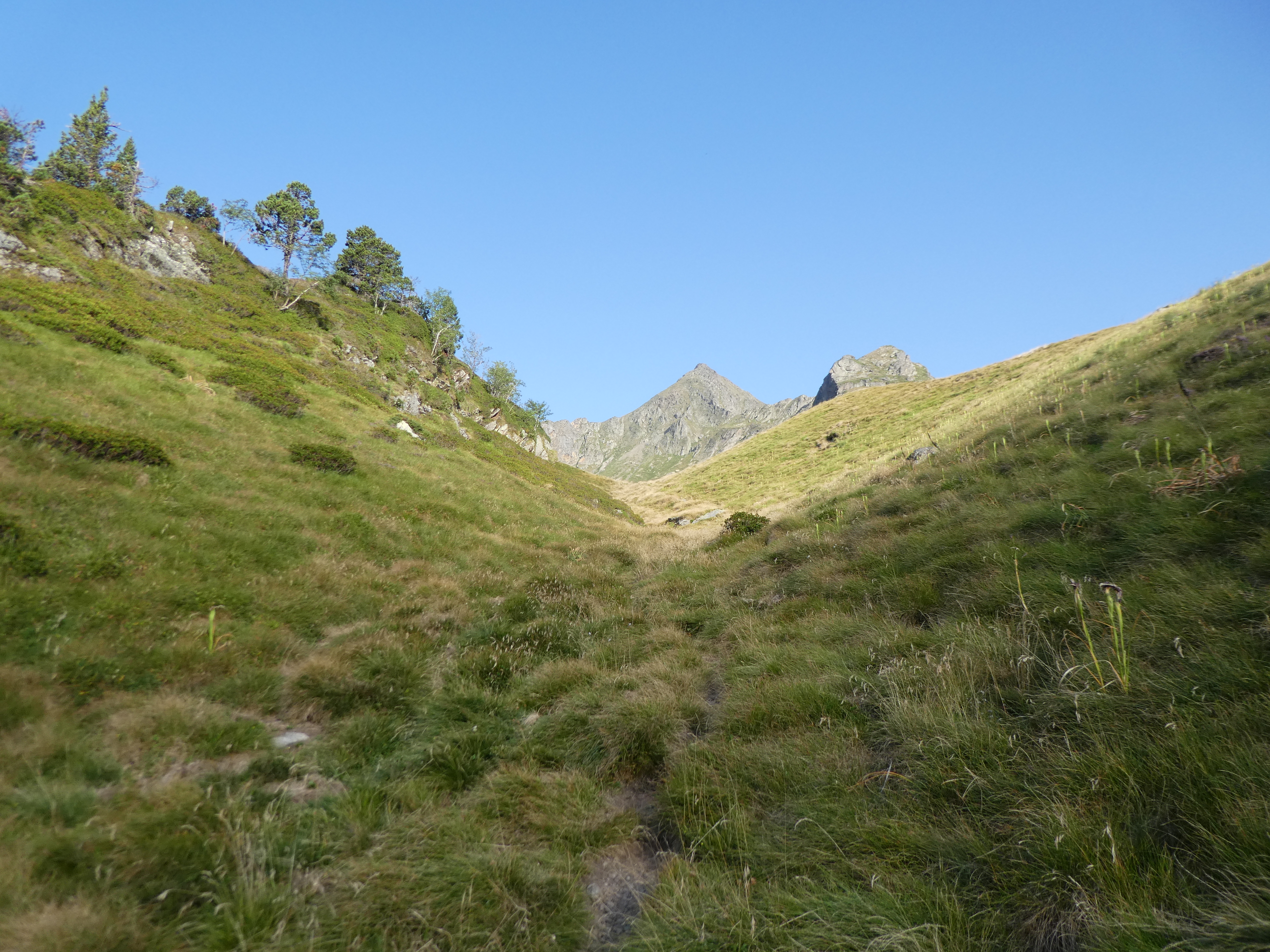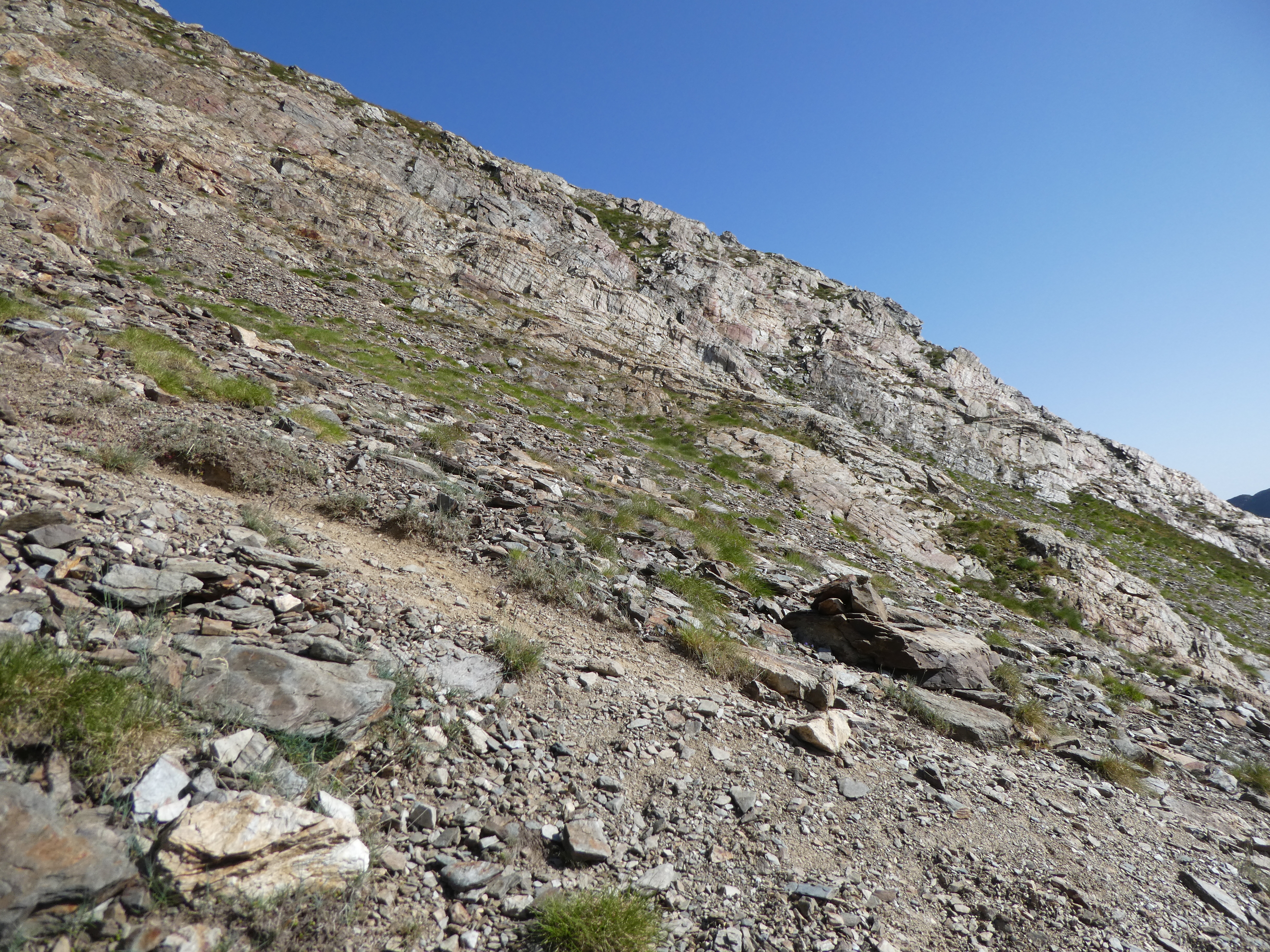 L'objectif est de rejoindre le sentier de montée vers le petit couloir rocheux du Pic de Hourgade