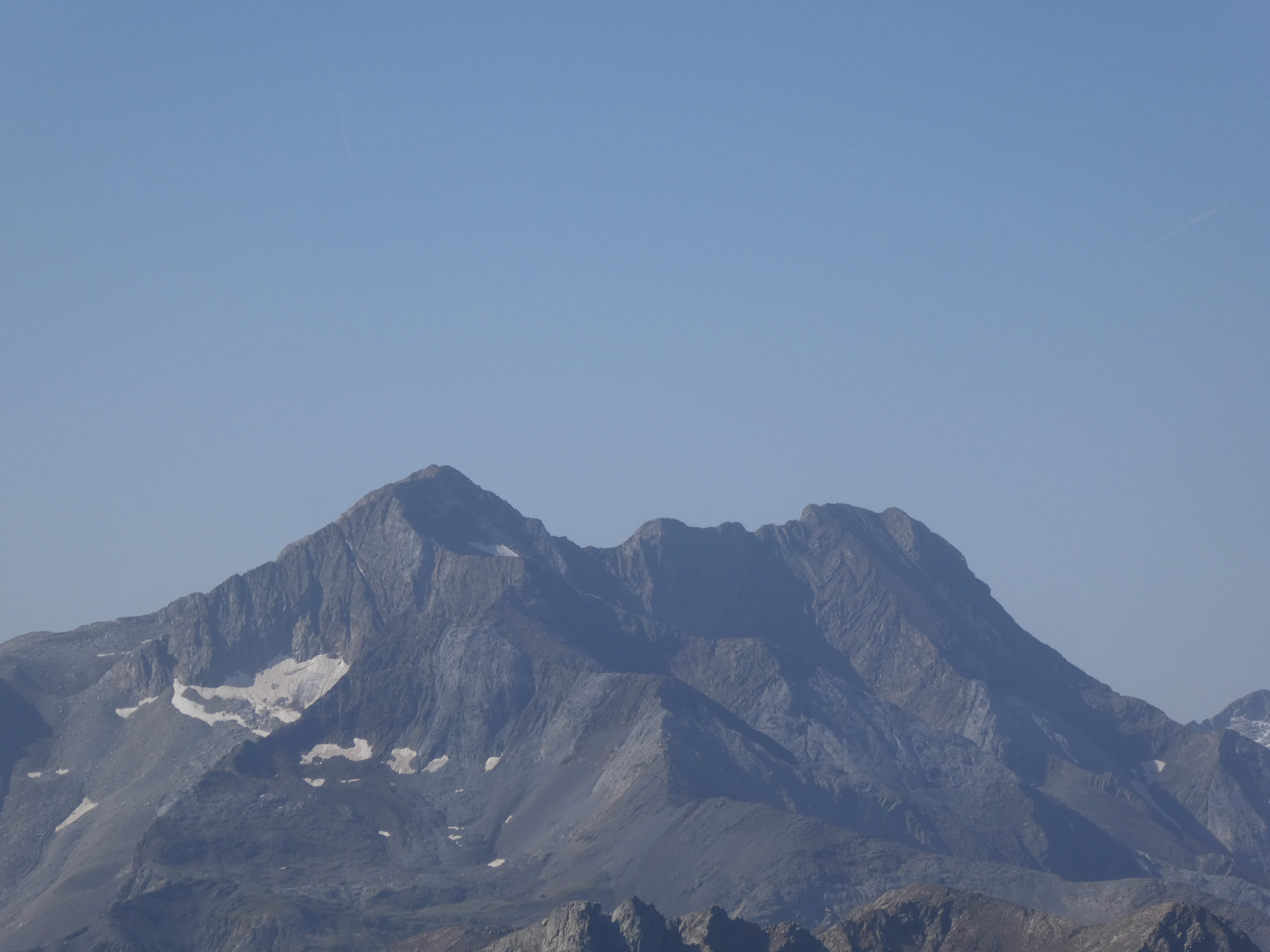 Zoom sur le Pic d'Aulon (2738 m) au centre-gauche et l'Arbizon (2831 m) au centre-droit