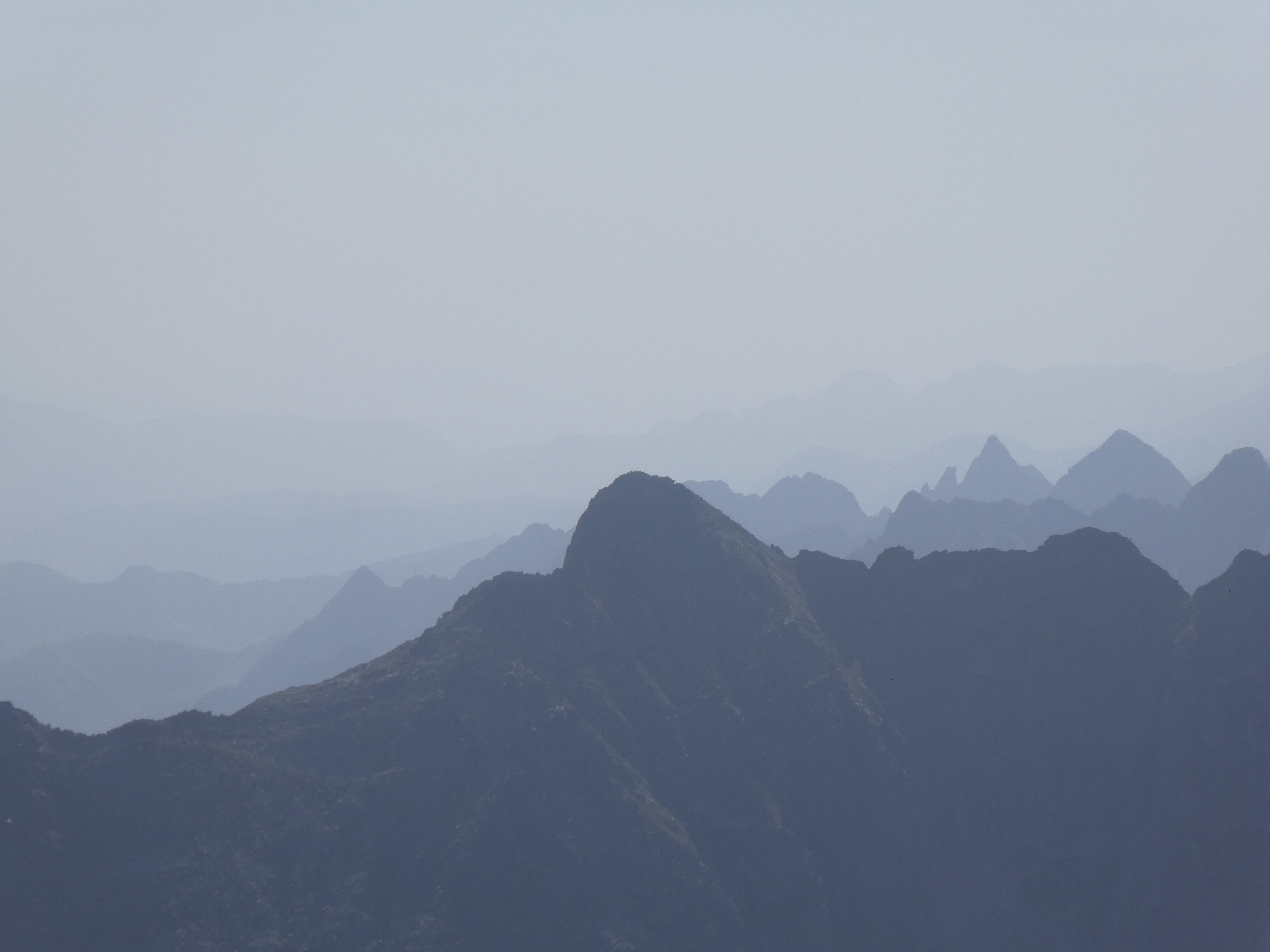 Zoom sur la Punta del Sabre (3134 m) au centre-gauche et le Pico Gran Bachimala (3171 m) au centre-gauche