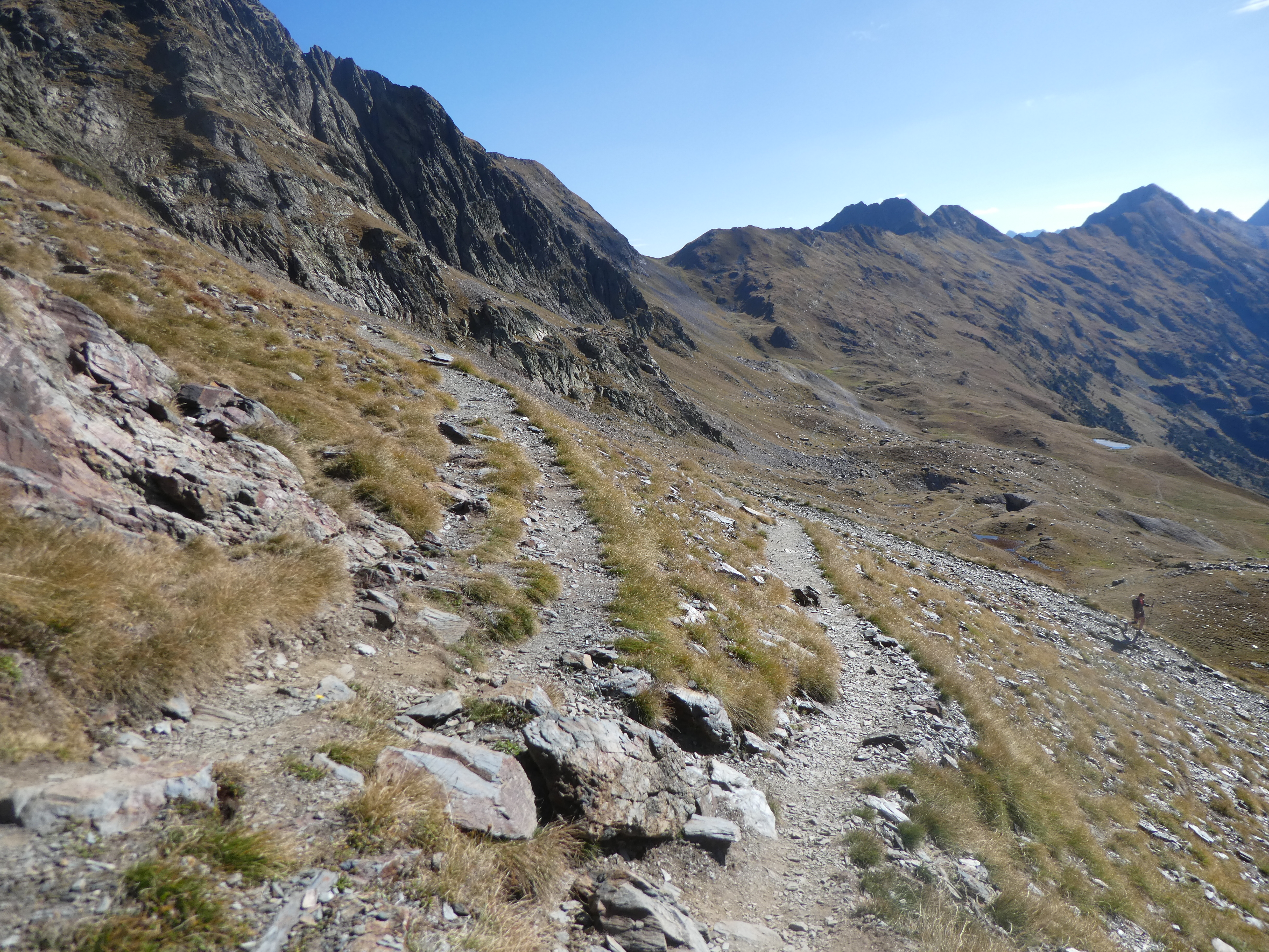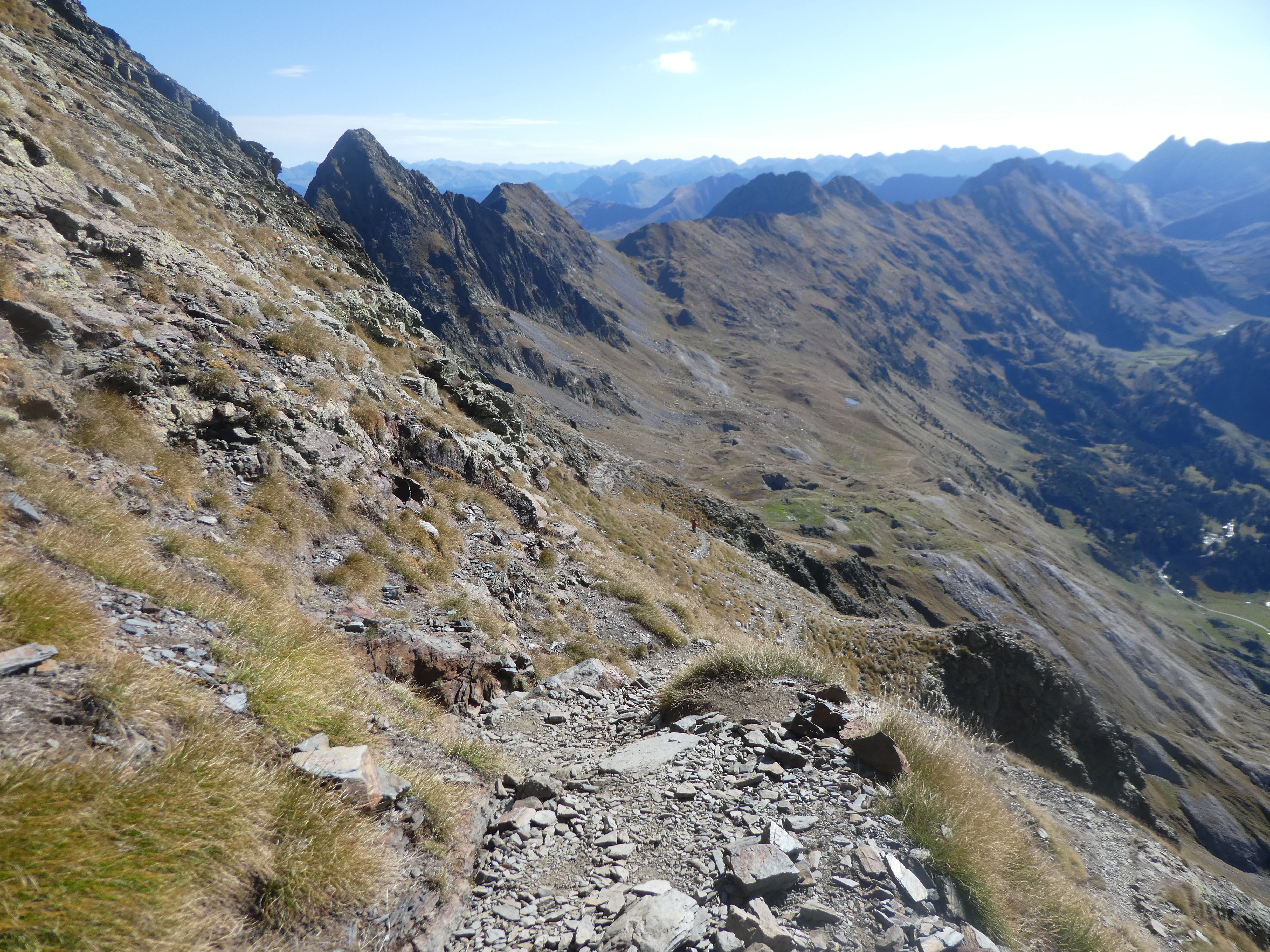 Vue arrière sur la descente effectuée depuis le Pòrt dera Picada (pour ceux qui font la boucle dans l'autre sens -sens classique-, voici les 150 mètres de dénivelé positifs à réaliser pour le retour)