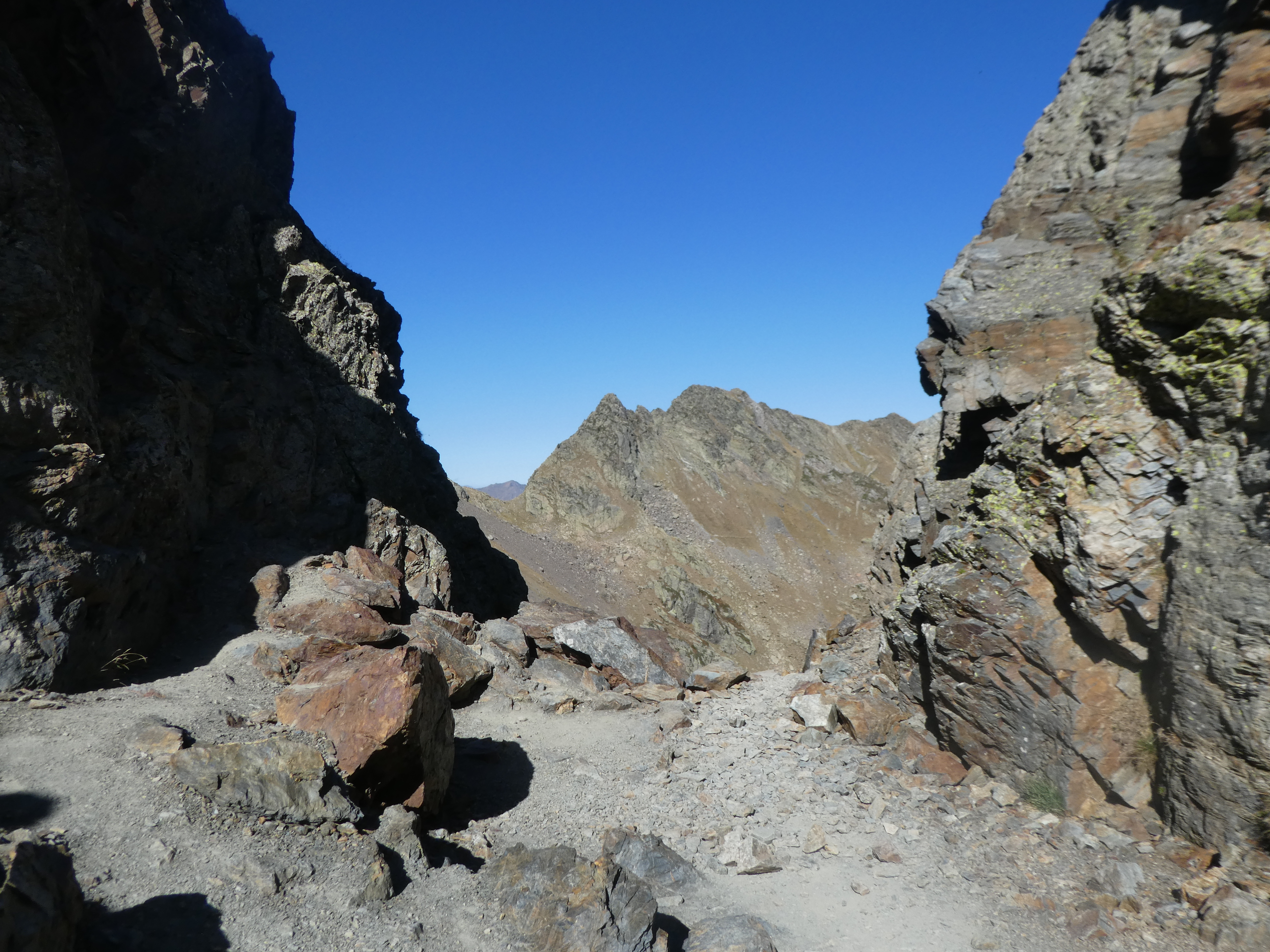- Montée raide du Port de Vénasque jusqu'au sommet : quelques passages exposés au vide côté Valle de Benasque avec main courante (prudence !)