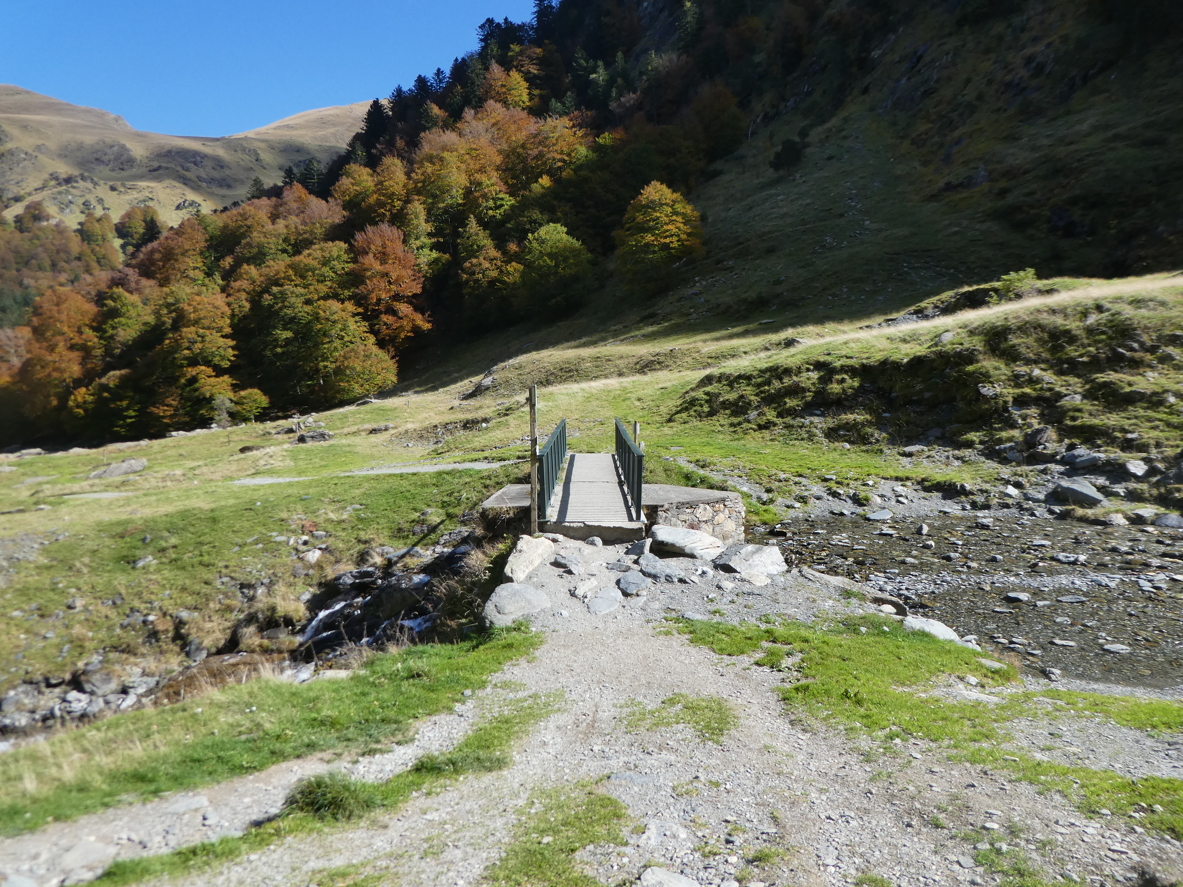 Pont du Penjat (1439 m) : suivre le chemin partant tout droit direction Hospice de France, balisé en jaune dorénavant