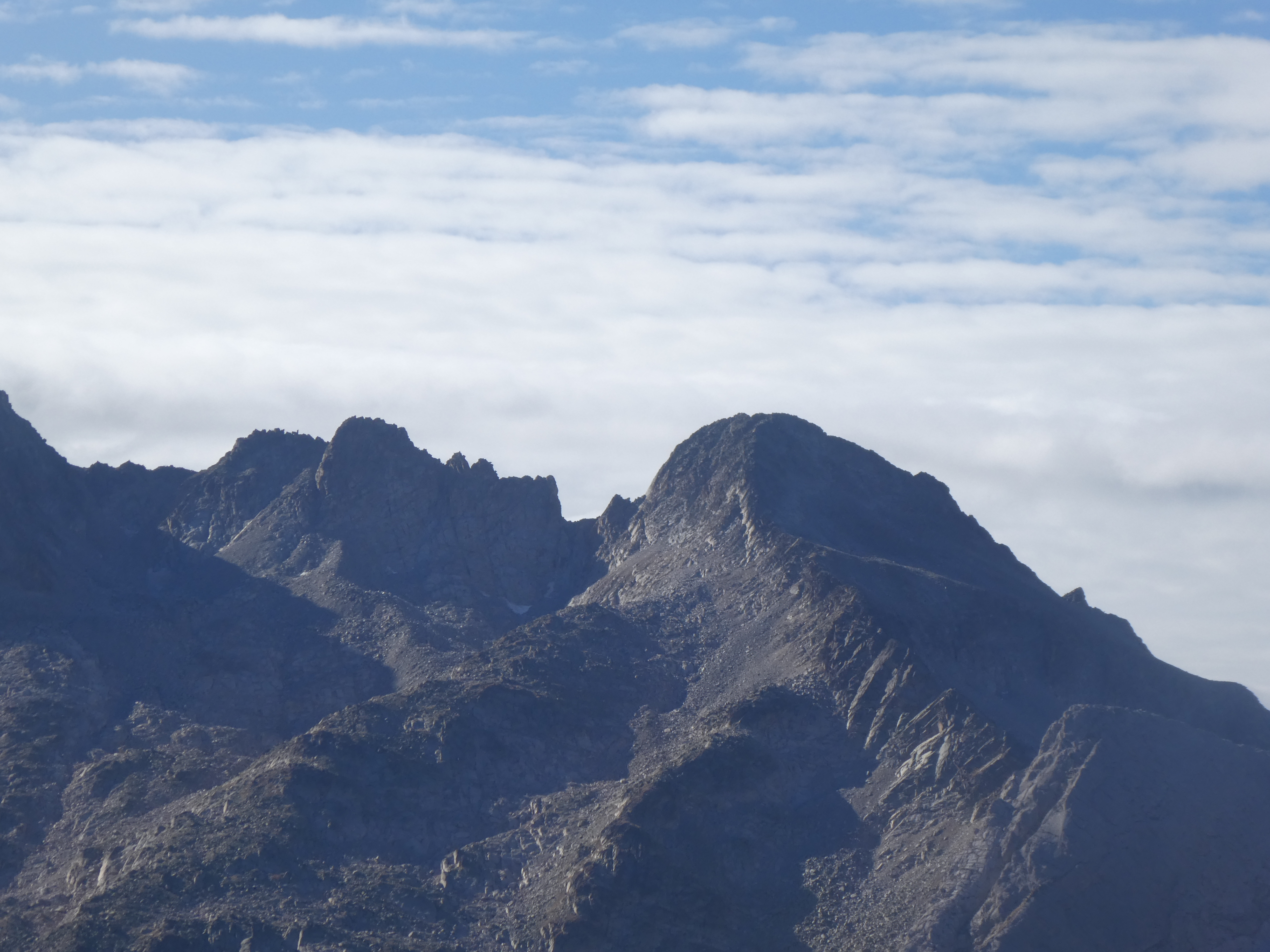 Zoom sur la Diente de Alba (3121 m) à gauche et le Pico de Alba (3112 m) au centre-droit