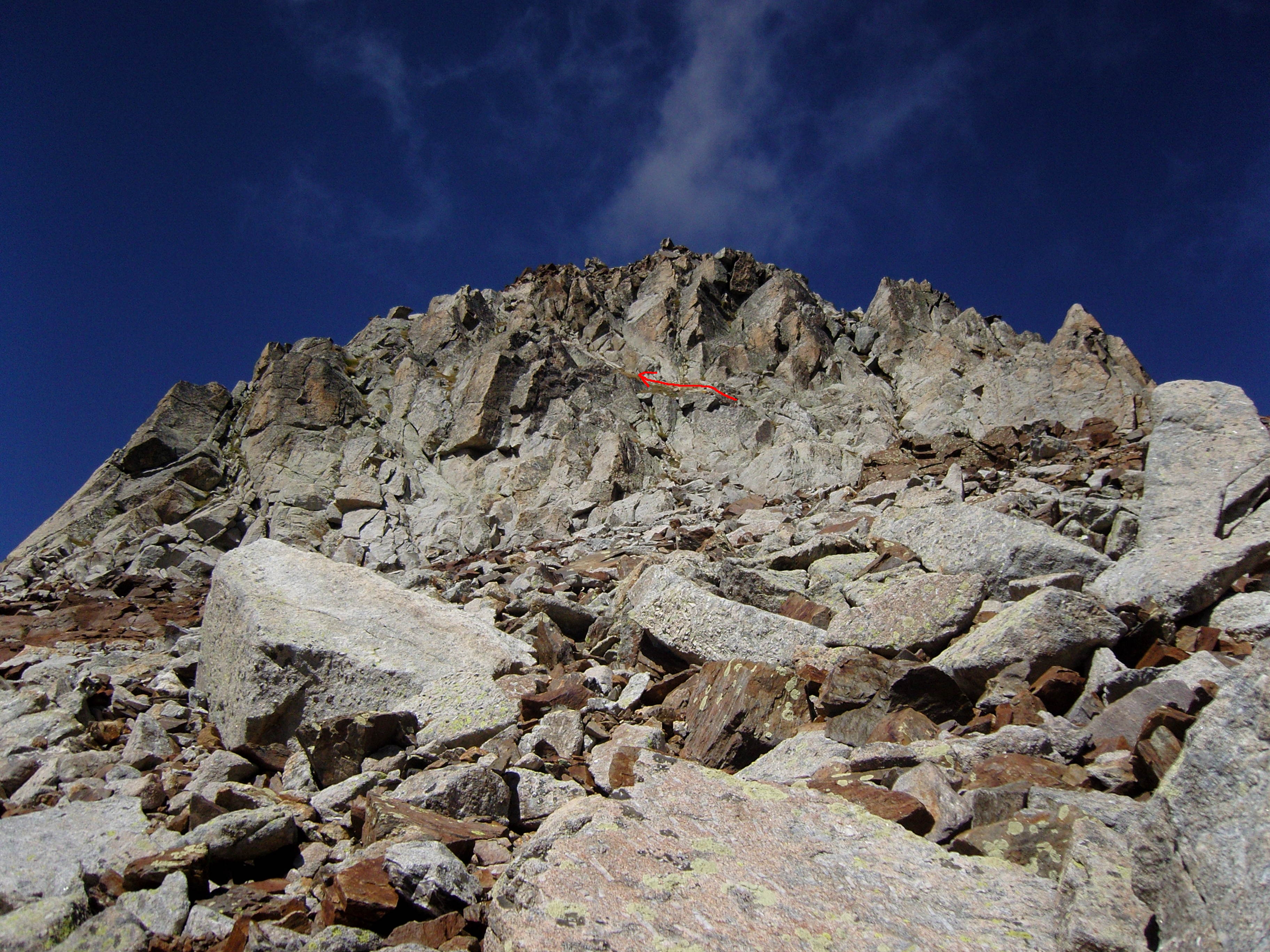 Au-dessus de la première montée dans les éboulis (2791 m), continuer sur la droite direction Pic des Spijeoles