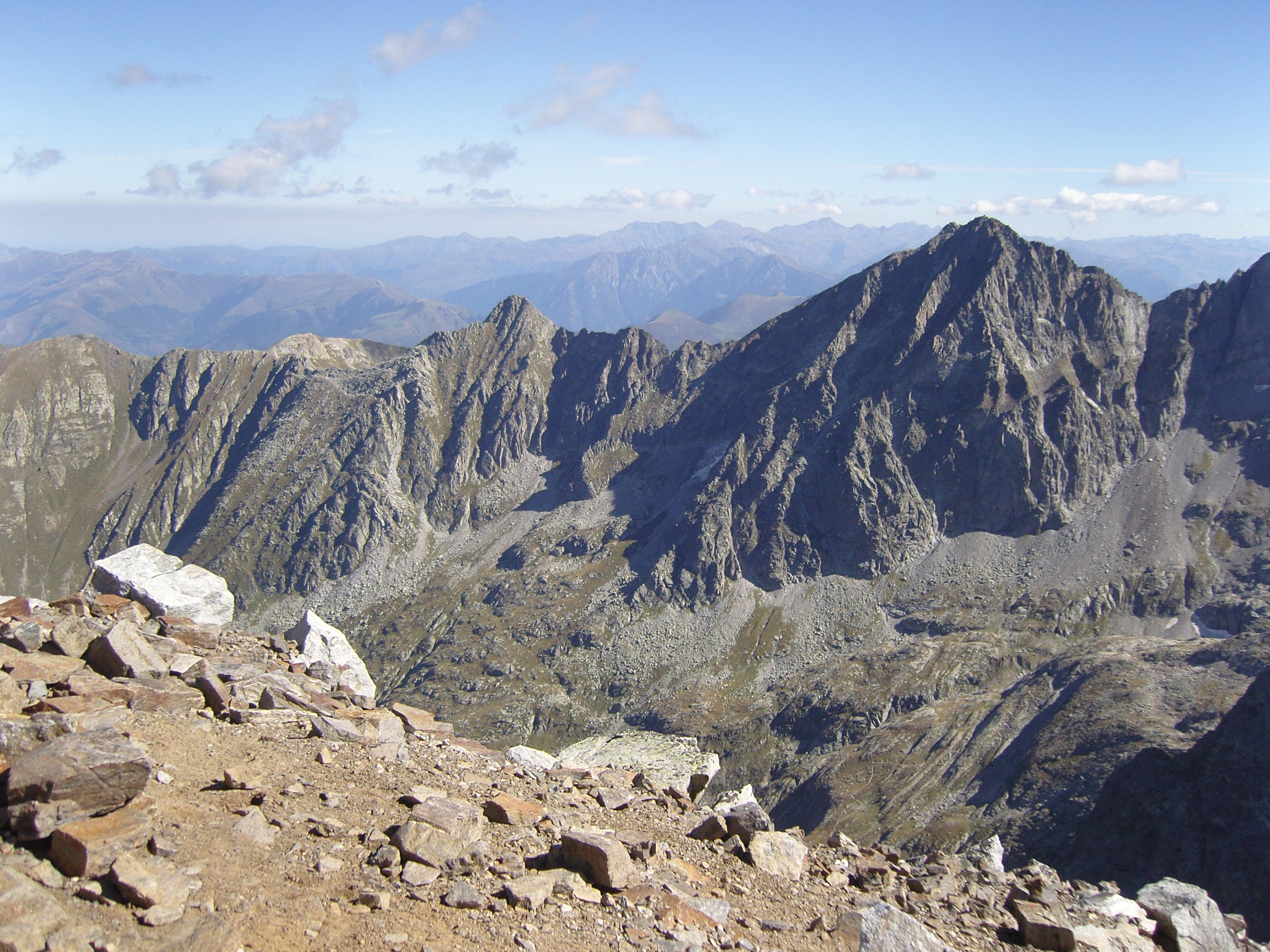 Arrivée au sommet du Pic des Spijeoles (3065 m) : les efforts sont enfin récompensés avec une vue imprenable sur les 3000 du Luchonnais, les sommets ariégeois et bigourdans, la Vallée de la Garonne, la plaine toulousaine, ...