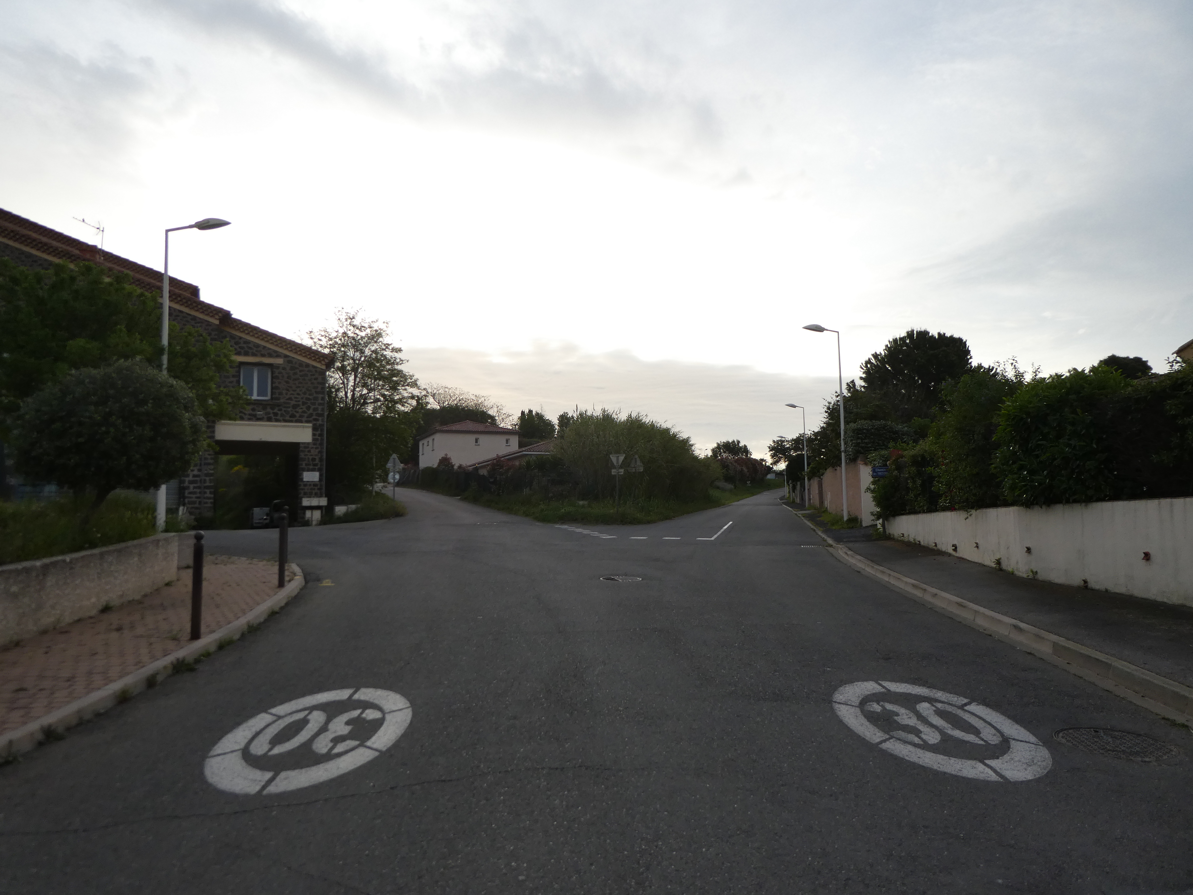 A cette intersection située au niveau de la Coopérative "Alma Cersius" (400 mètres après le départ), suivre la rue partant légèrement sur la gauche (Avenue de l'Égalité) direction Domaine de Médeilhan
