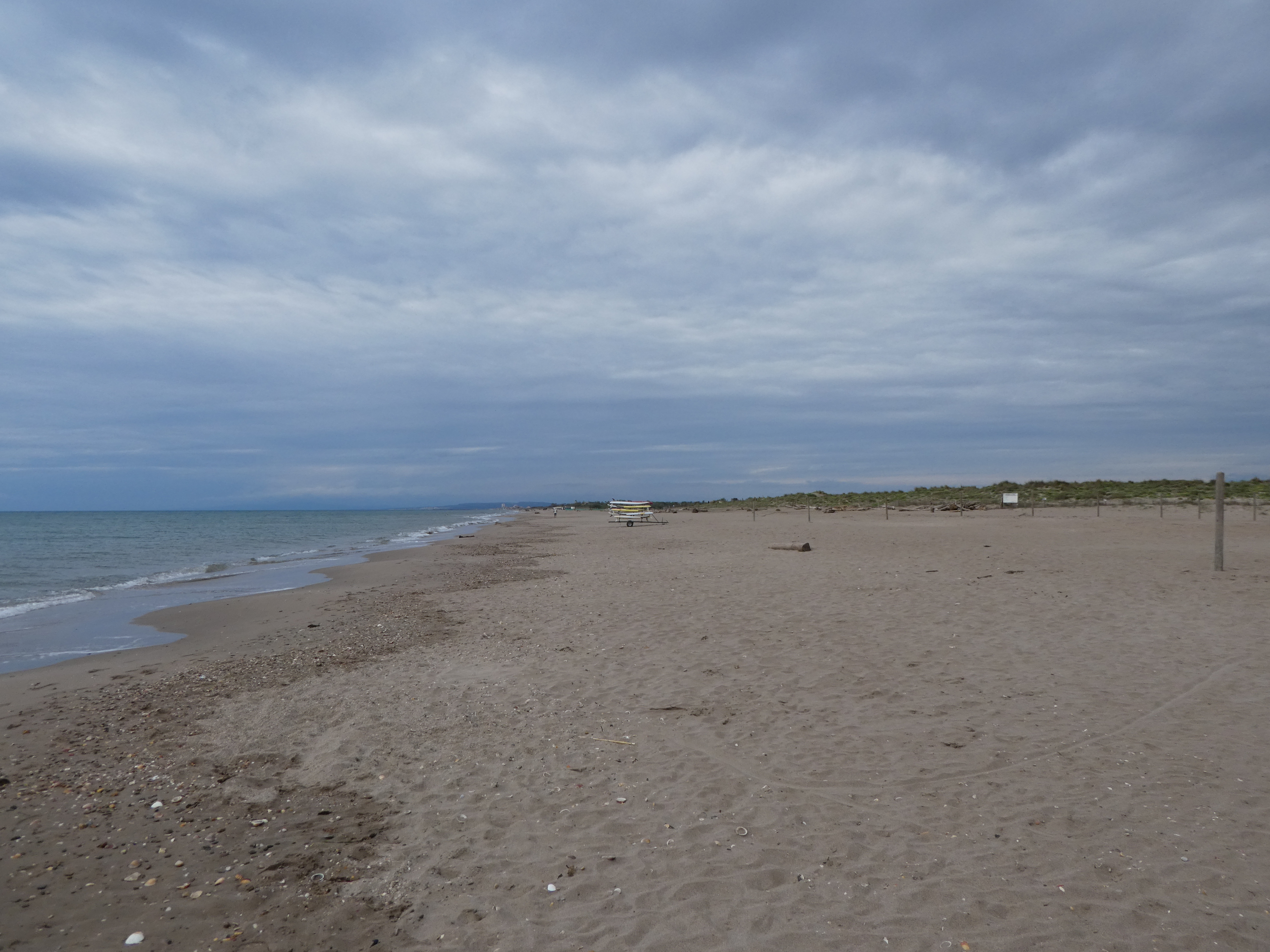 Arrivée à Portiragnes Plage (3 m) : suivre le trait de littoral partant sur la droite vers le Sud-Ouest direction Étang de la Riviérette