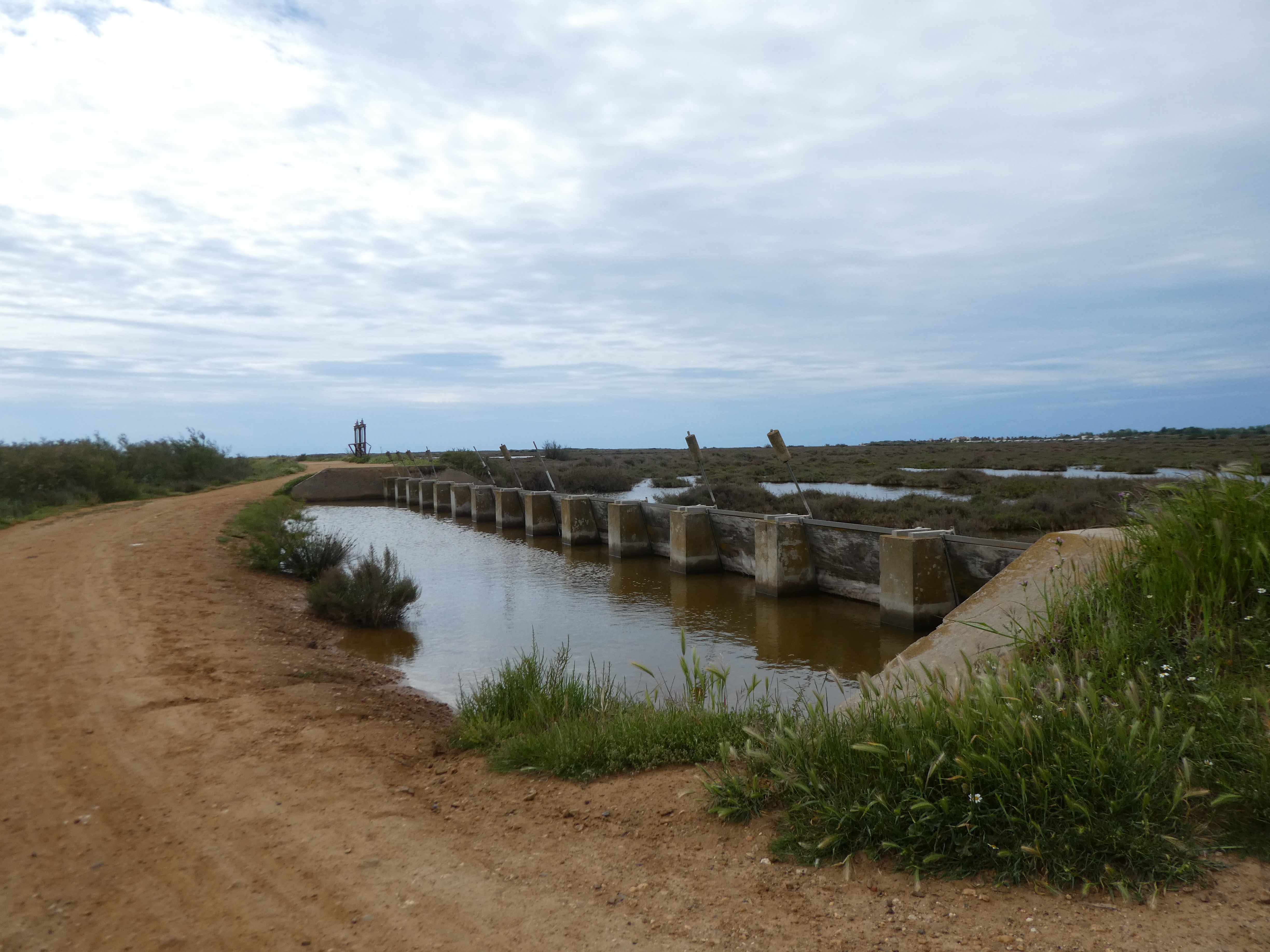 L'un des nombreux barrages anti-sel du Sansouïre empêchant l'eau de mer de remonter dans la Grande Maïre, fleuve d'eau douce