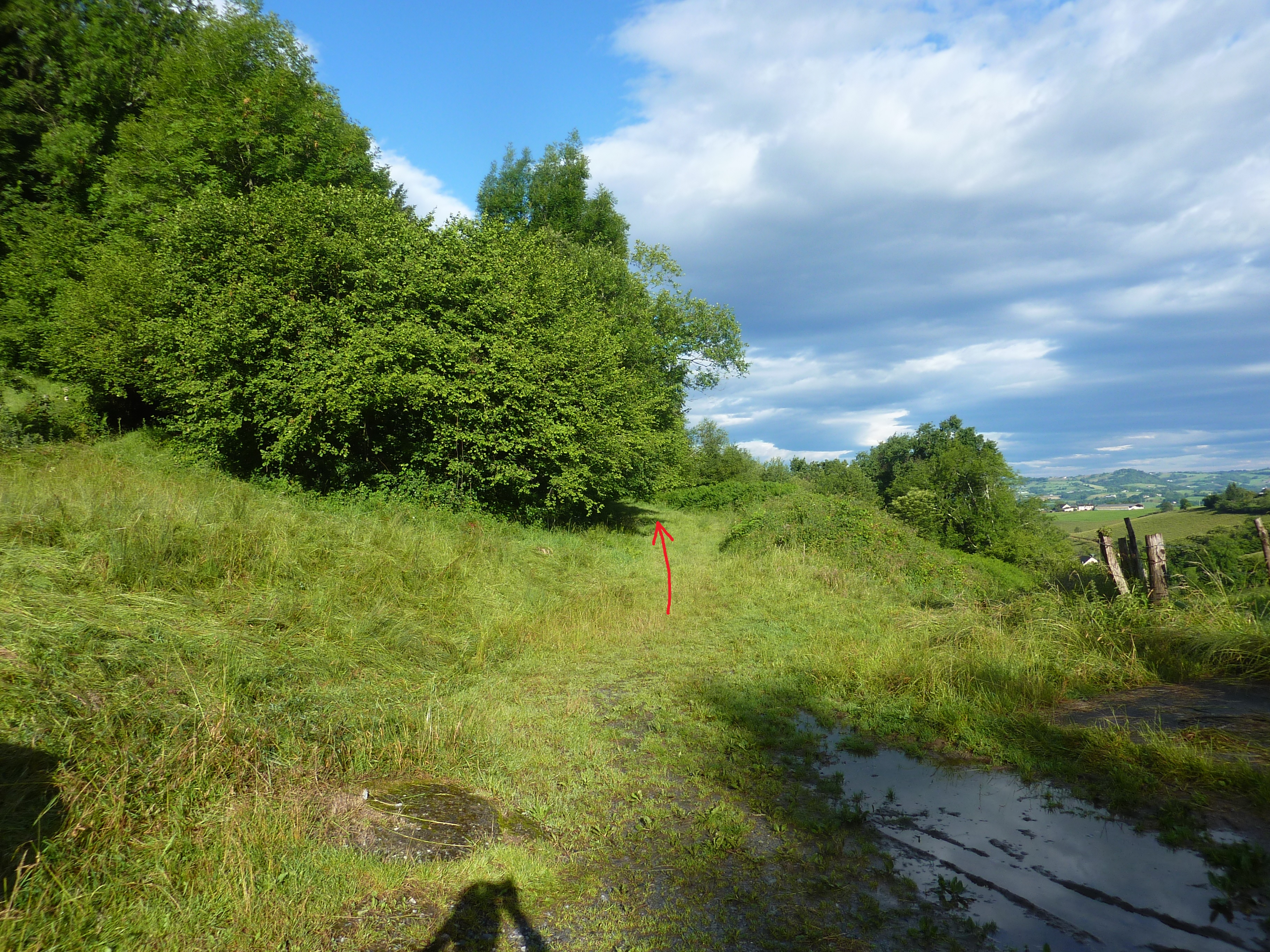 A ce croisement cairné (559 m), suivre le chemin partant tout droit direction Col d'Arriulé