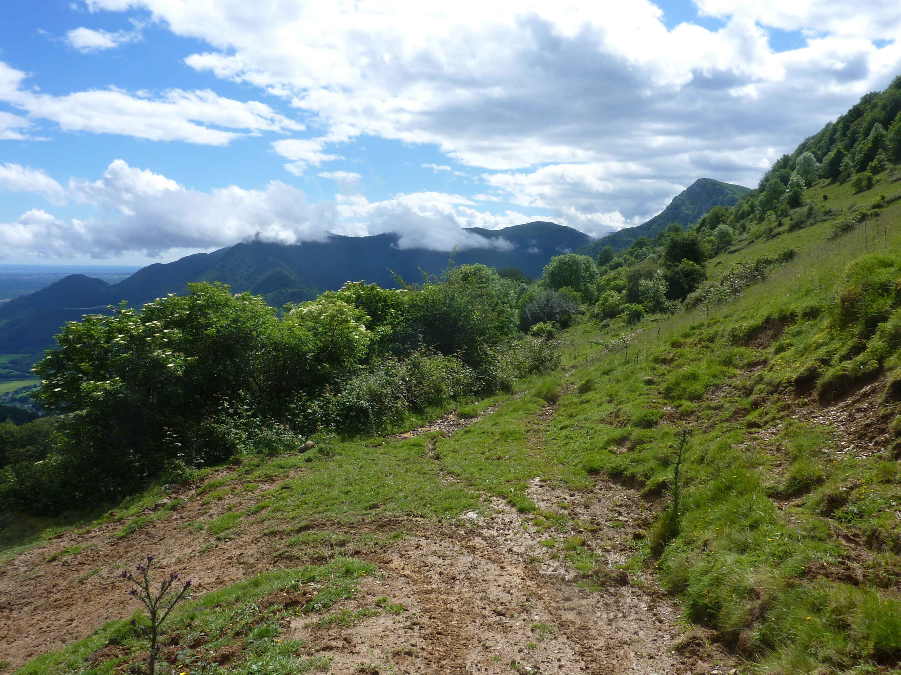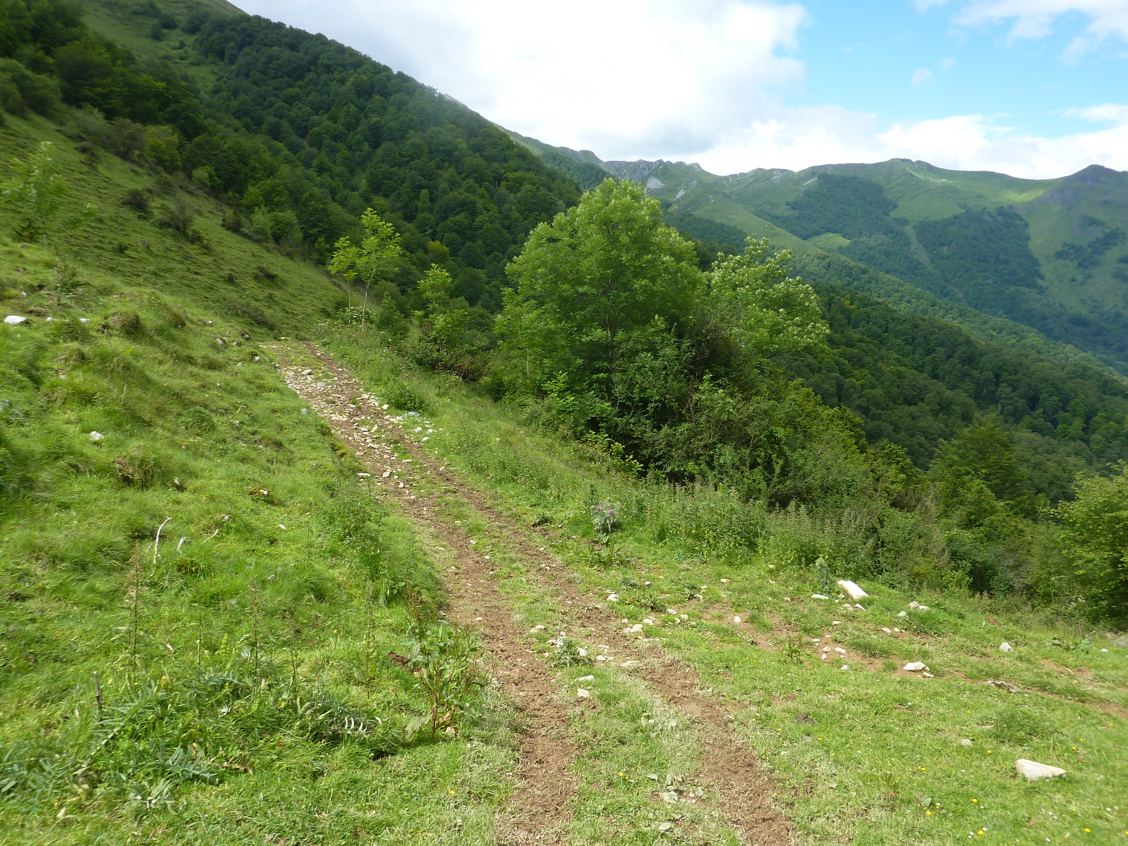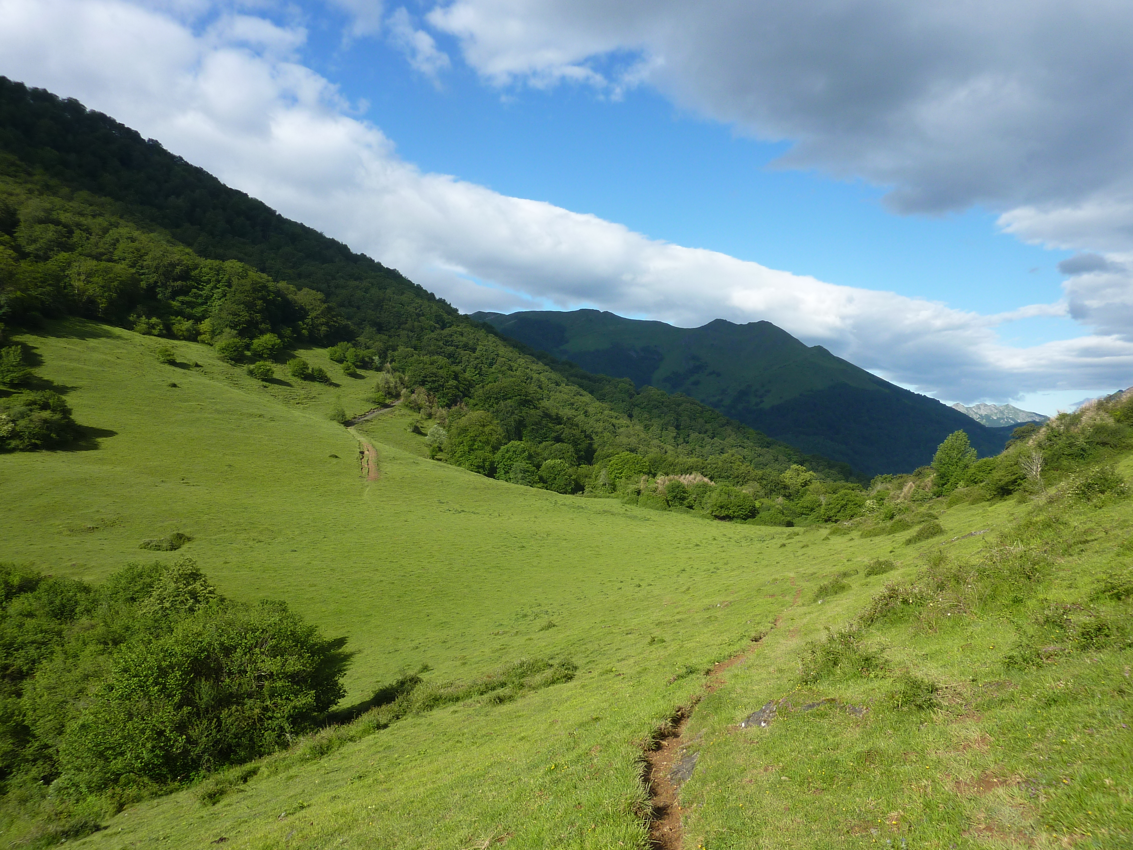 Col d'Isou (847 m) : suivre le chemin montant légèrement sur la droite direction Col d'Arriulé, aucun balisage dorénavant